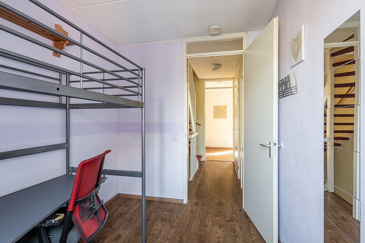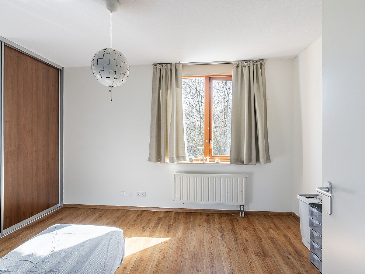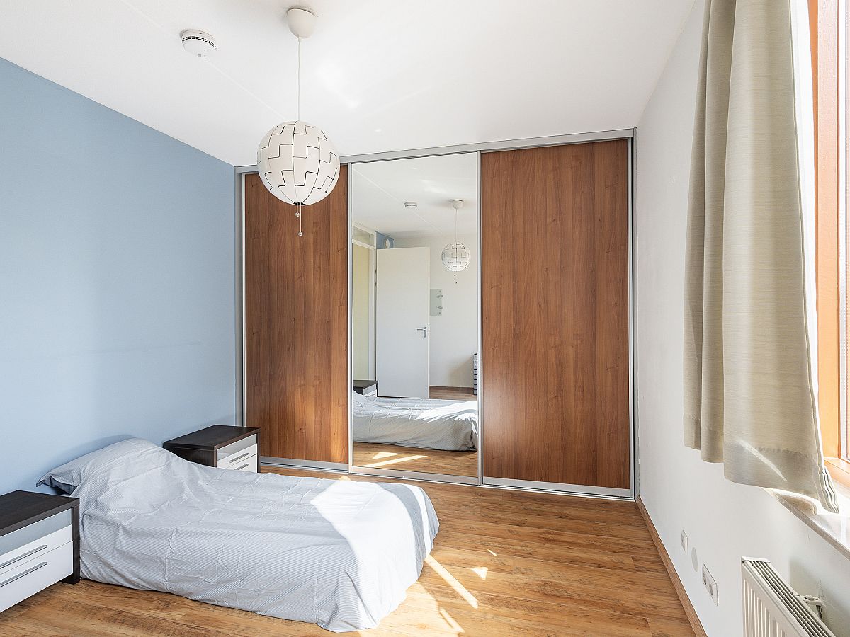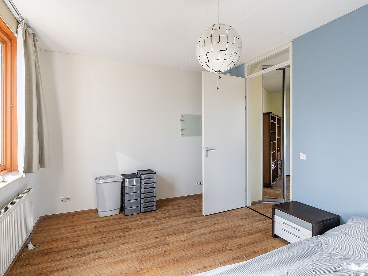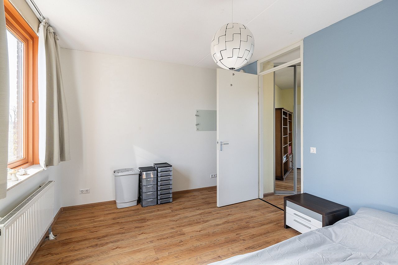 Ruime overloop met openslaande deuren naar het dakterras van ca. 15 m². Berging voorzien van wasmachineaansluiting, mechanische ventilatie en CV ketel Remeha 2024. Ruime trapkast. Slaapkamer, gehele verdieping is voorzien van laminaatvloer.