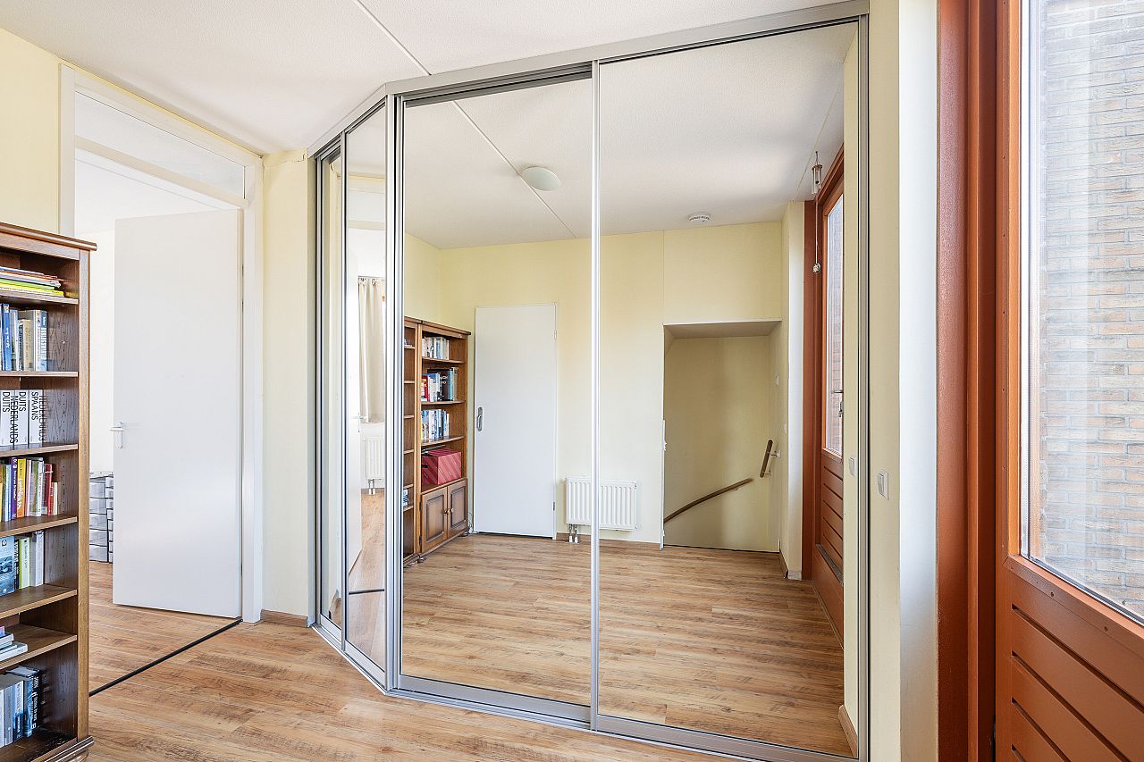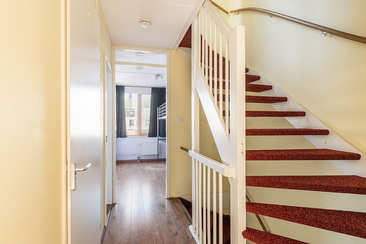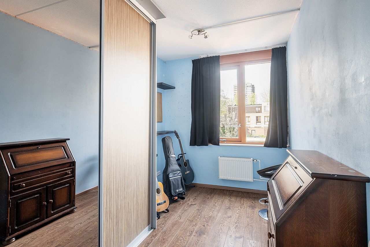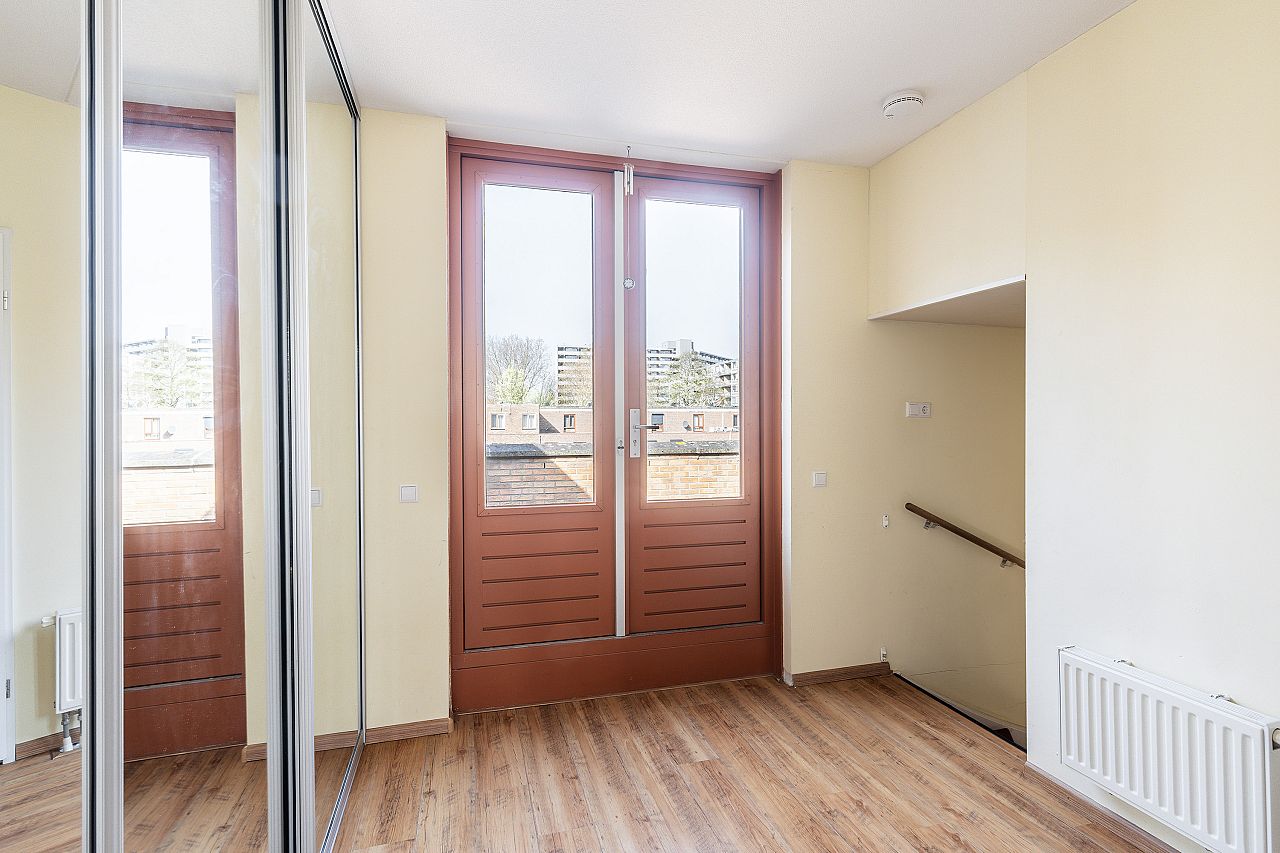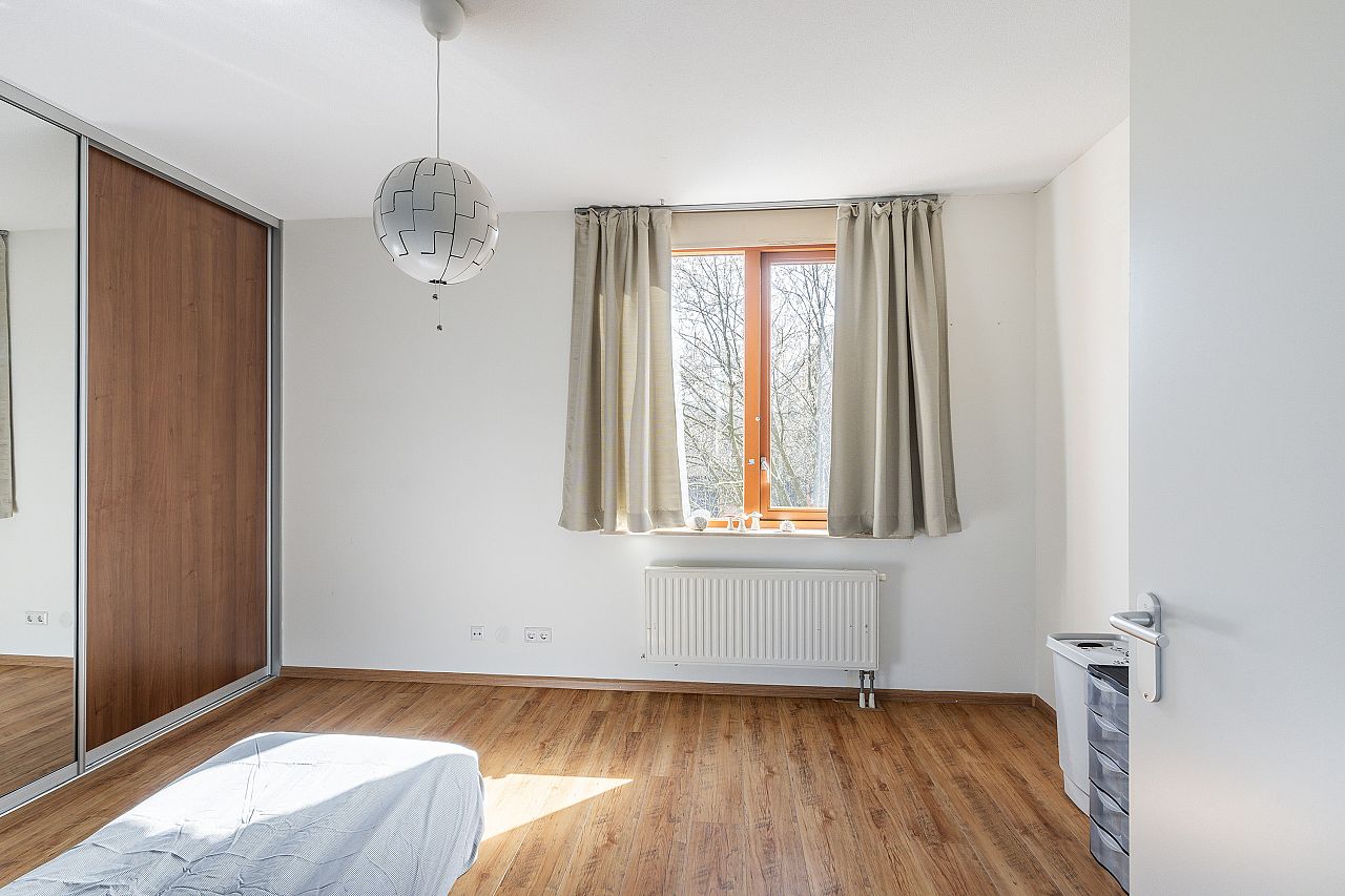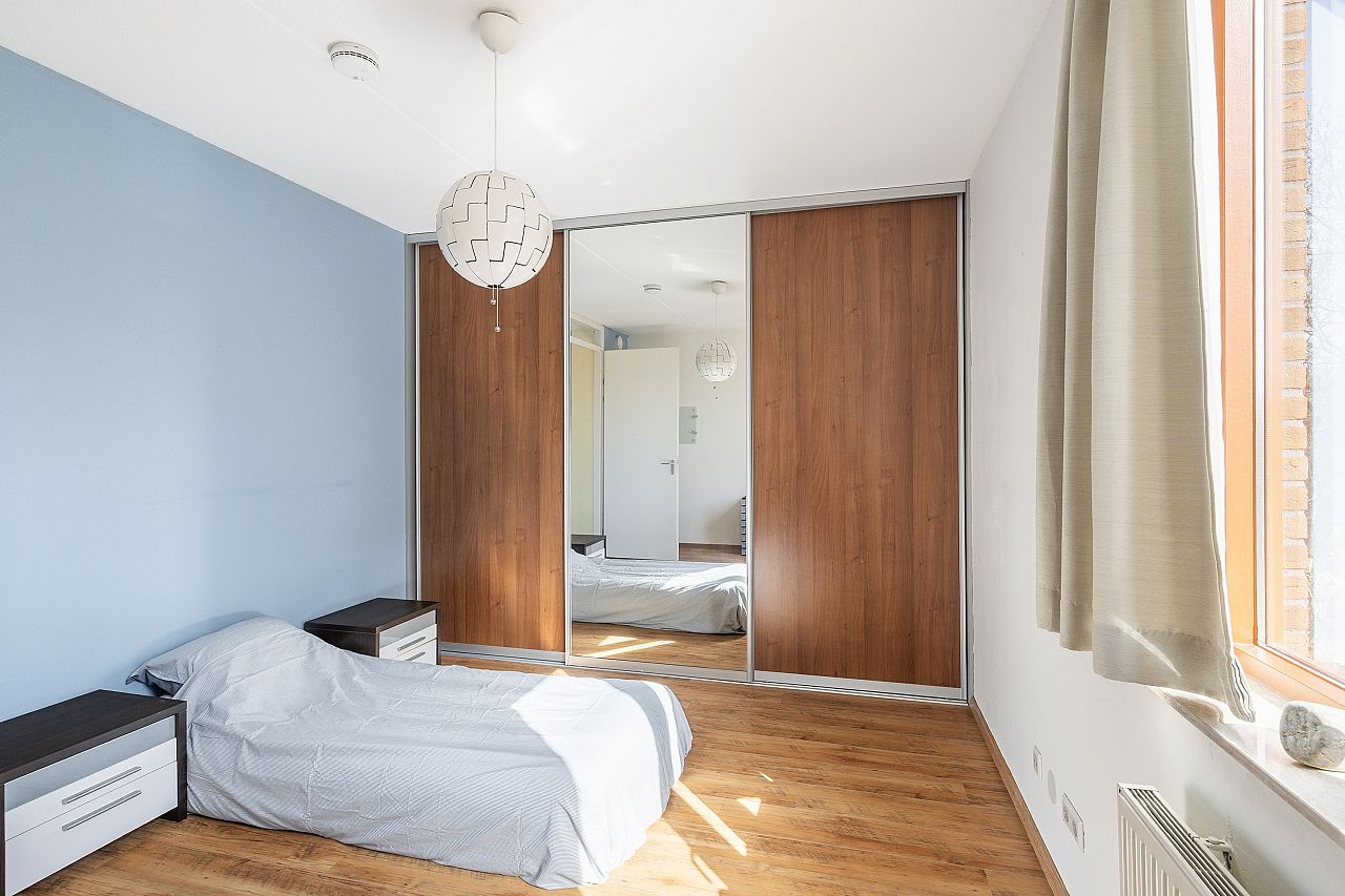 Ruime overloop met openslaande deuren naar het dakterras van ca. 15 m². Berging voorzien van wasmachineaansluiting, mechanische ventilatie en CV ketel Remeha 2024. Ruime trapkast. Slaapkamer, gehele verdieping is voorzien van laminaatvloer.