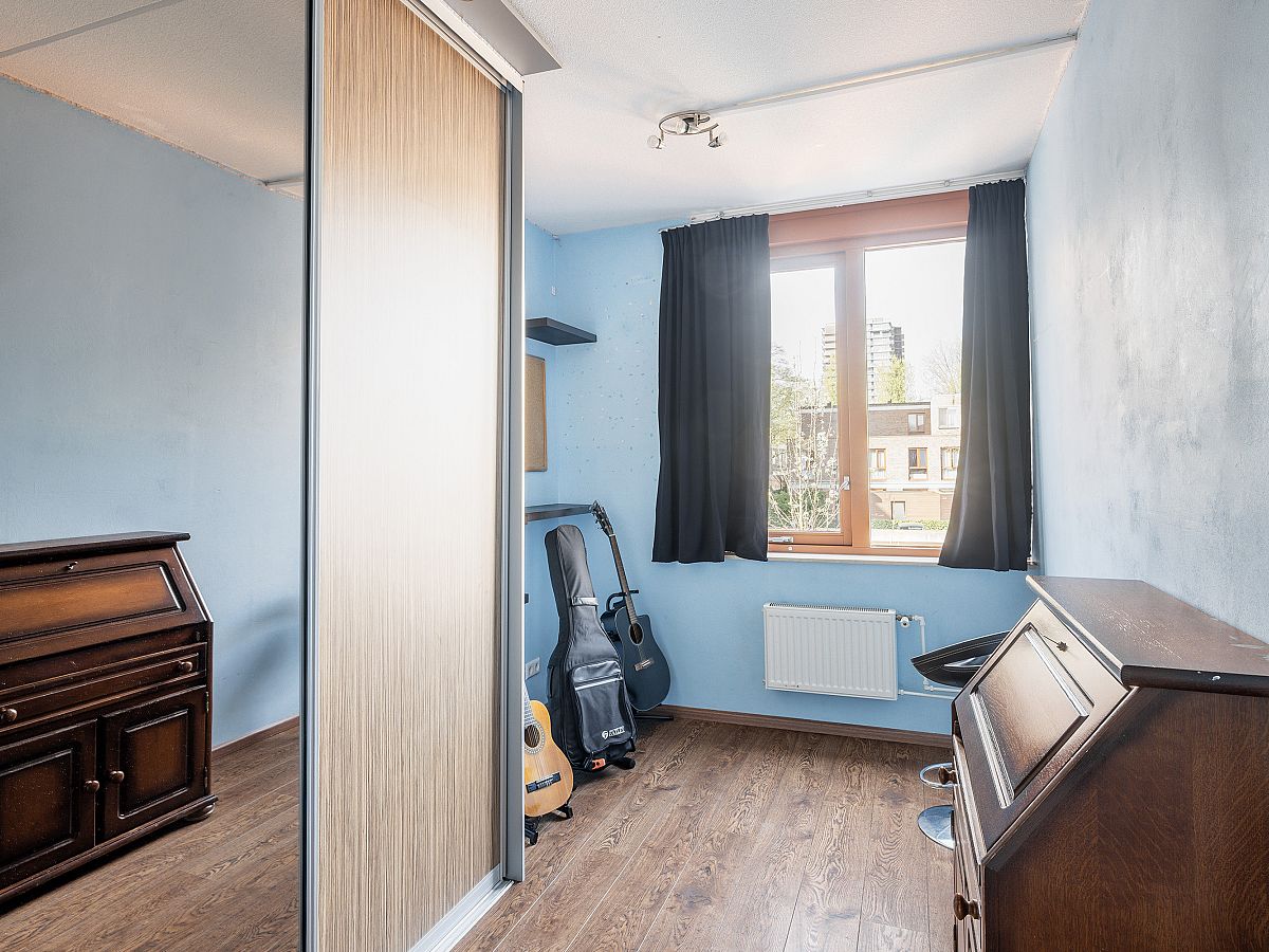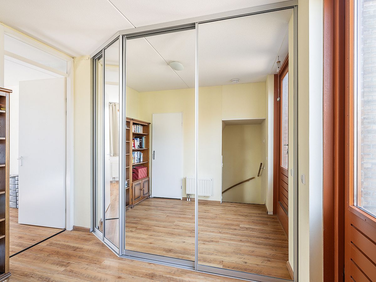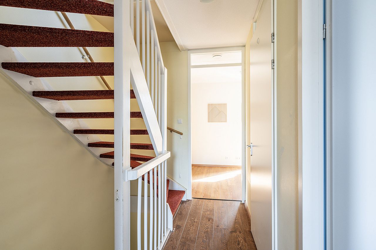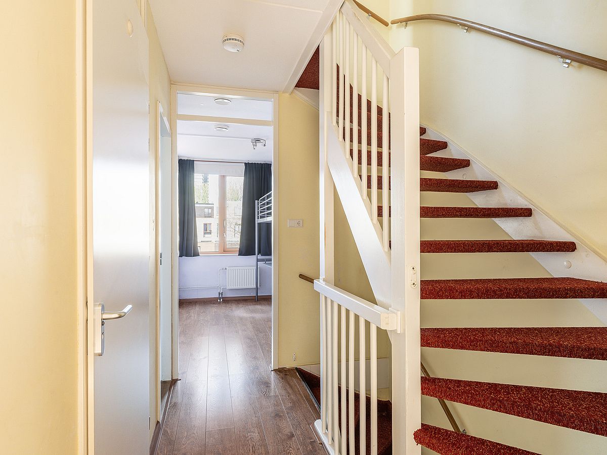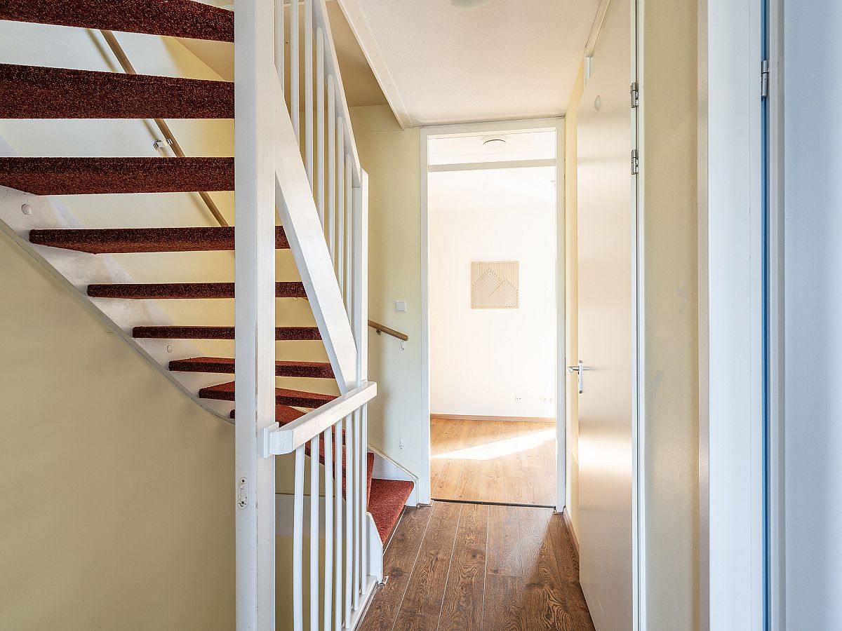 Ruime overloop met openslaande deuren naar het dakterras van ca. 15 m². Berging voorzien van wasmachineaansluiting, mechanische ventilatie en CV ketel Remeha 2024. Ruime trapkast. Slaapkamer, gehele verdieping is voorzien van laminaatvloer.