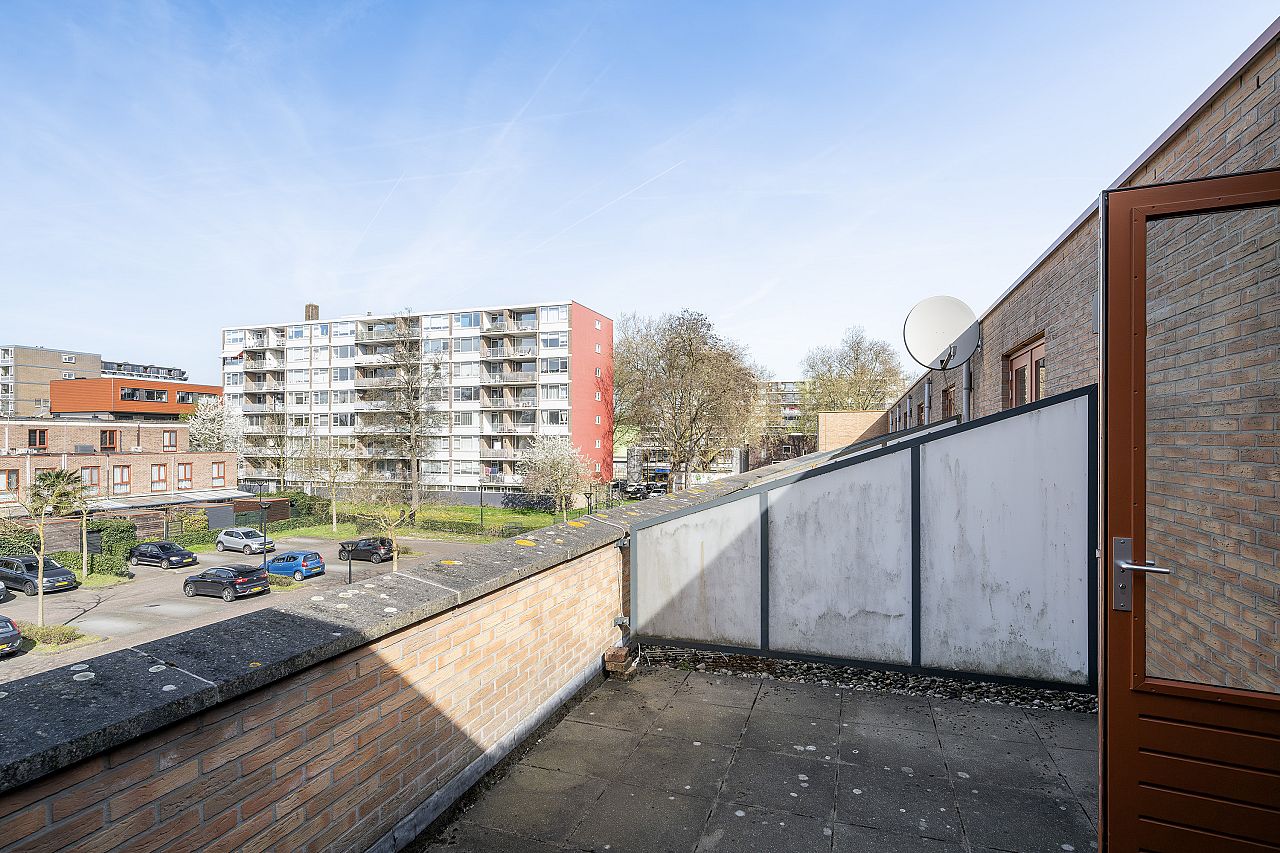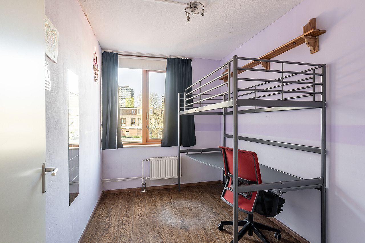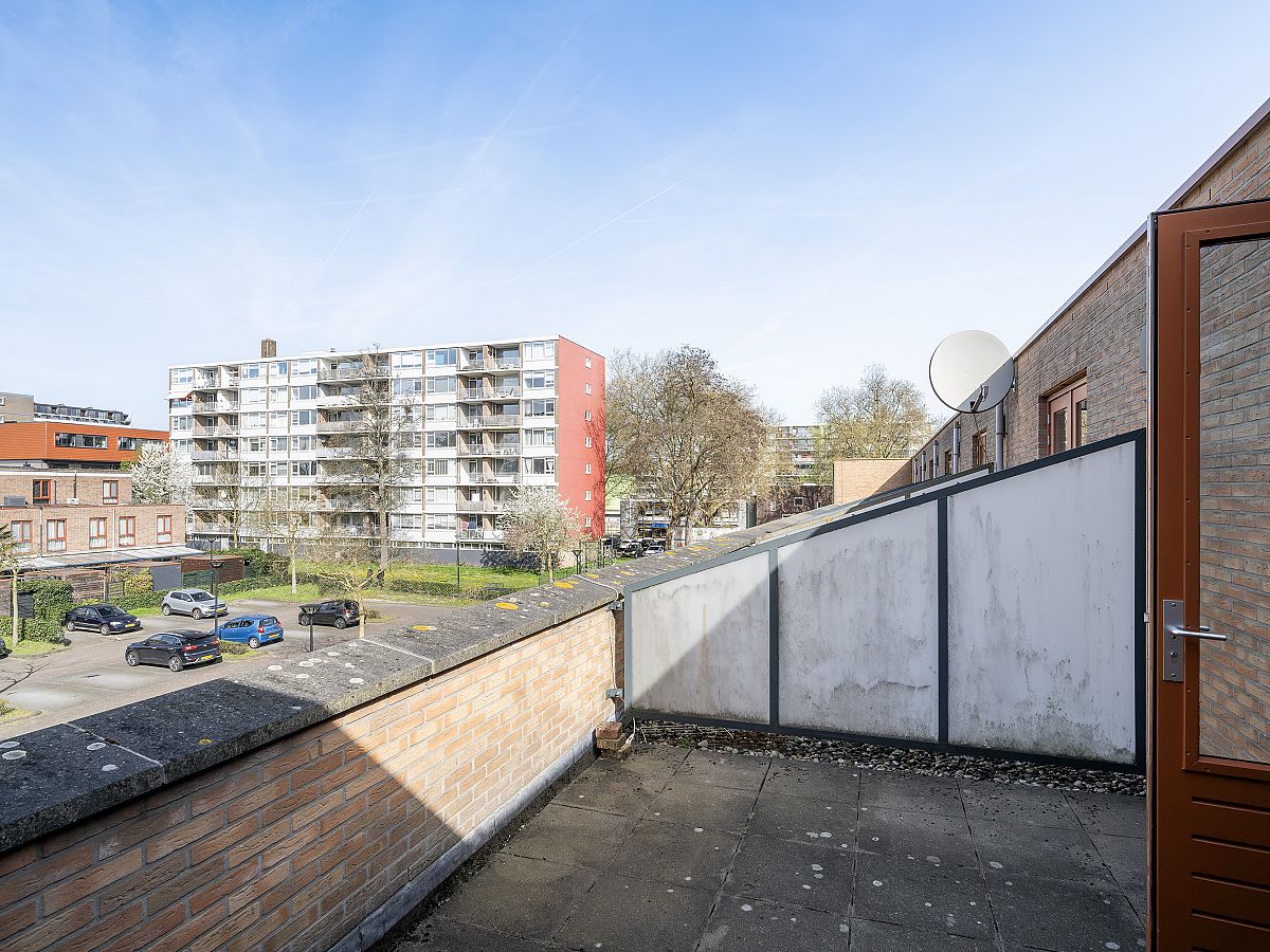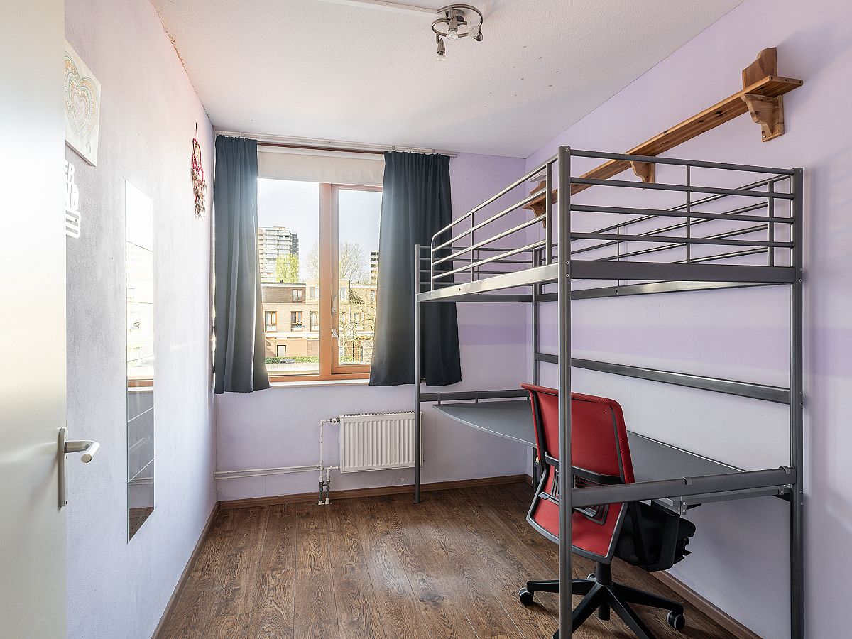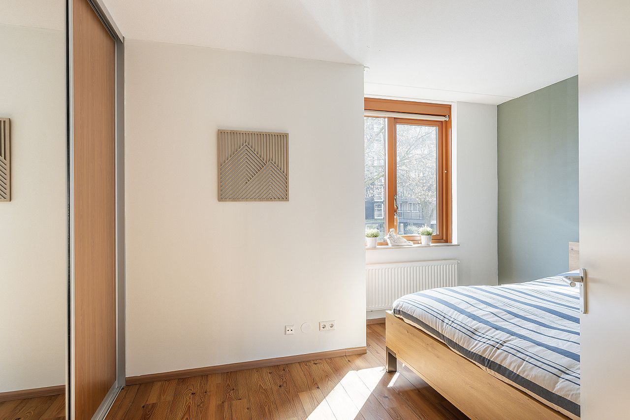Ruime overloop met openslaande deuren naar het dakterras van ca. 15 m². Berging voorzien van wasmachineaansluiting, mechanische ventilatie en CV ketel Remeha 2024. Ruime trapkast. Slaapkamer, gehele verdieping is voorzien van laminaatvloer.
