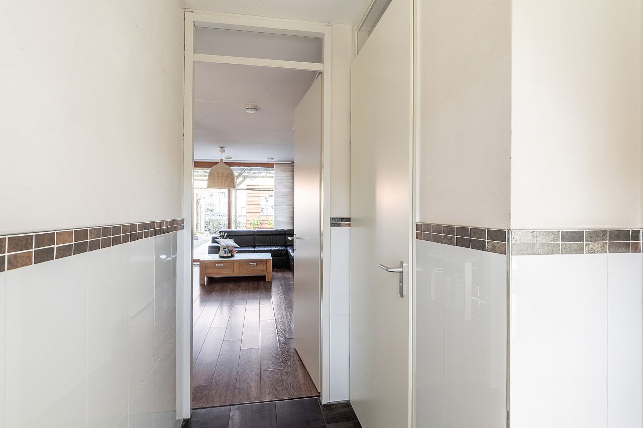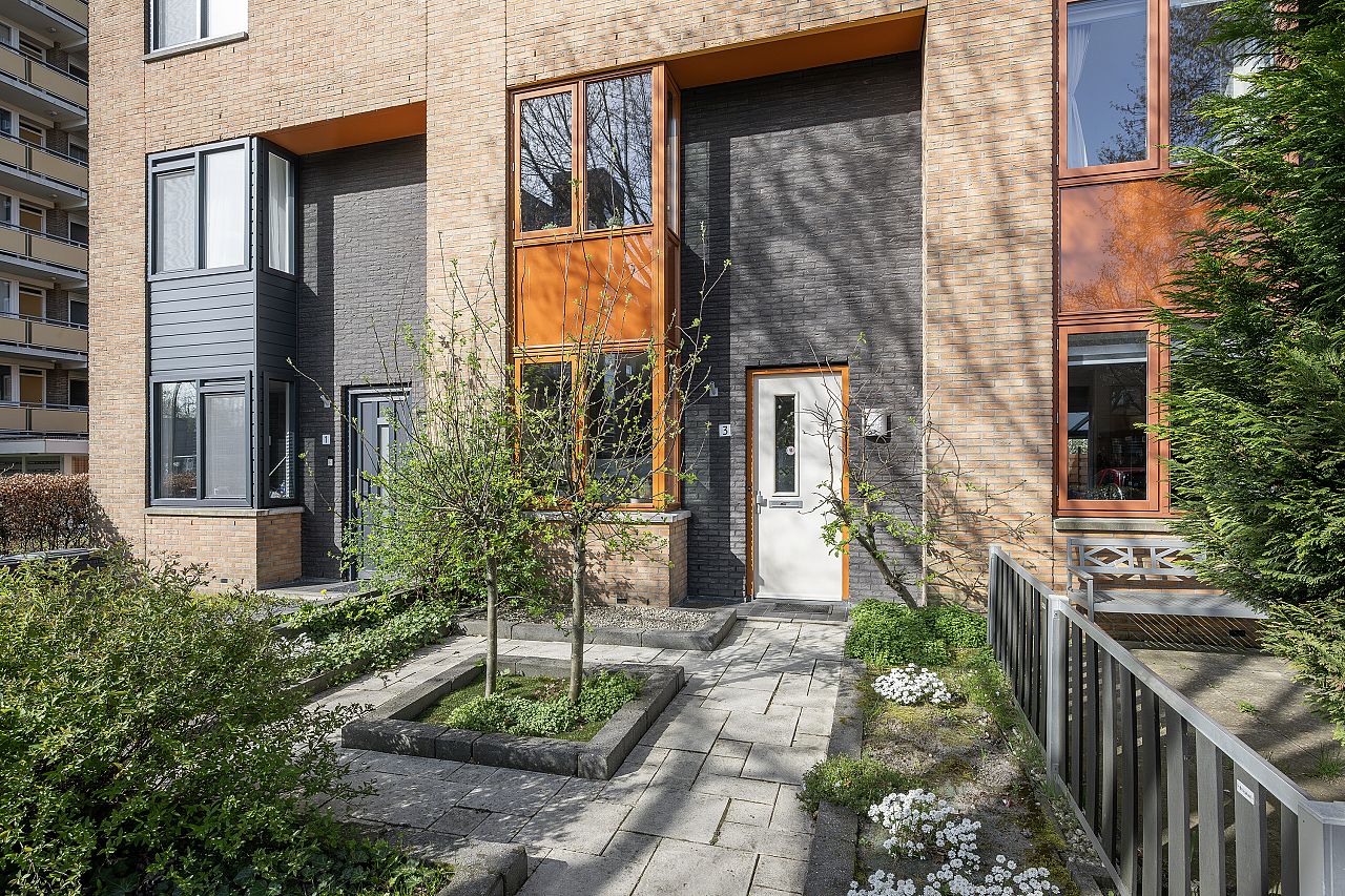Via de diepe voortuin is de entree van de woning te bereiken.
