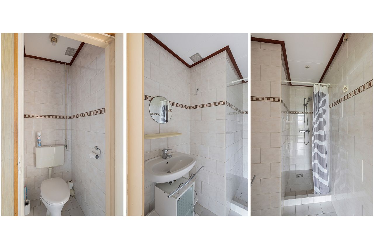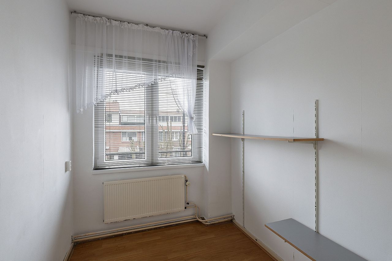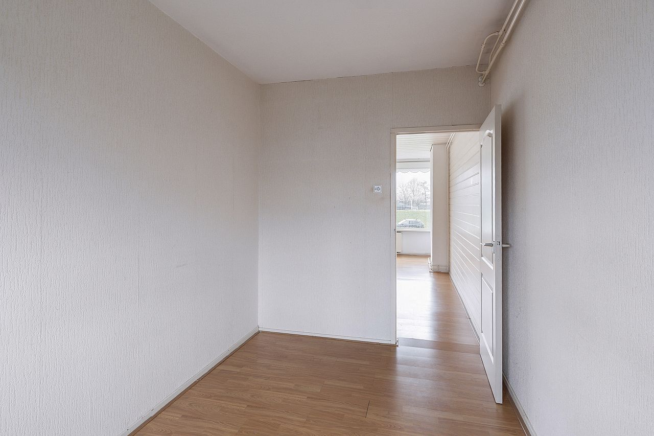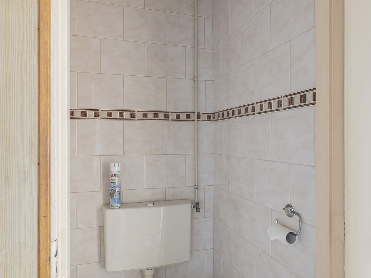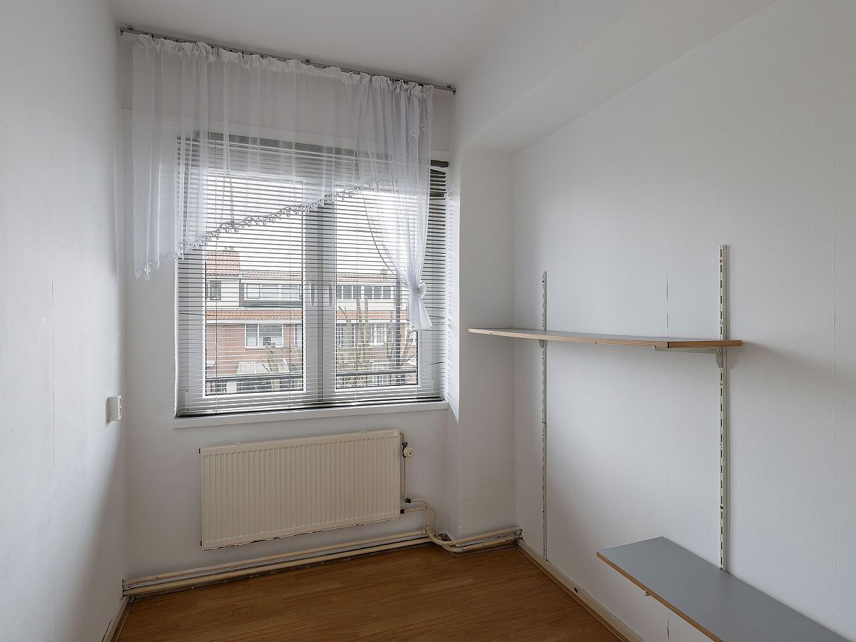Ruime slaapkamer aan balkonzijde, afgewerkt met laminaatvloer en voorzien van nieuwe kunststof pui. Vanuit deze kamer toegang tot de badkamer met douche, wastafel en wasmachine aansluiting.