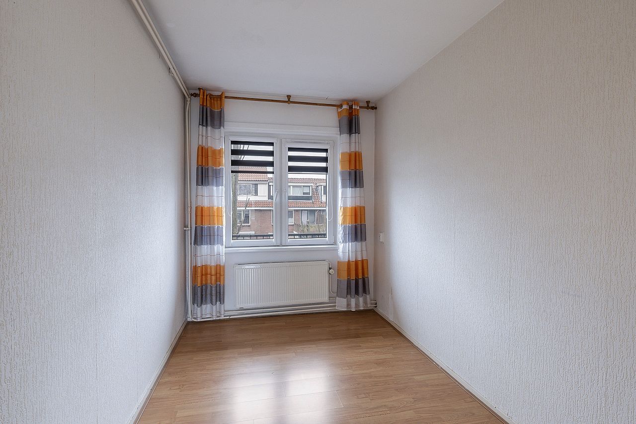 De derde slaapkamer is bereikbaar vanuit de woonkamer, is ook afgewerkt met een laminaatvloer en voorzien van nieuwe kunststof kozijnen.