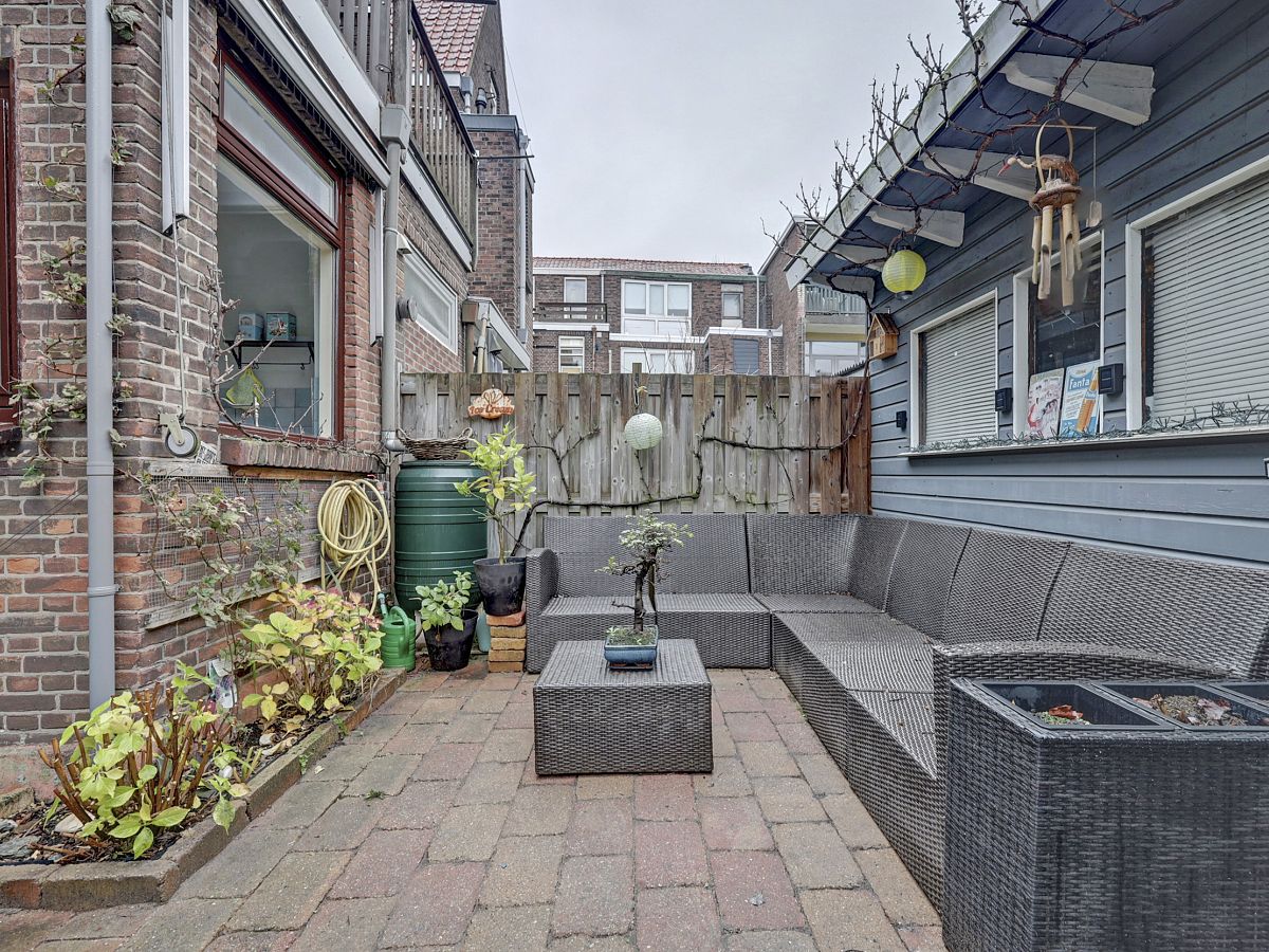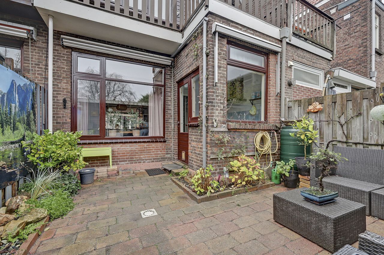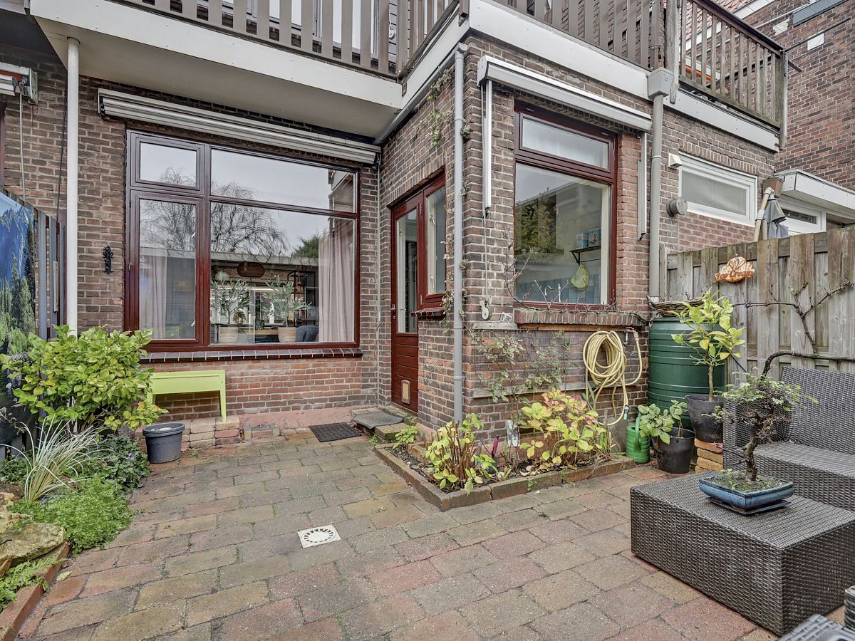 De tuin is op het oosten gelegen en is heerlijk toeven met veel privacy. Royale berging voorzien van elektra en achteruitgang.