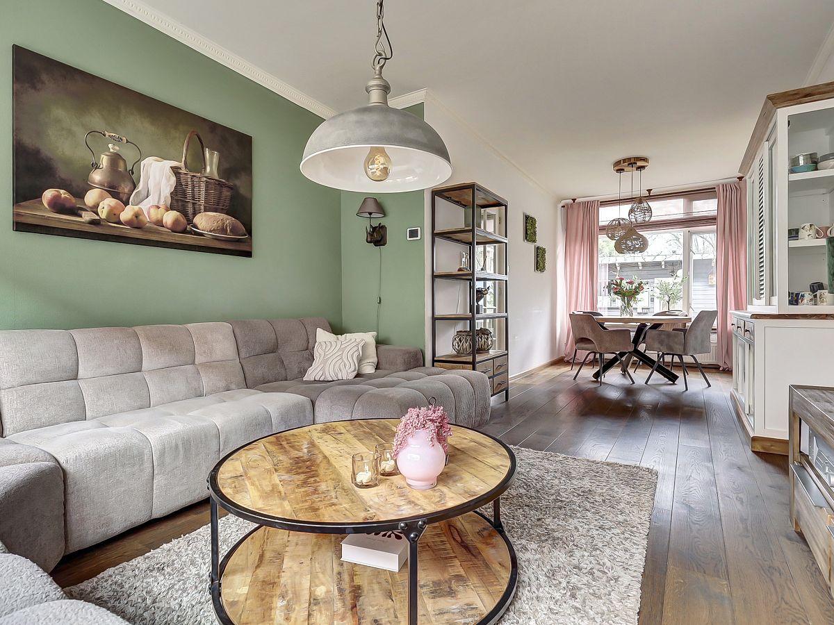 Doorzonwoonkamer met lichte massief eiken vloer.