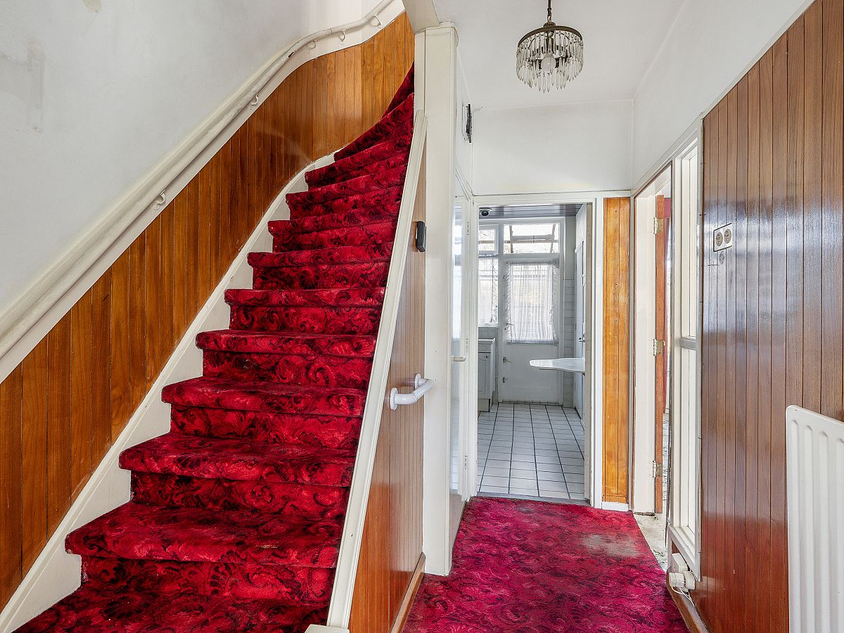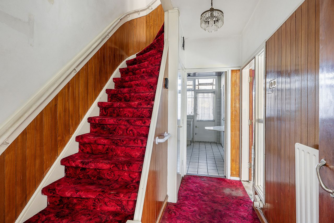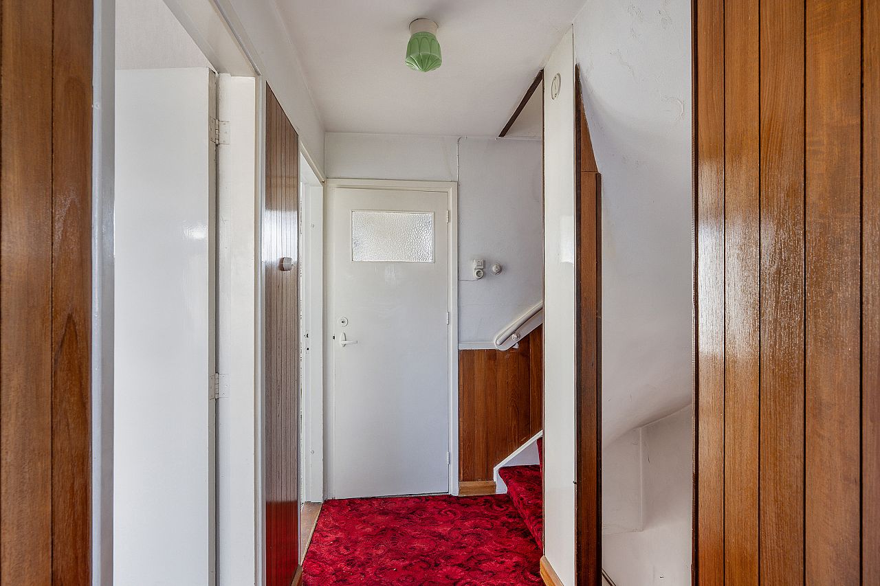 Hal met toegangsdeur naar de kelder waar je de meterkast vindt, opbergruimte en het stookhok waar de CV ketel is opgesteld.
