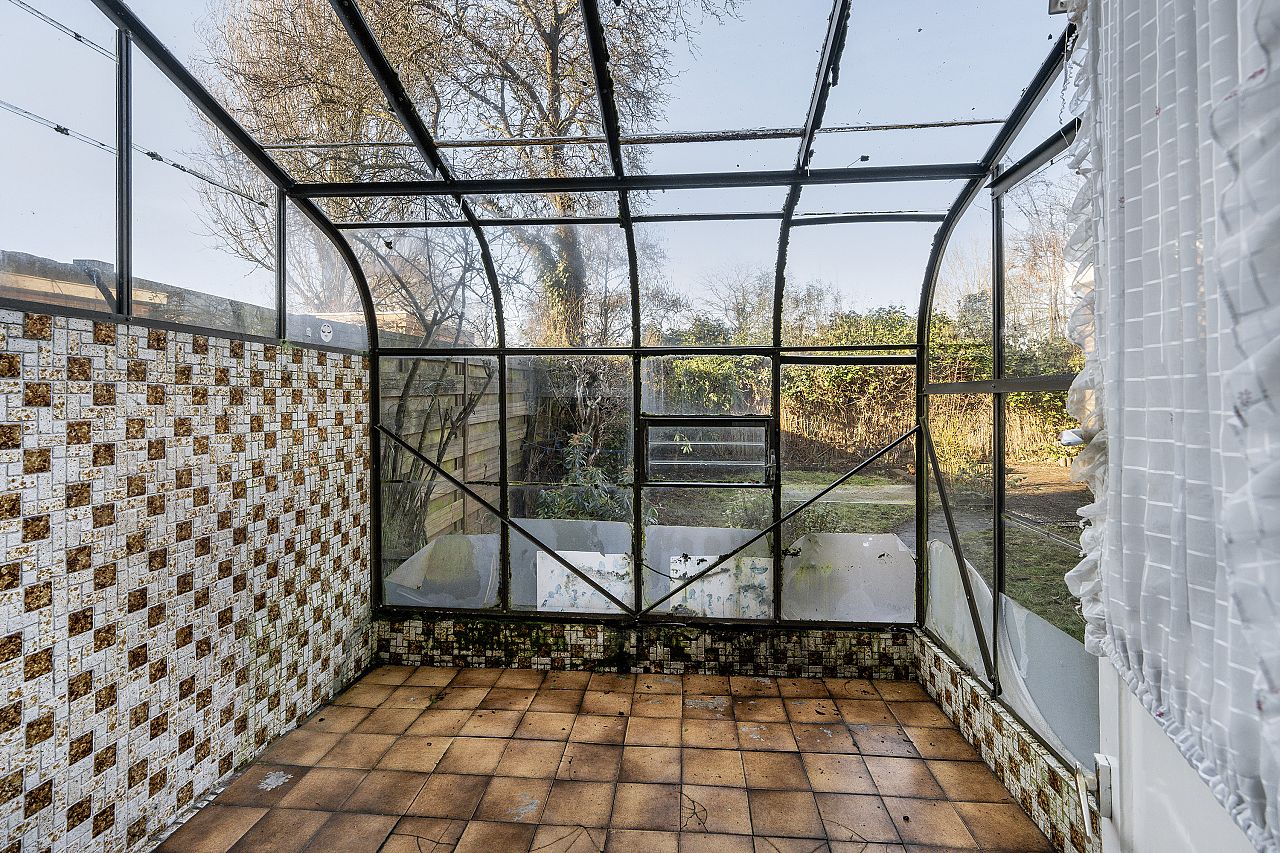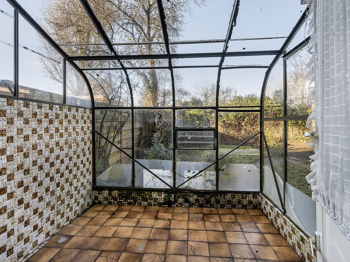 Via de keuken toegang tot de aangebouwde serre waar de geiser is opgesteld.