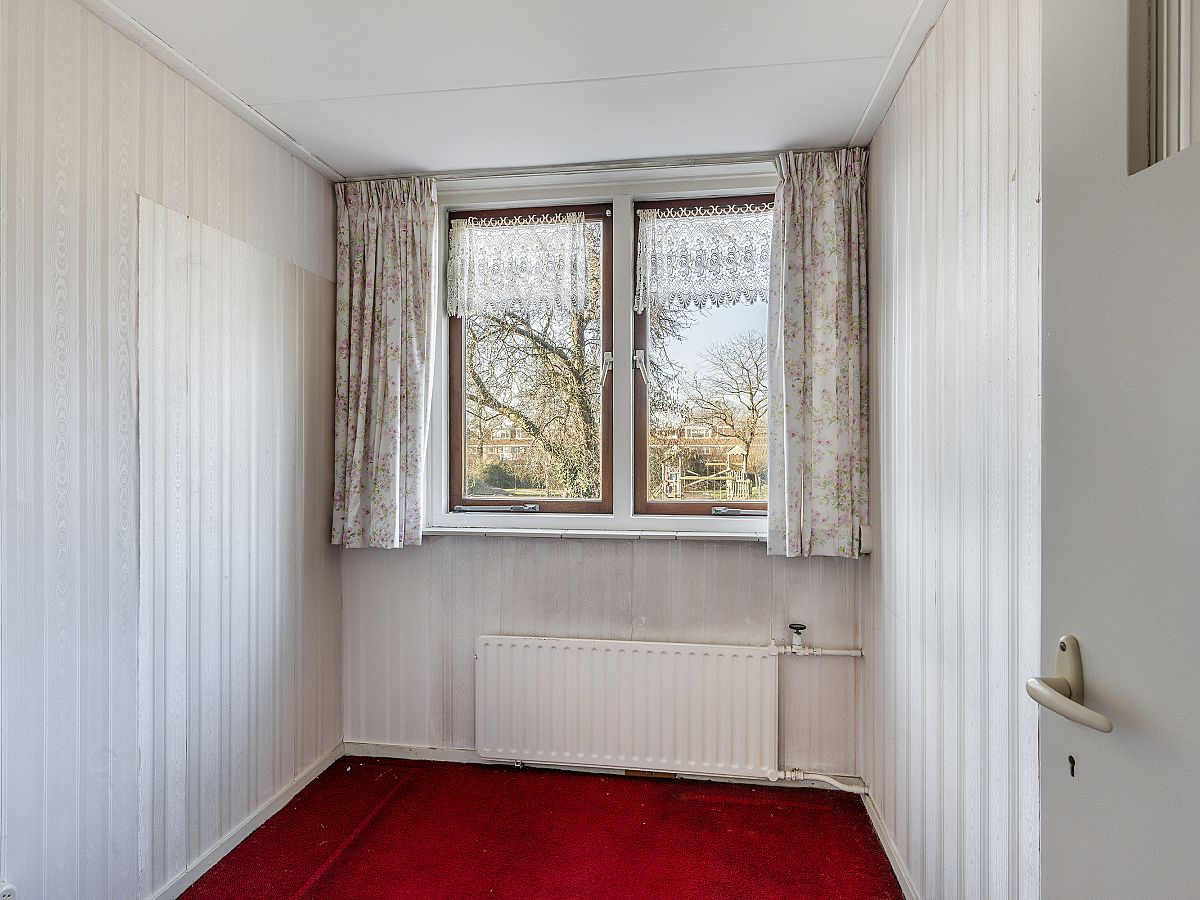 Kleine slaapkamer aan de achterzijde met vaste kast.