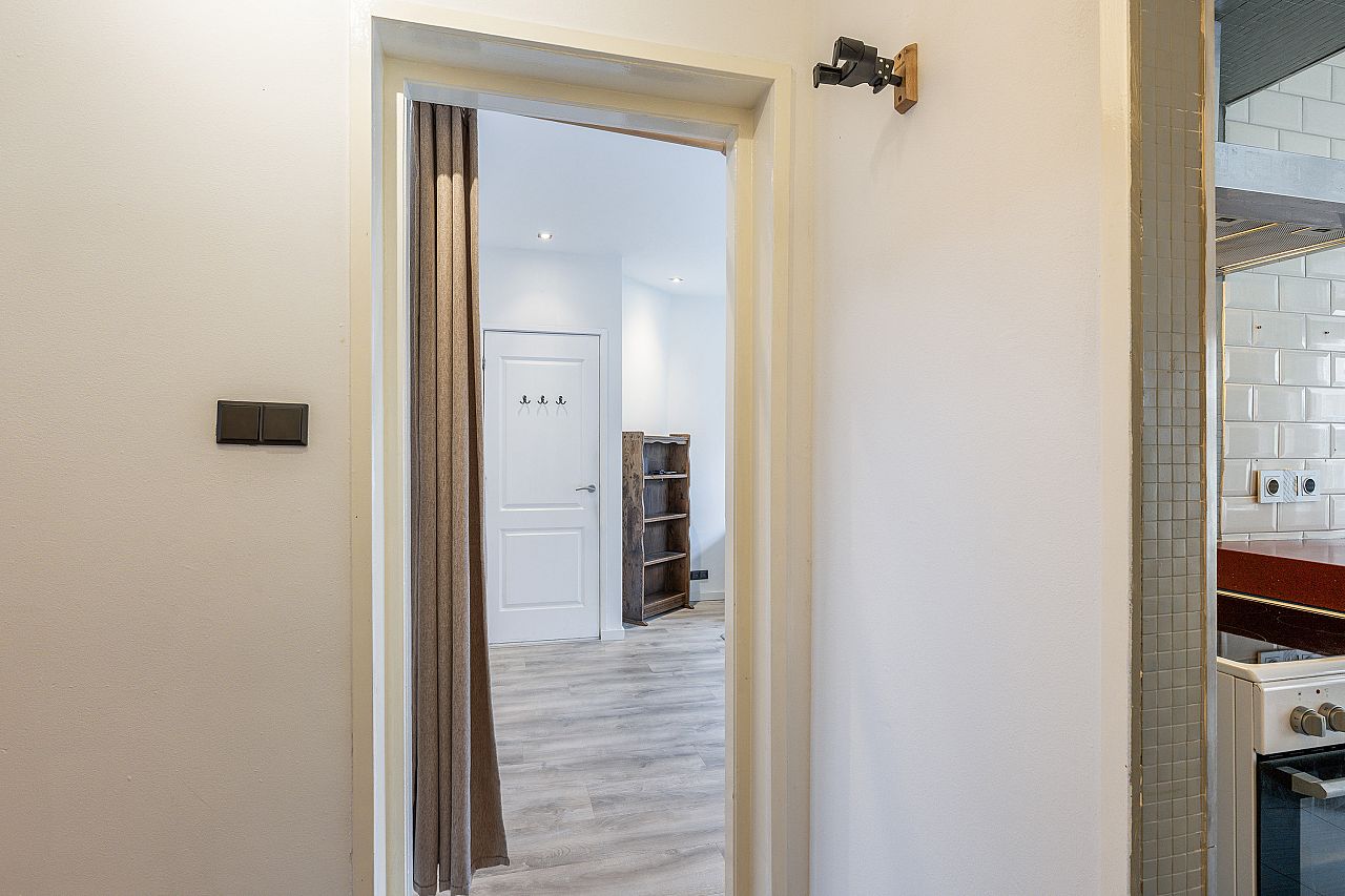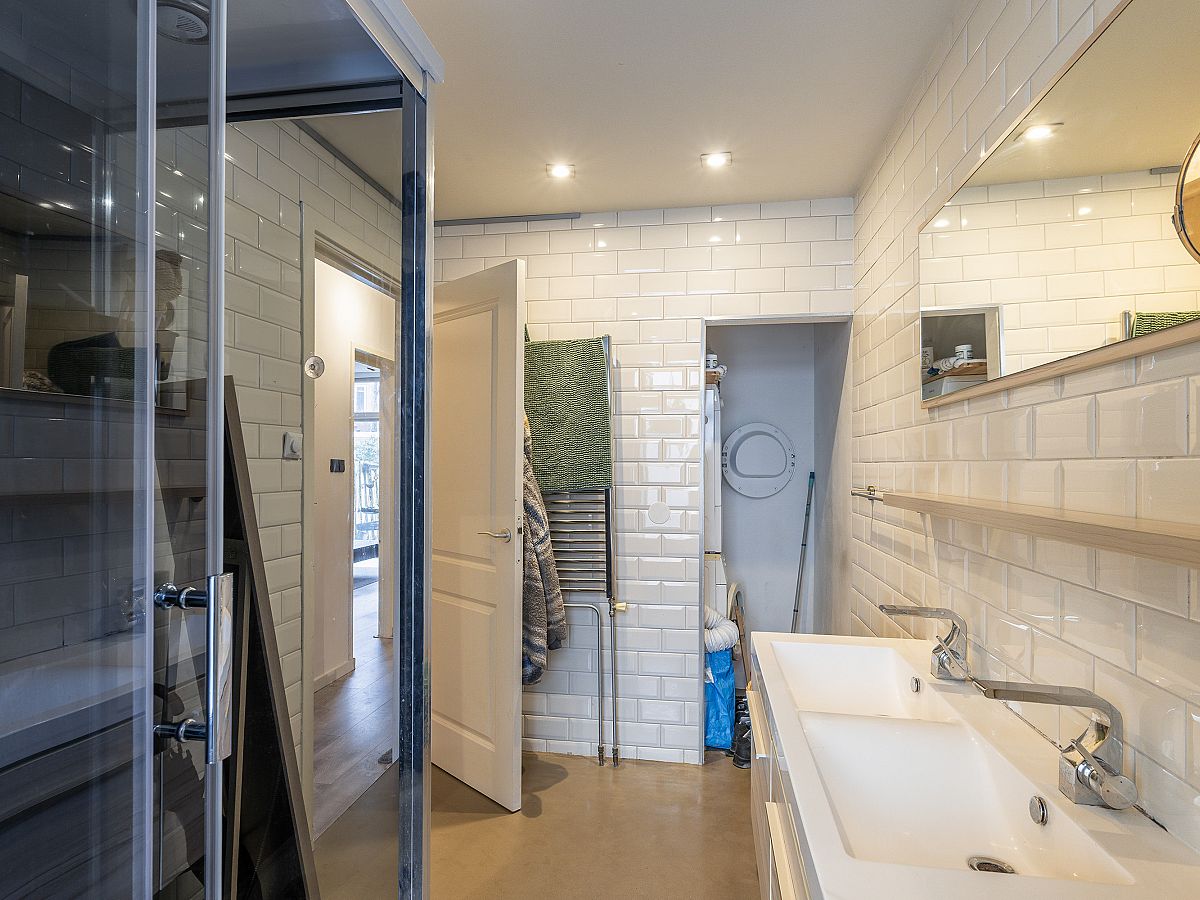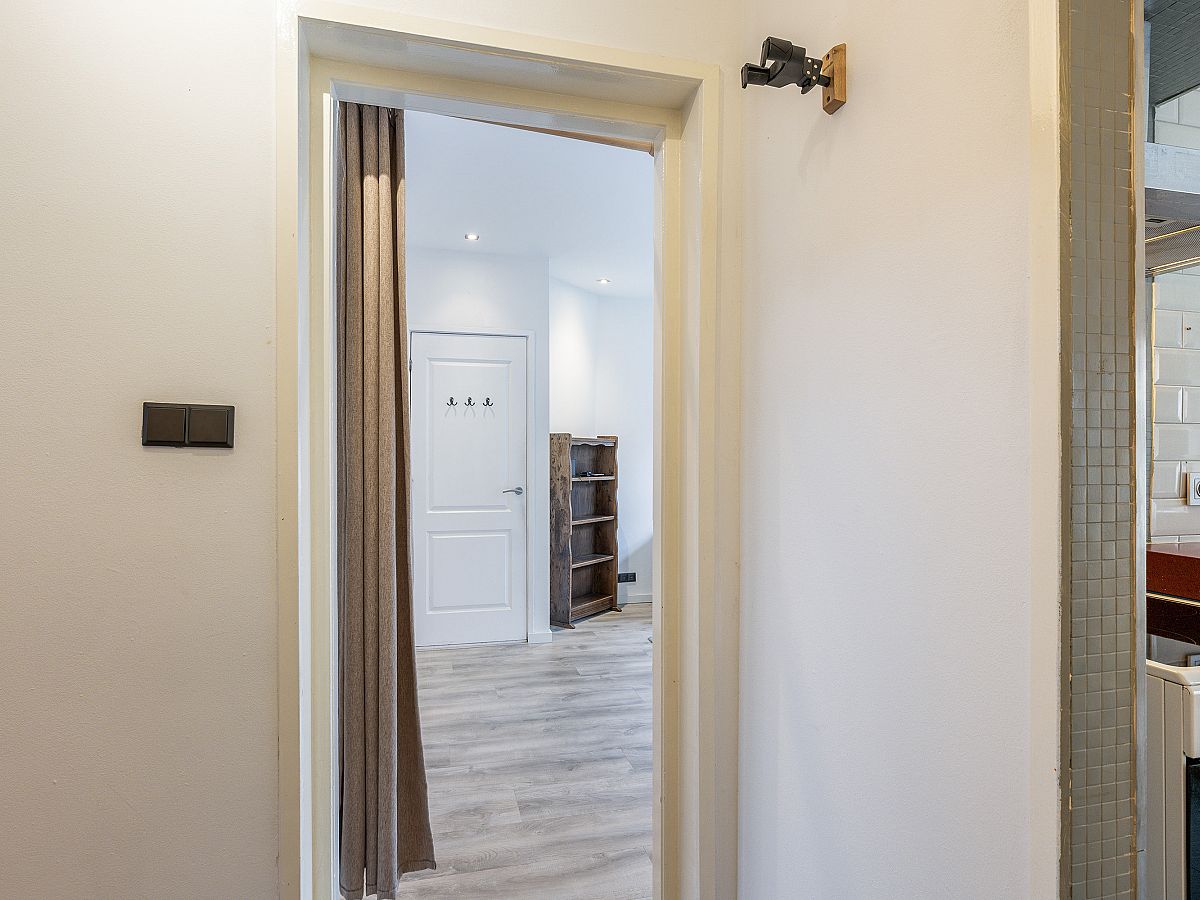 De vestibule geeft toegang tot de woning en beschikt over de meterkast en een deur naar de hal. De hal is voorzien van deuren naar de slaapkamer, woonkamer, keuken en de half betegelde toiletruimte met hangend toilet en inbouwspots. De ruime, tuingerichte woonkamer is zeer licht door de grote schuifpui en is voorzien van een riante bergkast, een doorkijkje met spots naar de keuken en een strak plafond met inbouwspots. De keuken is eveneens zeer ruim en heeft een natuurstenen werkblad, een elektrisch fornuis met grote oven, afzuigkap, vaatwasmachine en Amerikaanse koelkast met vriesgedeelte en ijsblokjesmachine. Via een deur in de keuken is de tuin te bereiken. De slaapkamer is gelegen aan de voorzijde van het appartement en is door de huidige bewoners opgesplitst met een tussenwand, waardoor er twee slaapkamers zijn ontstaan. Deze tussenwand is zeer gemakkelijk te verwijderen. De riante badkamer is volledig betegeld en beschikt over een dubbele wastafelmeubel, nieuwe douchecabine met regendouche en Bluetooth-aansluiting(2021), de wasmachine-aansluiting en plafond met inbouwspots.
