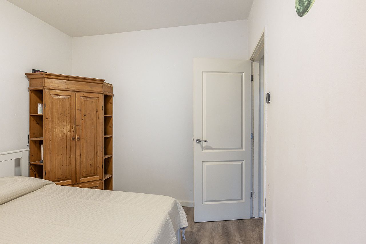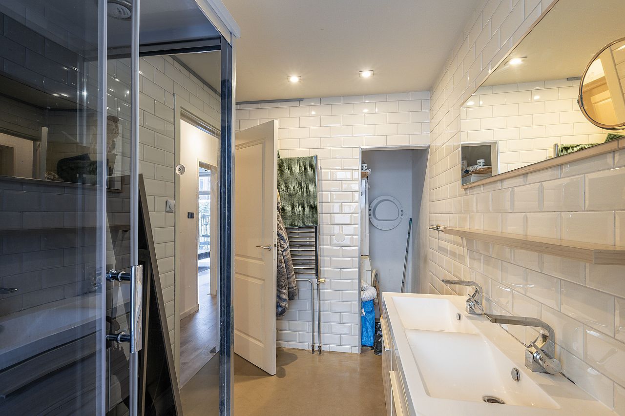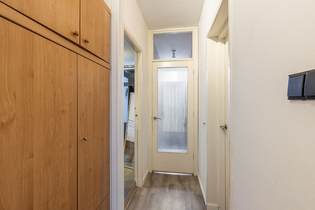 De vestibule geeft toegang tot de woning en beschikt over de meterkast en een deur naar de hal. De hal is voorzien van deuren naar de slaapkamer, woonkamer, keuken en de half betegelde toiletruimte met hangend toilet en inbouwspots. De ruime, tuingerichte woonkamer is zeer licht door de grote schuifpui en is voorzien van een riante bergkast, een doorkijkje met spots naar de keuken en een strak plafond met inbouwspots. De keuken is eveneens zeer ruim en heeft een natuurstenen werkblad, een elektrisch fornuis met grote oven, afzuigkap, vaatwasmachine en Amerikaanse koelkast met vriesgedeelte en ijsblokjesmachine. Via een deur in de keuken is de tuin te bereiken. De slaapkamer is gelegen aan de voorzijde van het appartement en is door de huidige bewoners opgesplitst met een tussenwand, waardoor er twee slaapkamers zijn ontstaan. Deze tussenwand is zeer gemakkelijk te verwijderen. De riante badkamer is volledig betegeld en beschikt over een dubbele wastafelmeubel, nieuwe douchecabine met regendouche en Bluetooth-aansluiting(2021), de wasmachine-aansluiting en plafond met inbouwspots.