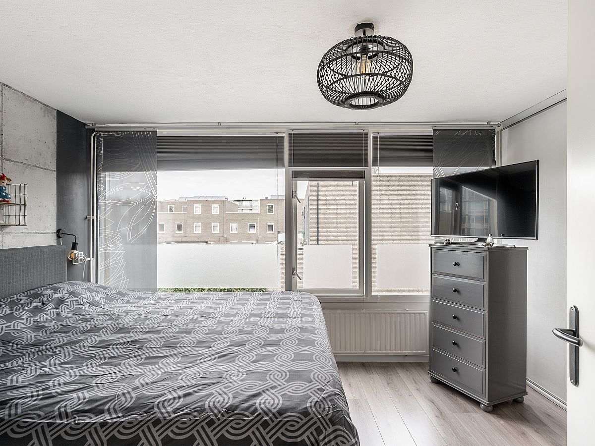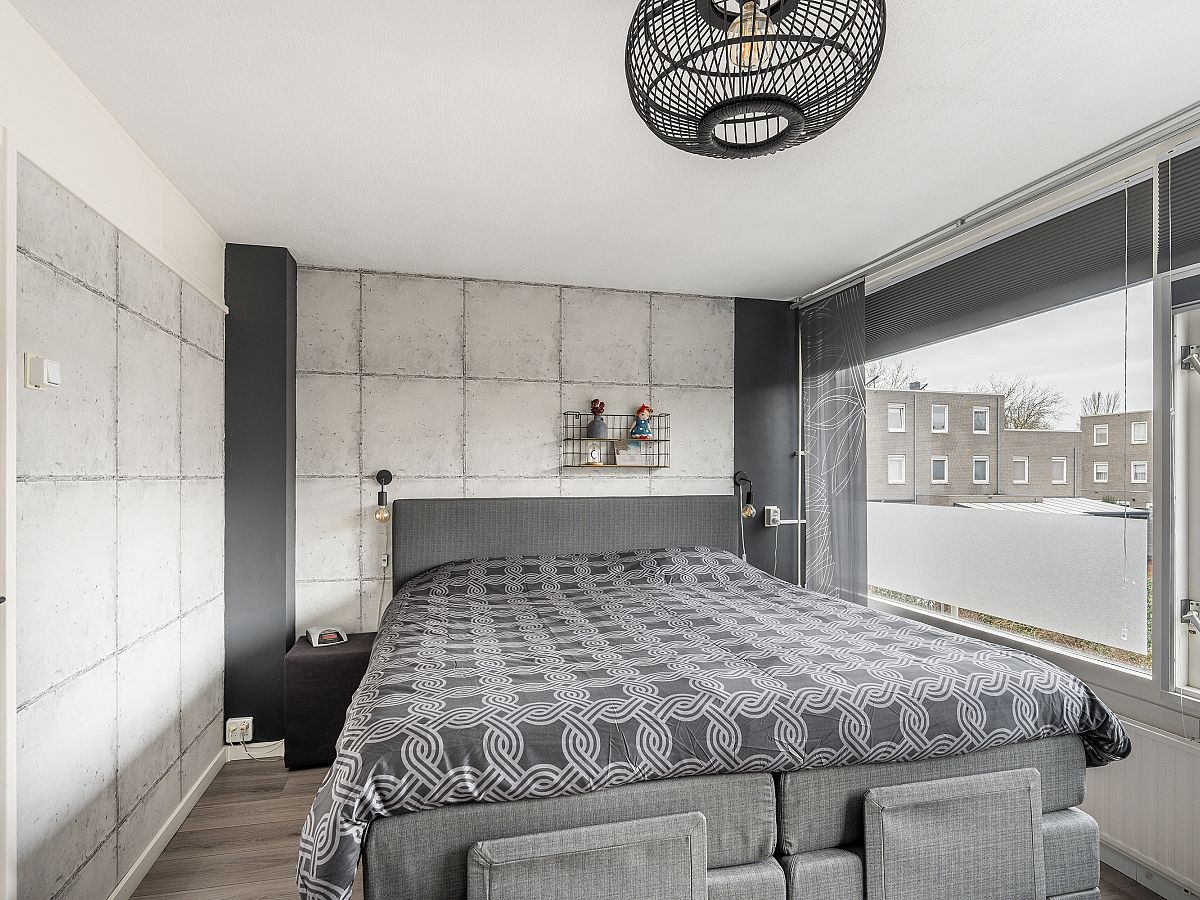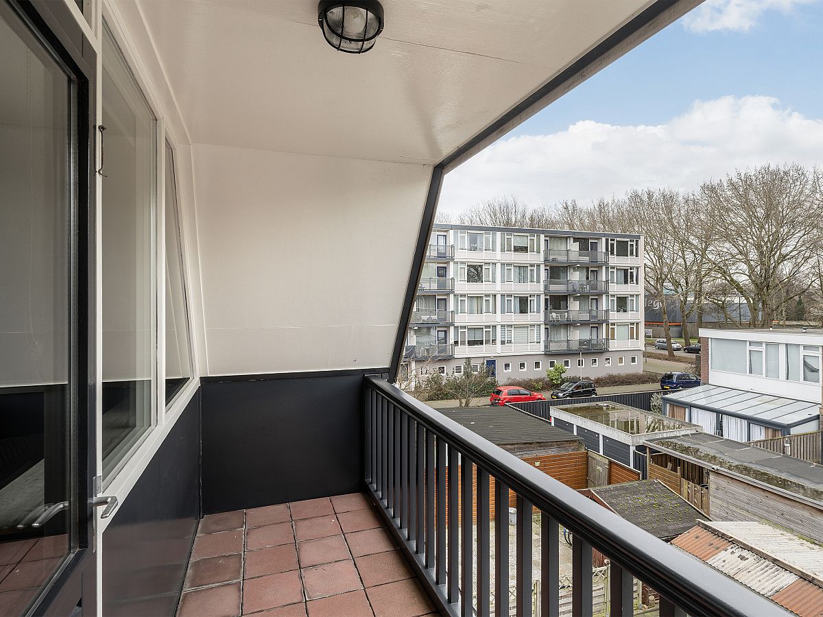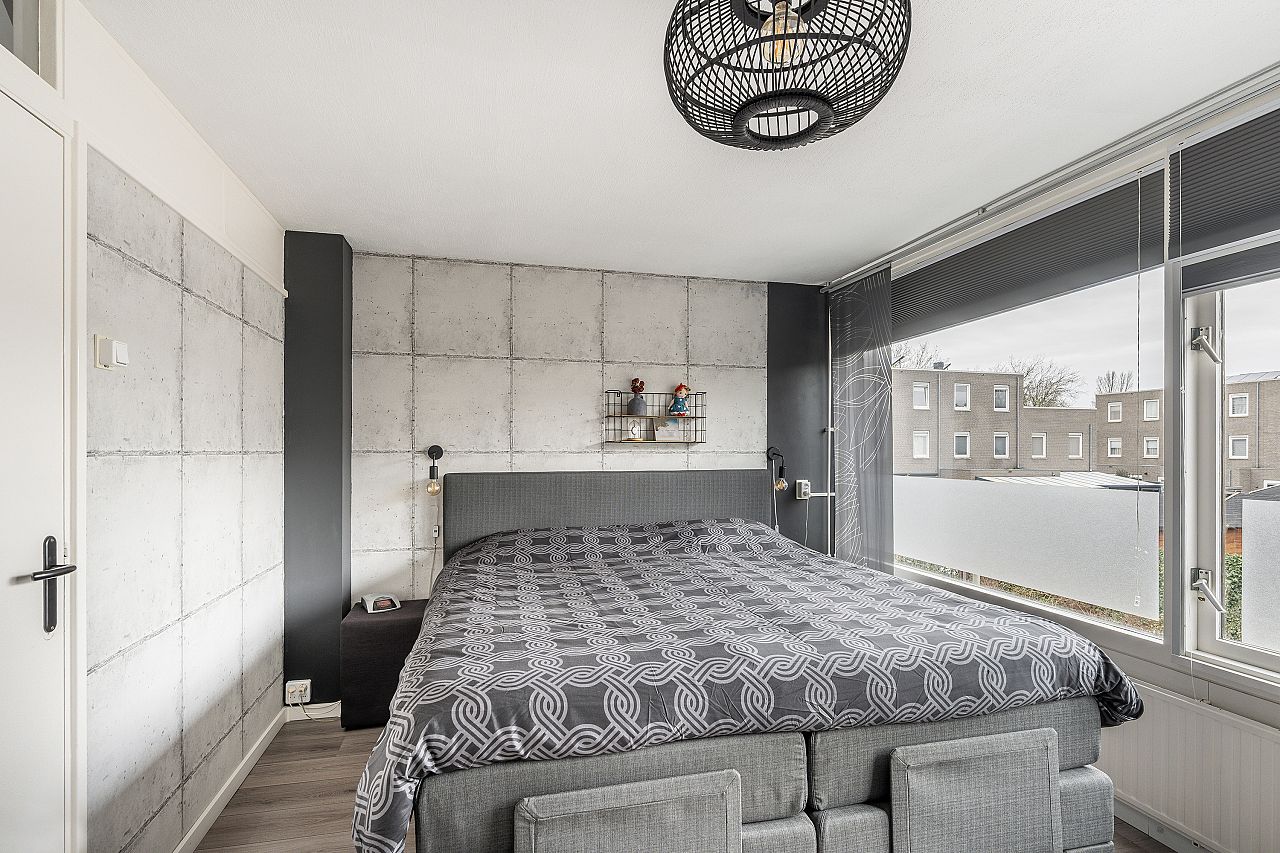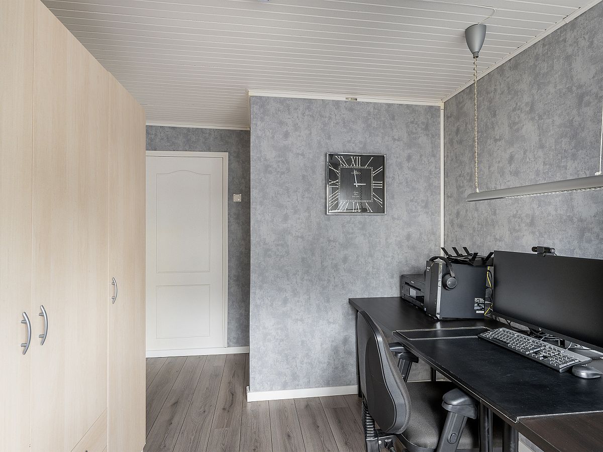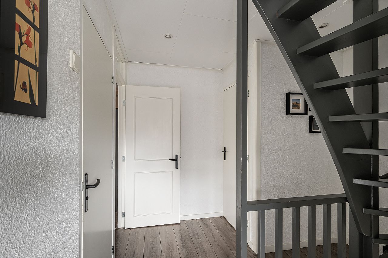 overloop; 1e slaapkamer aan achterzijde voorzien van schuifkastenwand en in gebruik als kastenkamer; 2e slaapkamer in gebruik als werkamer; badkamer (2019) met lichte grijze en mat witte betegeling en voorzien van inloopdouche, wastafelmeubel en 2e toilet; 3e slaapkamer aan voorzijde met schuifkastenwand. De hele verdieping is voorzien van hetzelfde laminaat, hardhouten kozijnen met dubbel glas en horren.