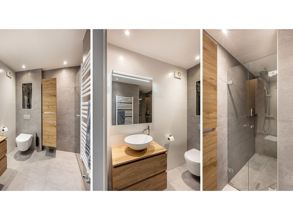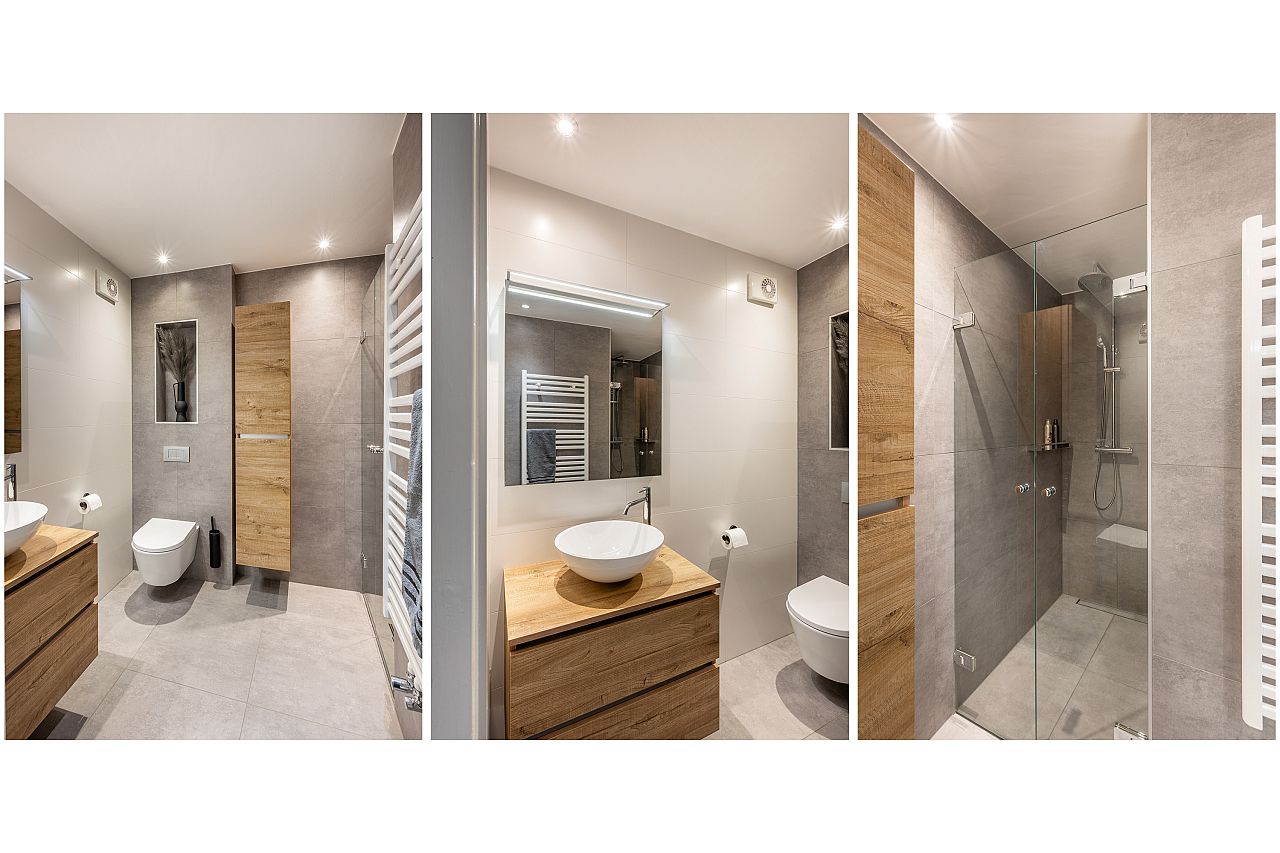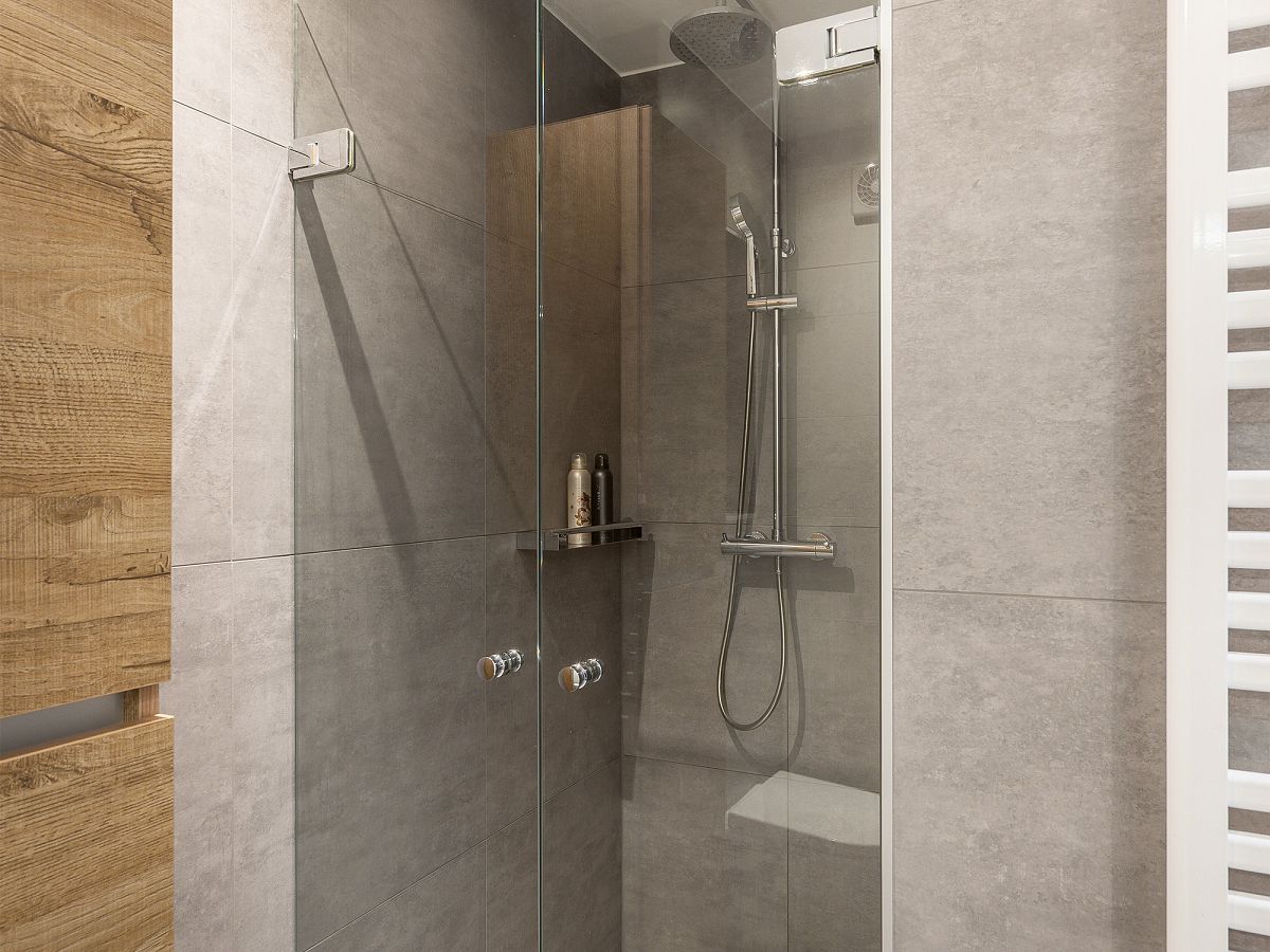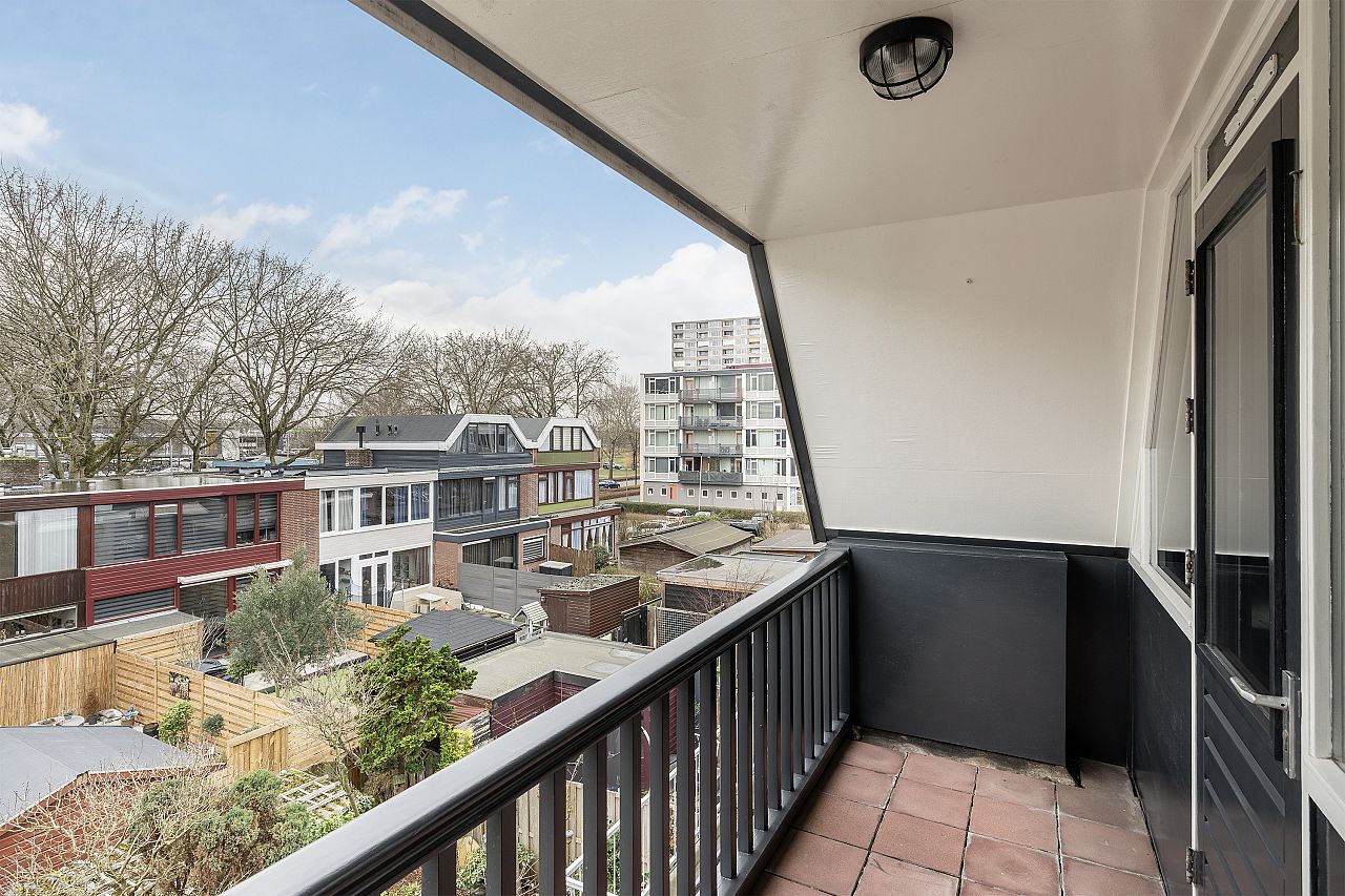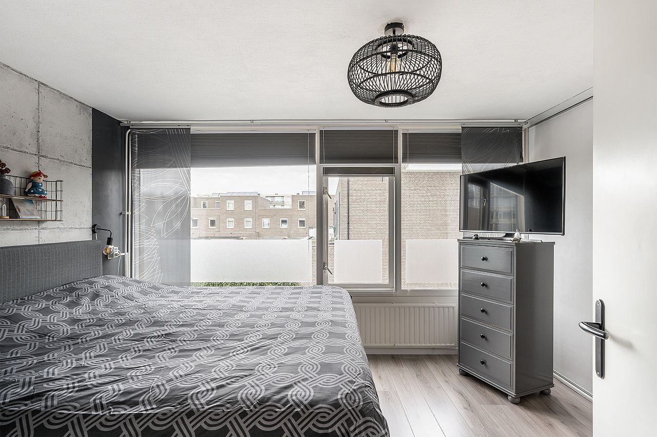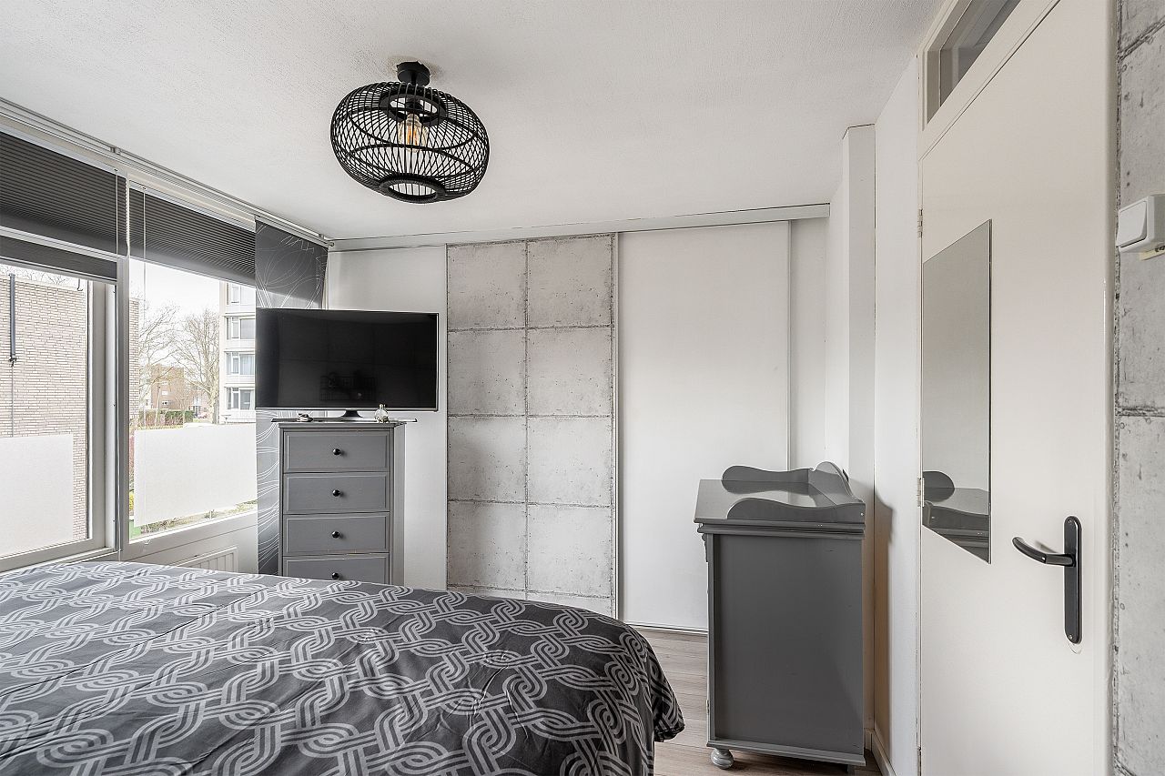 overloop; 1e slaapkamer aan achterzijde voorzien van schuifkastenwand en in gebruik als kastenkamer; 2e slaapkamer in gebruik als werkamer; badkamer (2019) met lichte grijze en mat witte betegeling en voorzien van inloopdouche, wastafelmeubel en 2e toilet; 3e slaapkamer aan voorzijde met schuifkastenwand. De hele verdieping is voorzien van hetzelfde laminaat, hardhouten kozijnen met dubbel glas en horren.