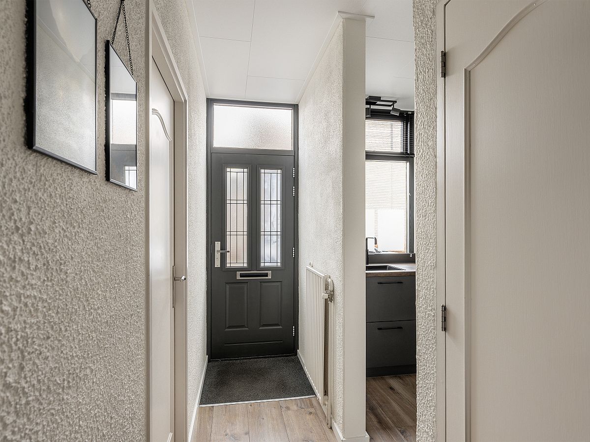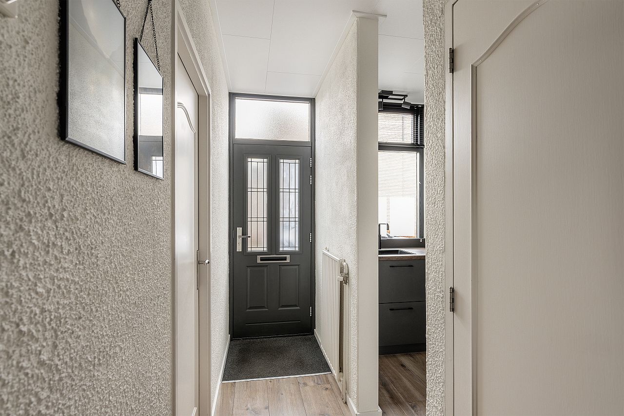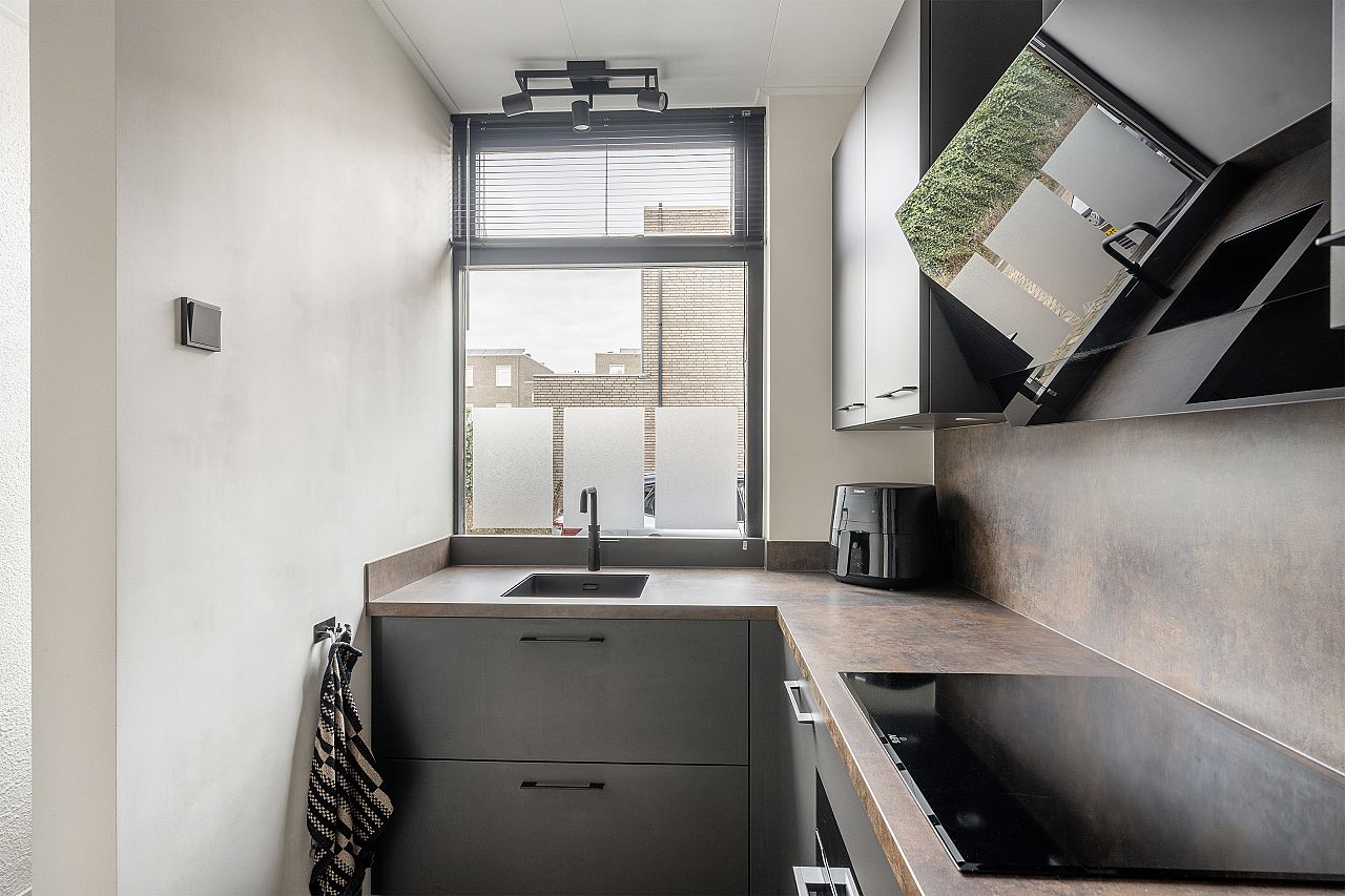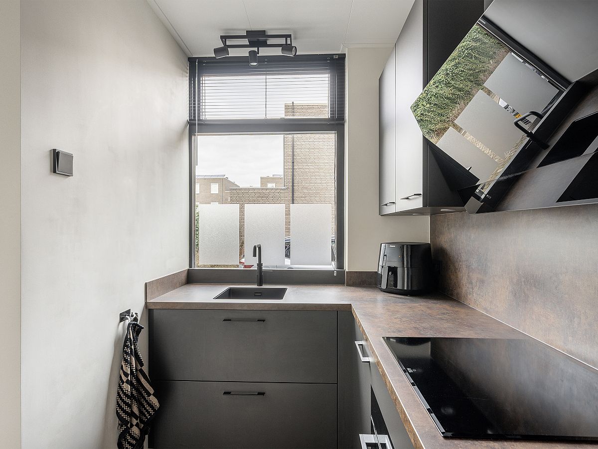 entree; gang; vernieuwde keuken aan de voorzijde van de woning voorzien van roestkleurig aanrechtblad en antracietgrijze inrichting, voorzien van Quooker, koel/vriescombinatie, afzuigkap, combiovenmagnetron; ruime berging alwaar de aansluiting voor de wasmachine en droger, losse vaatwasser en een cv combiketel (NEFIT 2018); vernieuwde meterkast; nette wit betegelde toiletruimte met wandclosetcombinatie; woonkamer is voorzien van laminaatvloer en openslaande deuren (met hor) naar de tuin. Vloerverwarming over de gehele beneden verdieping m.u.v. toilet en inpandige berging.