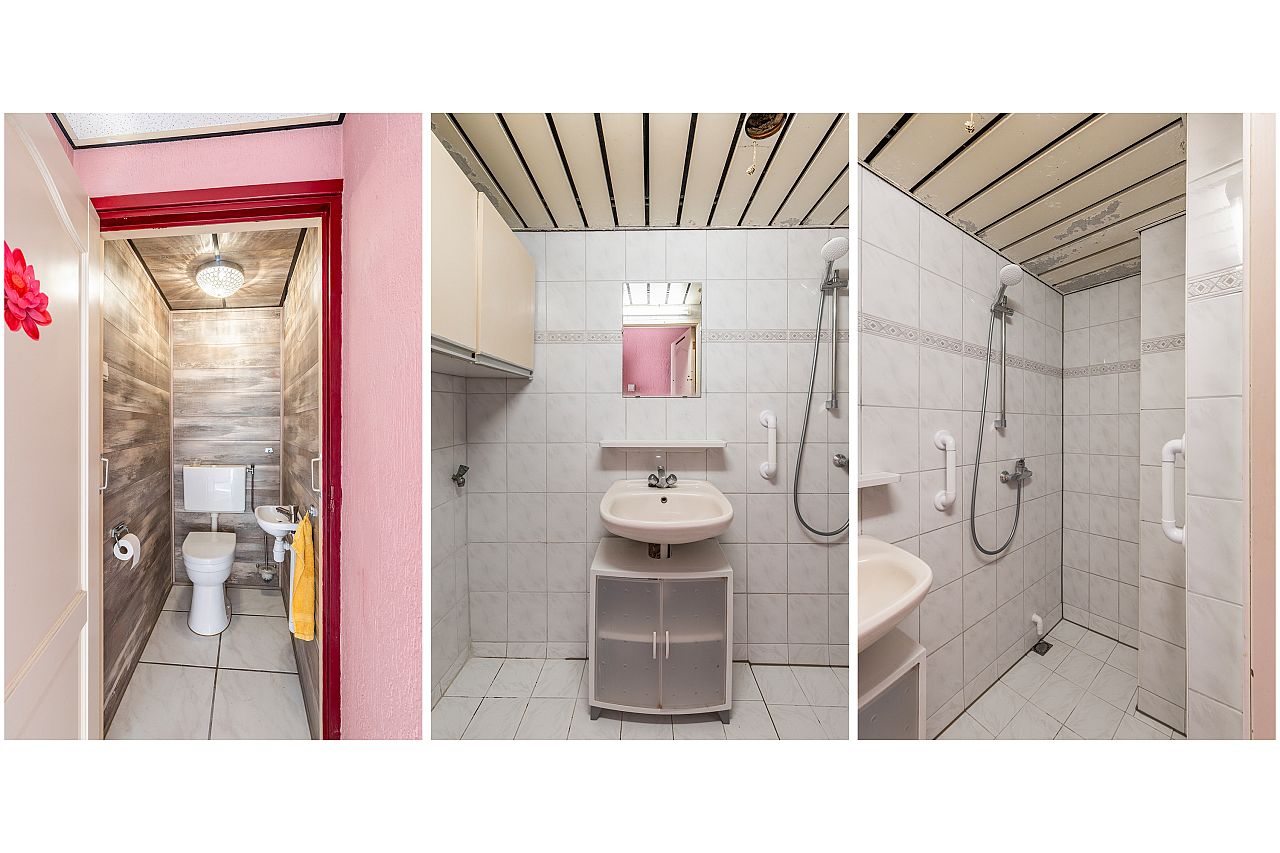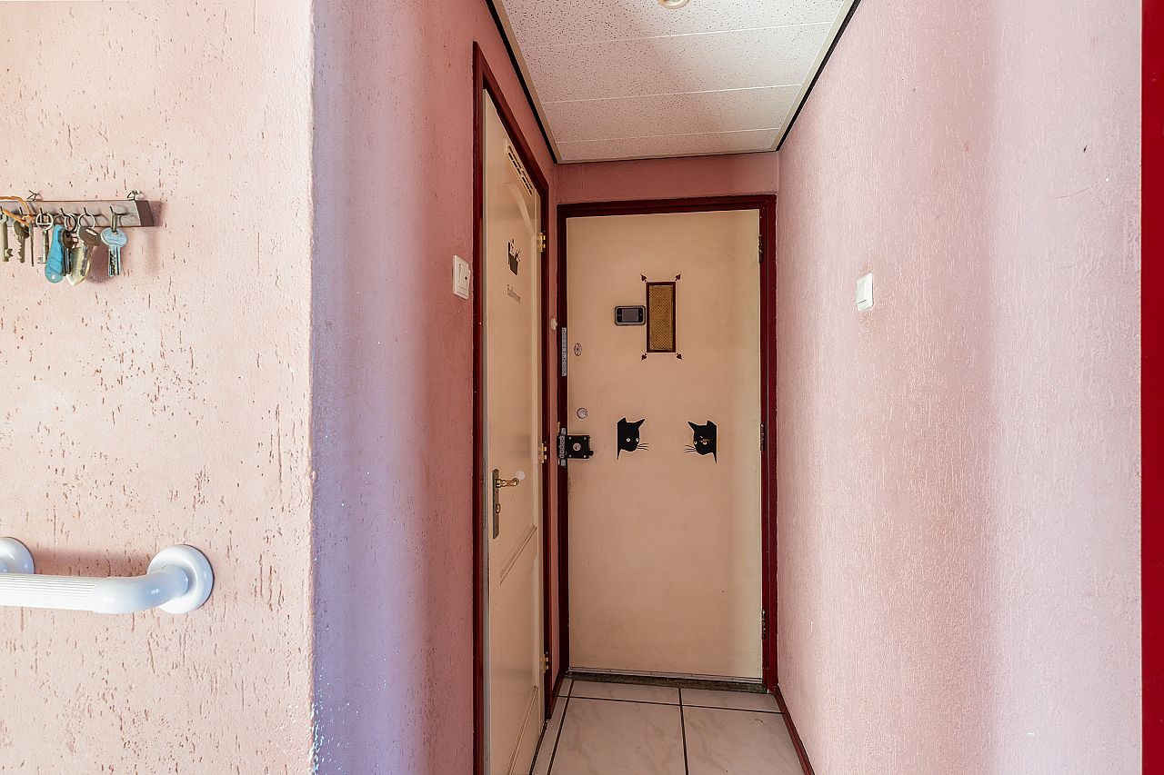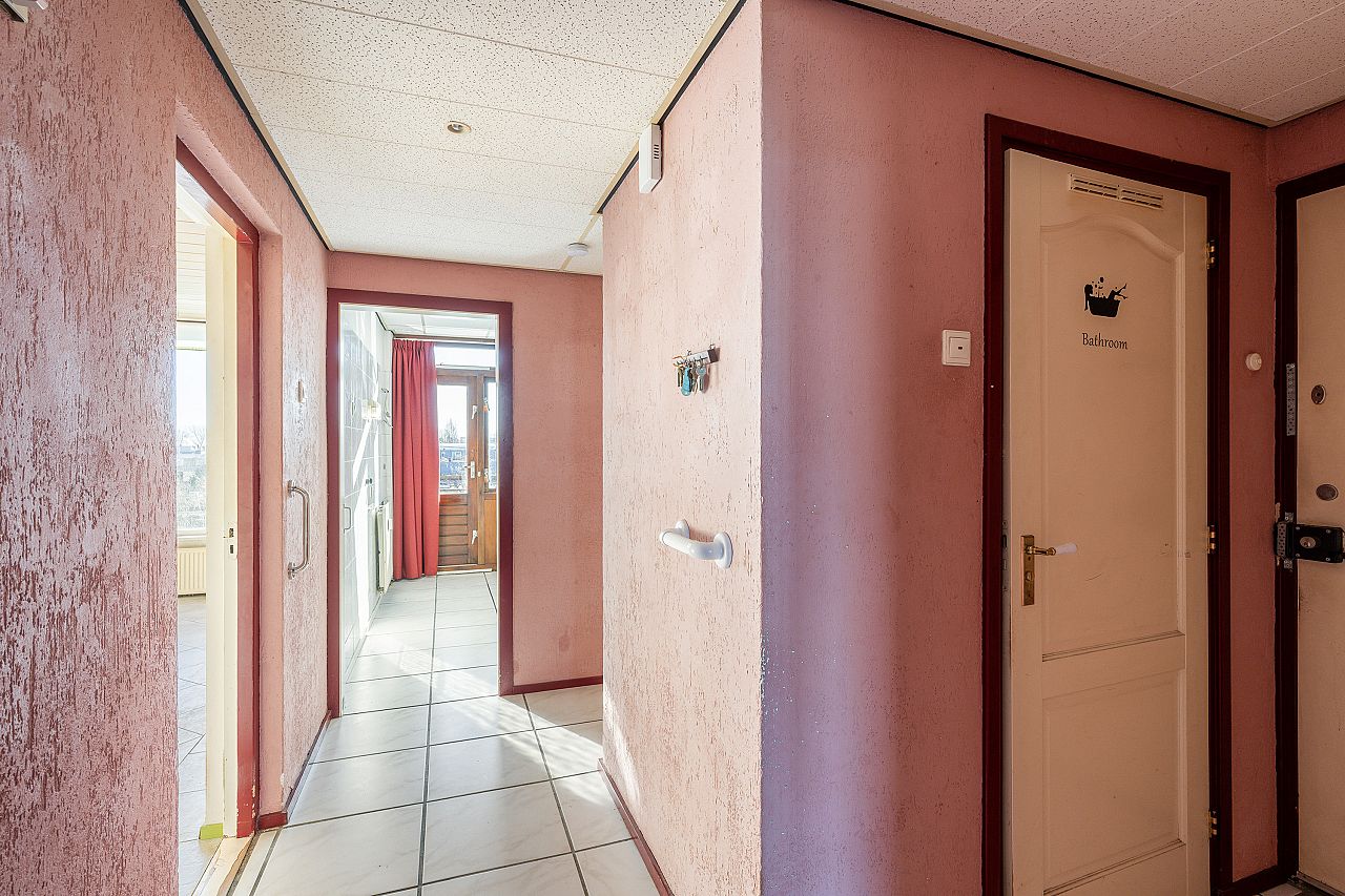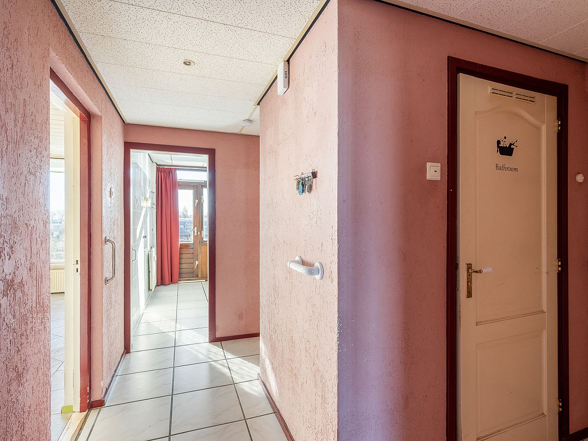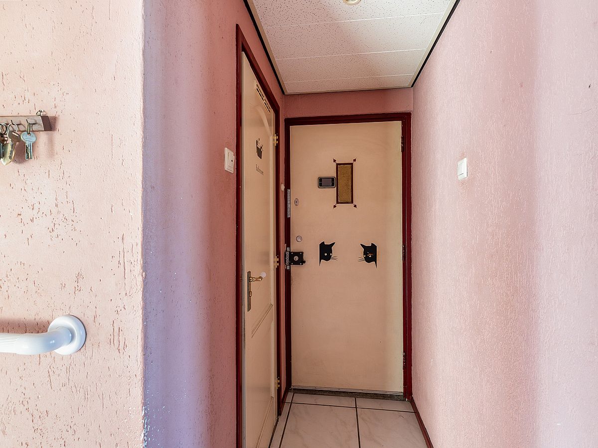 Meterkast op verdiepingsvloer; entree van de woning, voorzien van plavuizen; eenvoudige badkamer met douche, wastafel en wasmachineaansluiting; 1e slaapkamer aan voorzijde voorzien van hardhouten kozijnen met dubbel glas; keuken met koel/vriescombinatie (2025), gaskookplaat en afzuigkap; toegang tot balkon, op het zuiden gelegen en voorzien van zonwering; toilet met fonteintje; 2e slaapkamer aan achterzijde voorzien van laminaatvloer; woonkamer met heerlijk vrij uitzicht voorzien van plavuizen en hardhouten kozijnen met dubbel glas; 3e achterslaapkamer eveneens met plavuizen vloer en hardhouten kozijnen met dubbel glas.