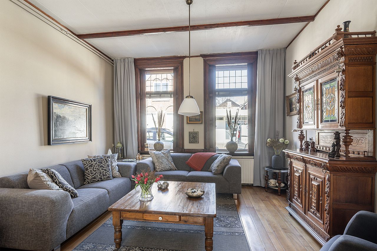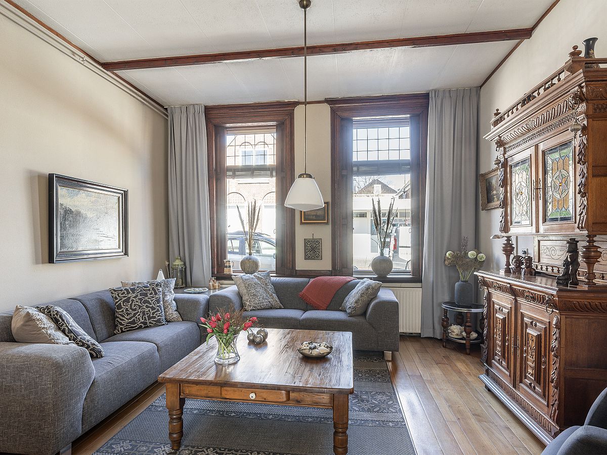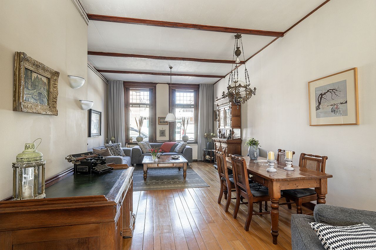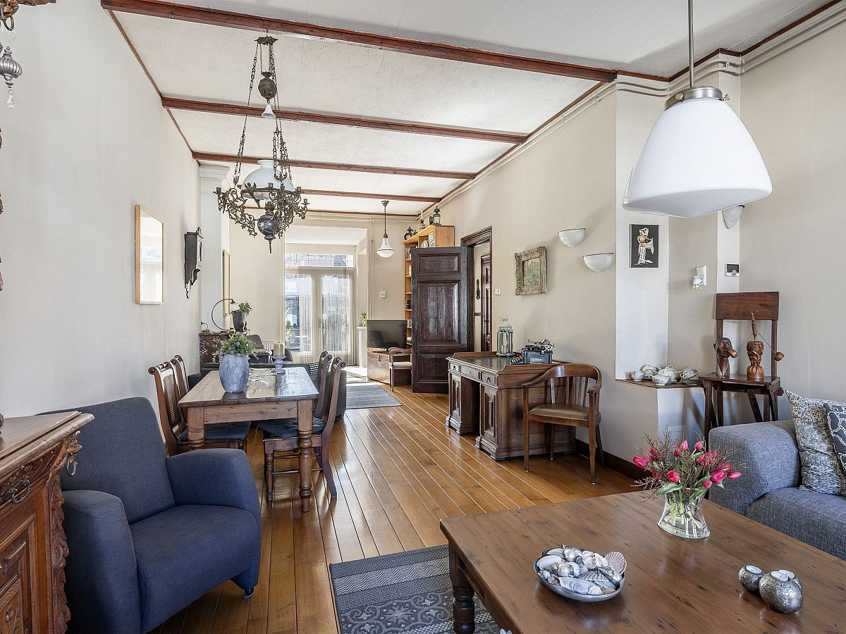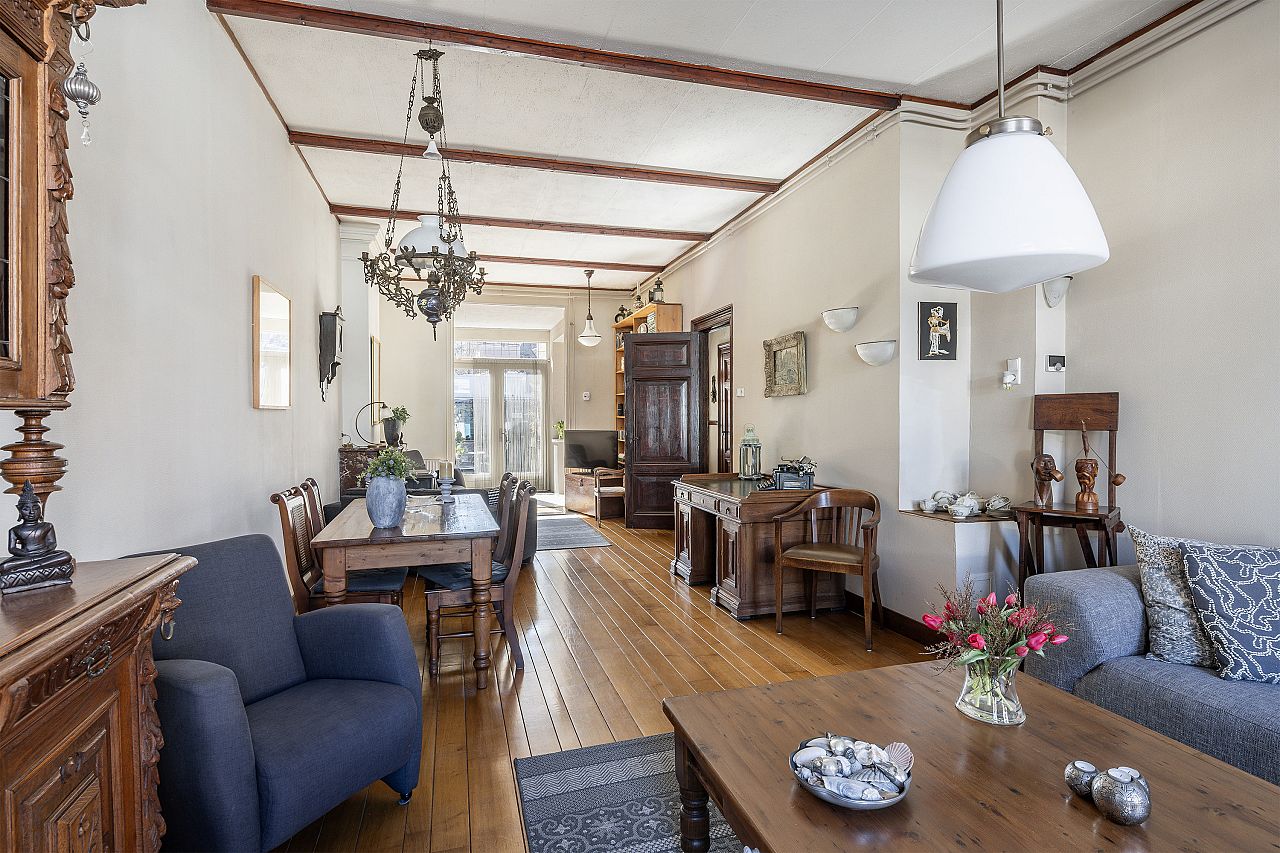 Uit 1898 komt deze sfeervolle hoekwoning. Een zeer ruime woonkamer met een heerlijke openhaard. In de tuin is het goed toeven, gezien de zeer zonnige ligging op het zuiden!