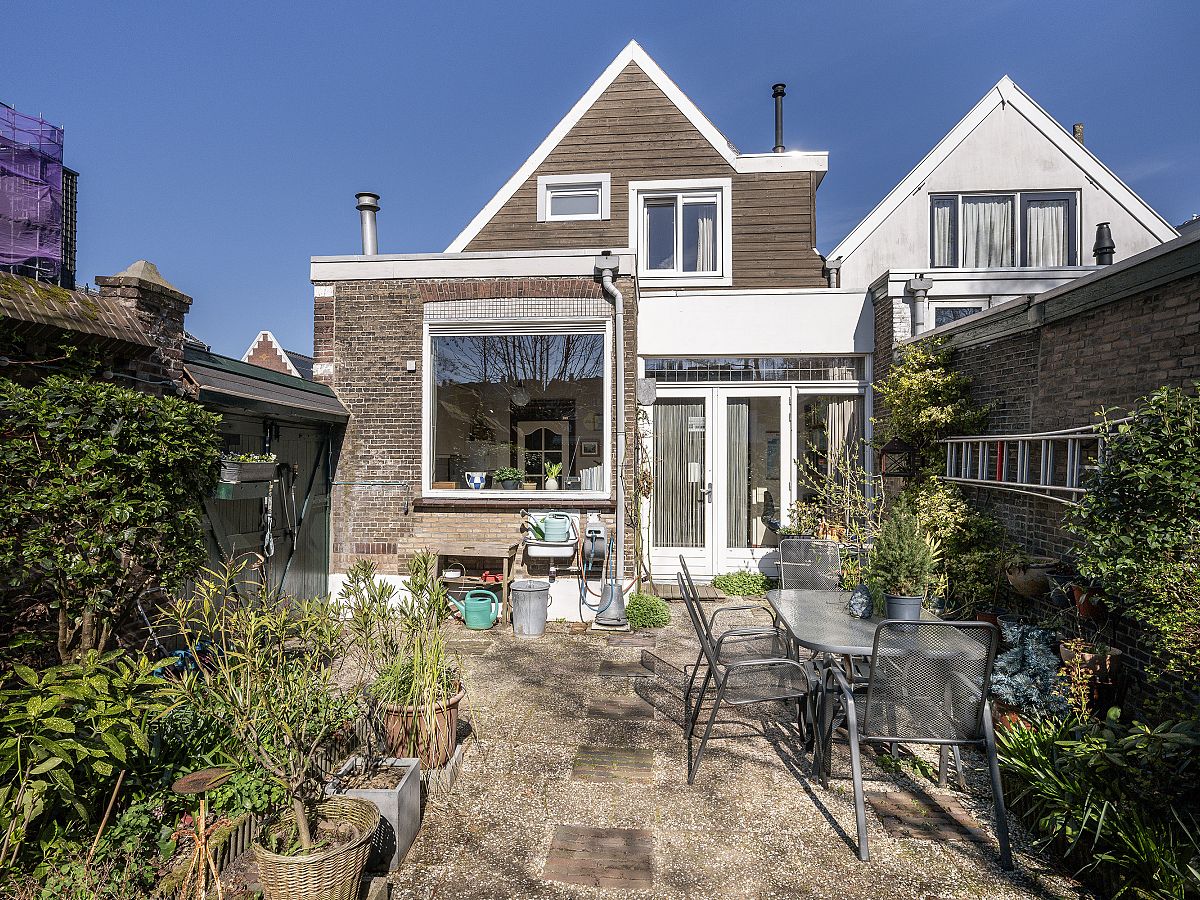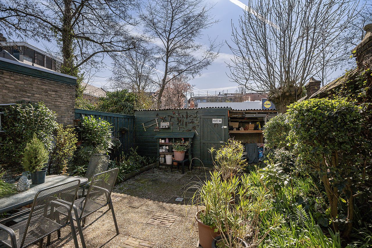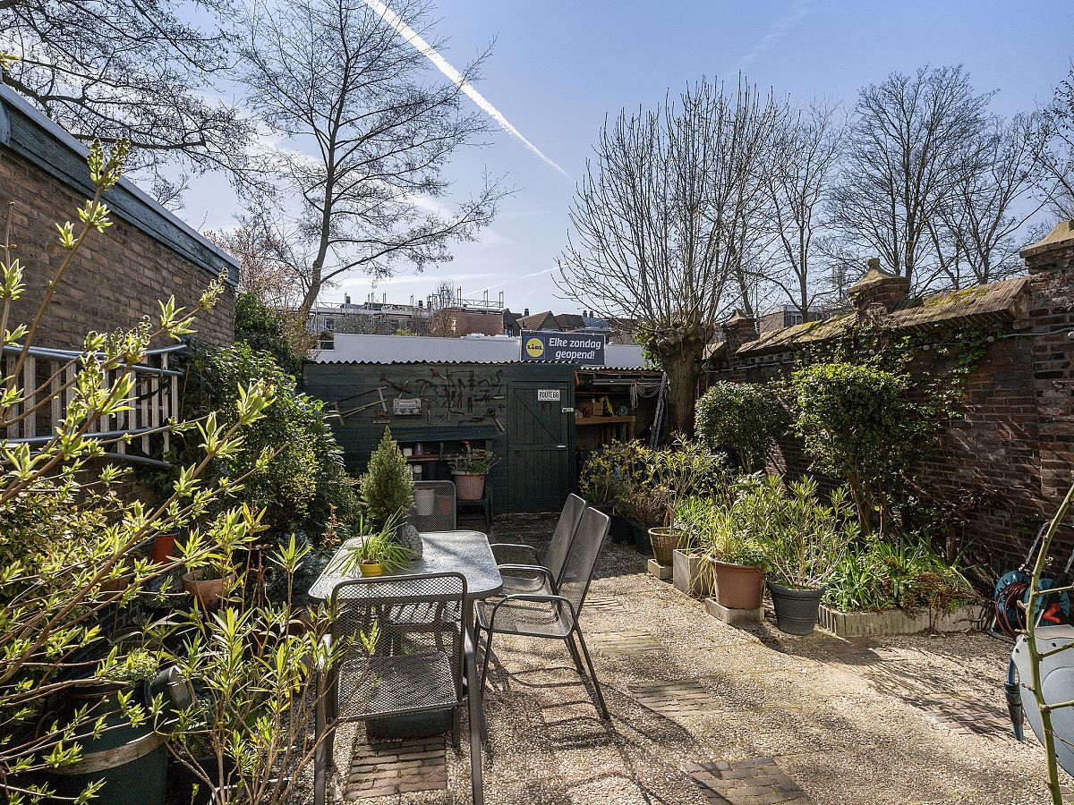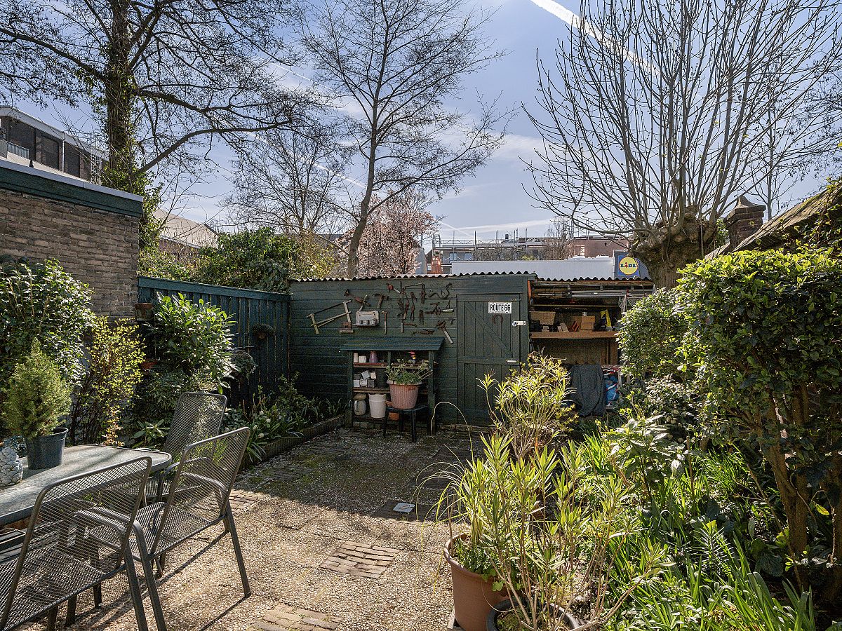 De achtertuin is zonnig en sfeervol. Via de dubbele deur aan de zijkant van de woning is het makkelijk een motor, aanhanger of iets dergelijks te plaatsen. Achterin de tuin staat een ruime schuur.