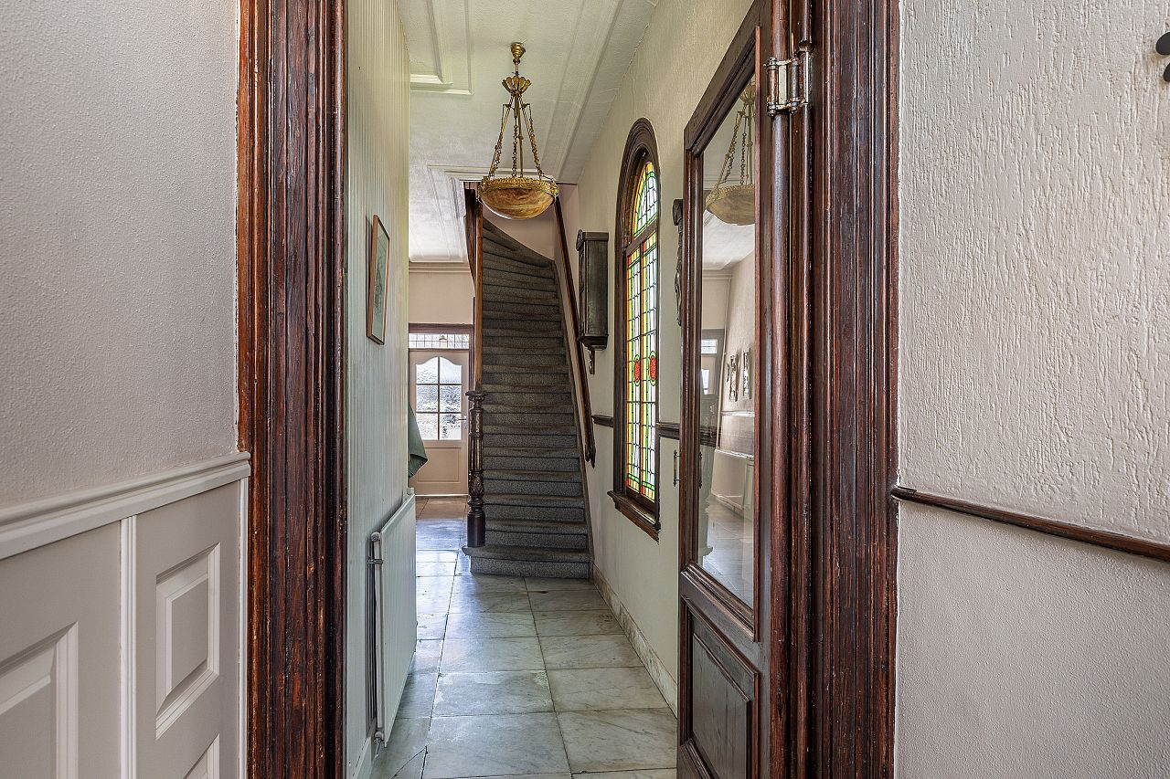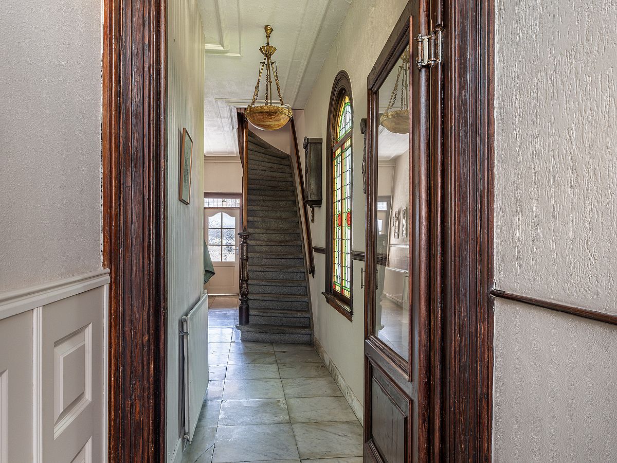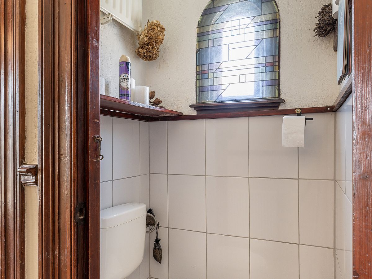 Entree met originele marmeren vloer; tochtportaal met taatsdeur; meterkast; trapkast. Toiletruimte met staand closet; kelderkast alwaar de cv ketel (Remeha).