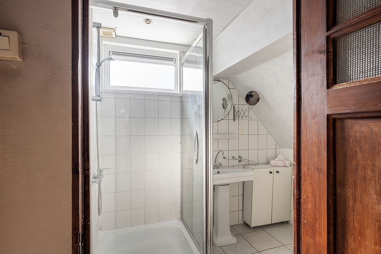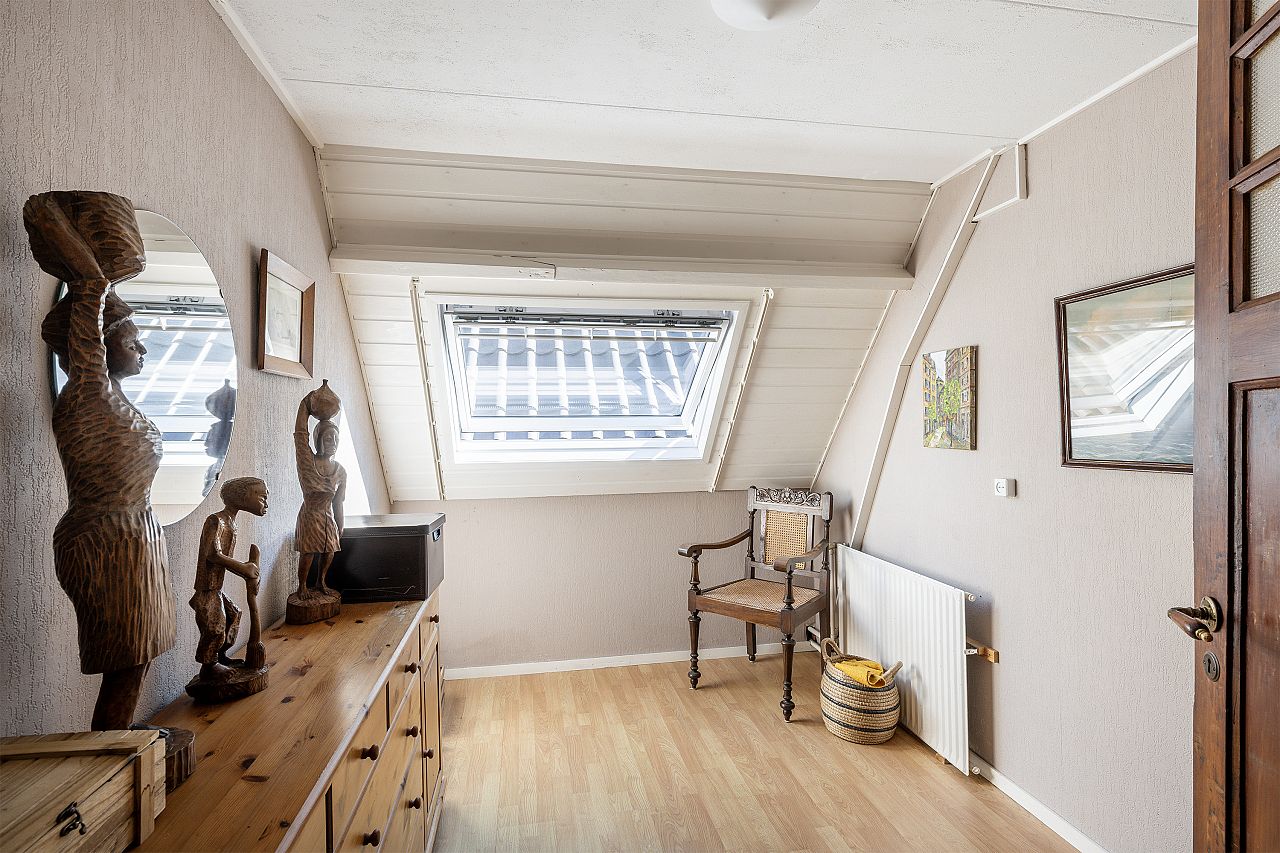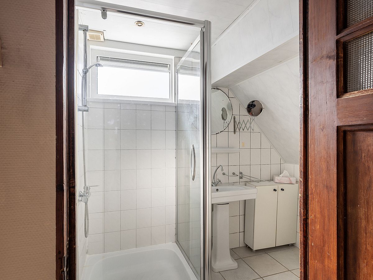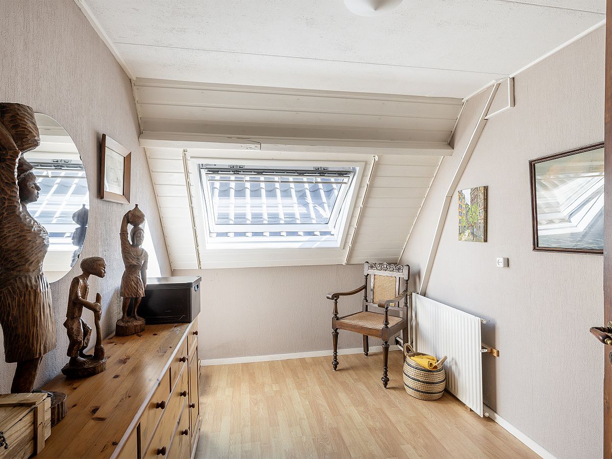 Overloop met schuifkastenwand en vaste kast; eenvoudige, geheel witte badkamer met douchehoek en wastafel. Achterslaapkamer voorzien van laminaatvloer en wastafel; 2e slaapkamer voorzien van Velux dakraam en laminaatvloer. Ruime bergkast.