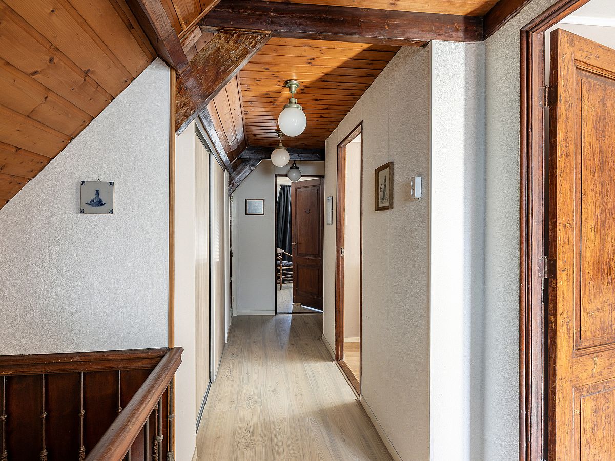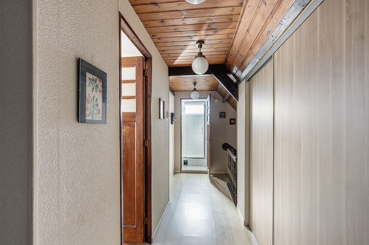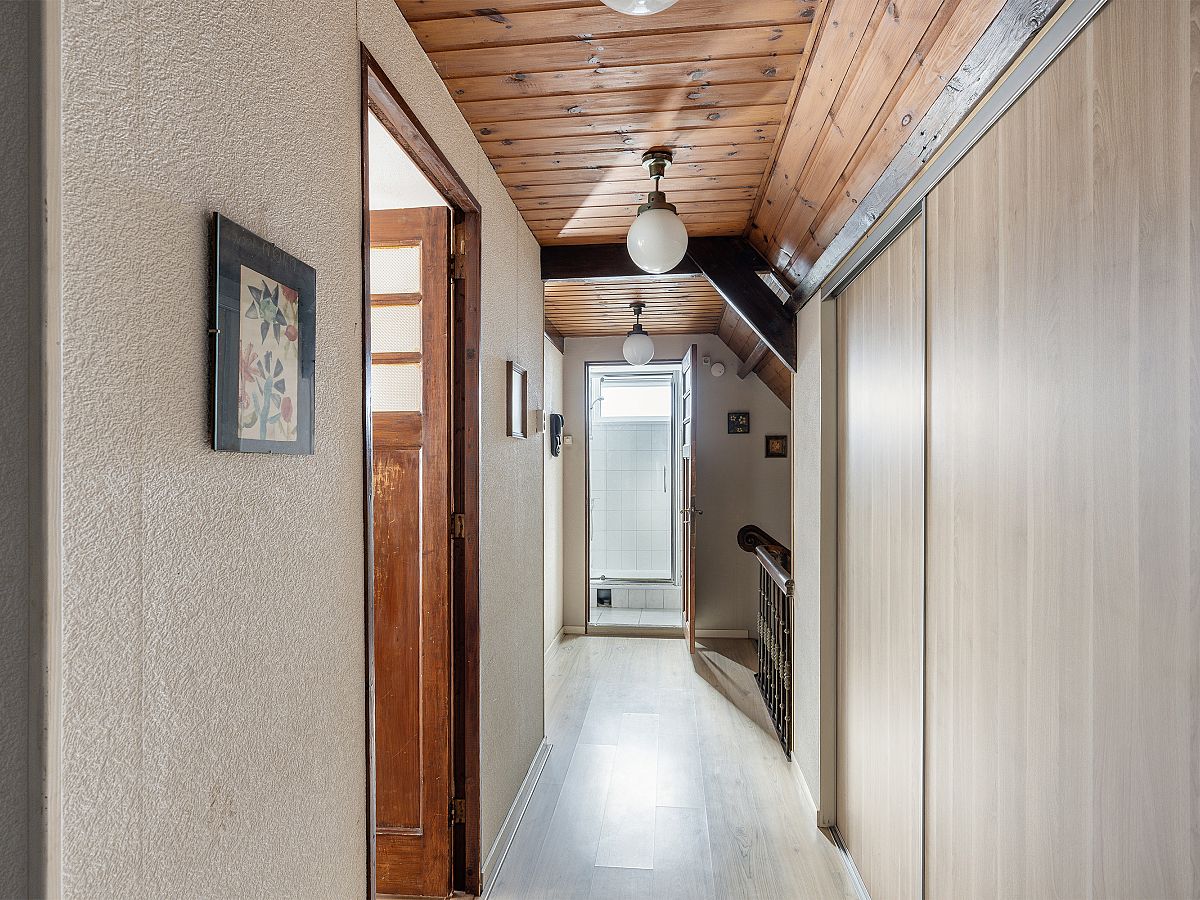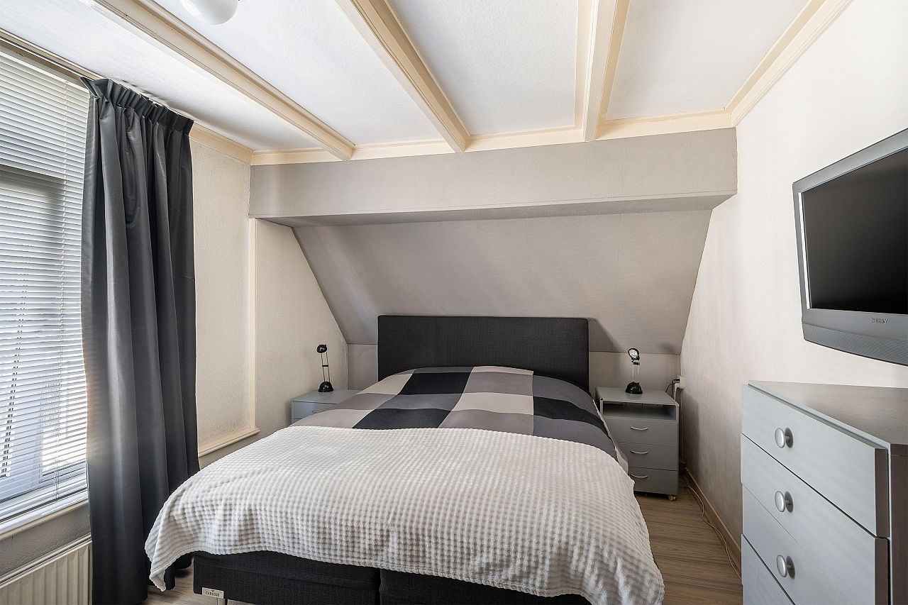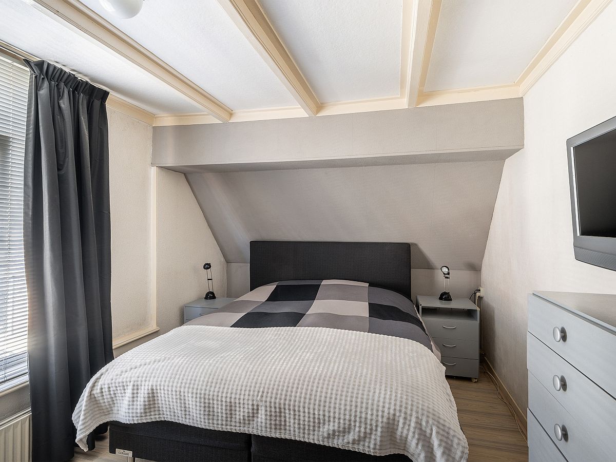 Overloop met schuifkastenwand en vaste kast; eenvoudige, geheel witte badkamer met douchehoek en wastafel. Achterslaapkamer voorzien van laminaatvloer en wastafel; 2e slaapkamer voorzien van Velux dakraam en laminaatvloer. Ruime bergkast.