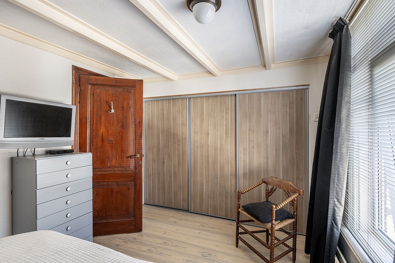 Voorslaapkamer voorzien van laminaatvloer en schuifkastenwand.