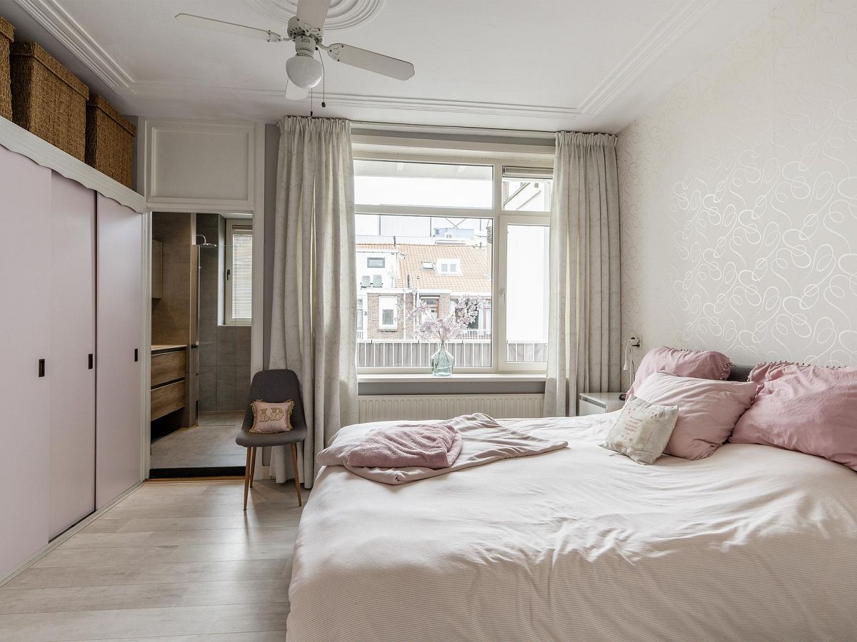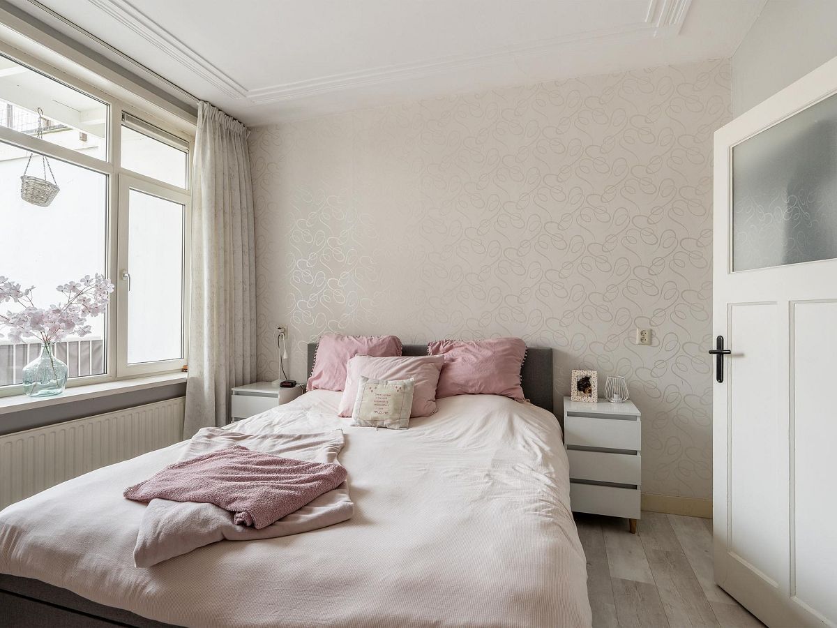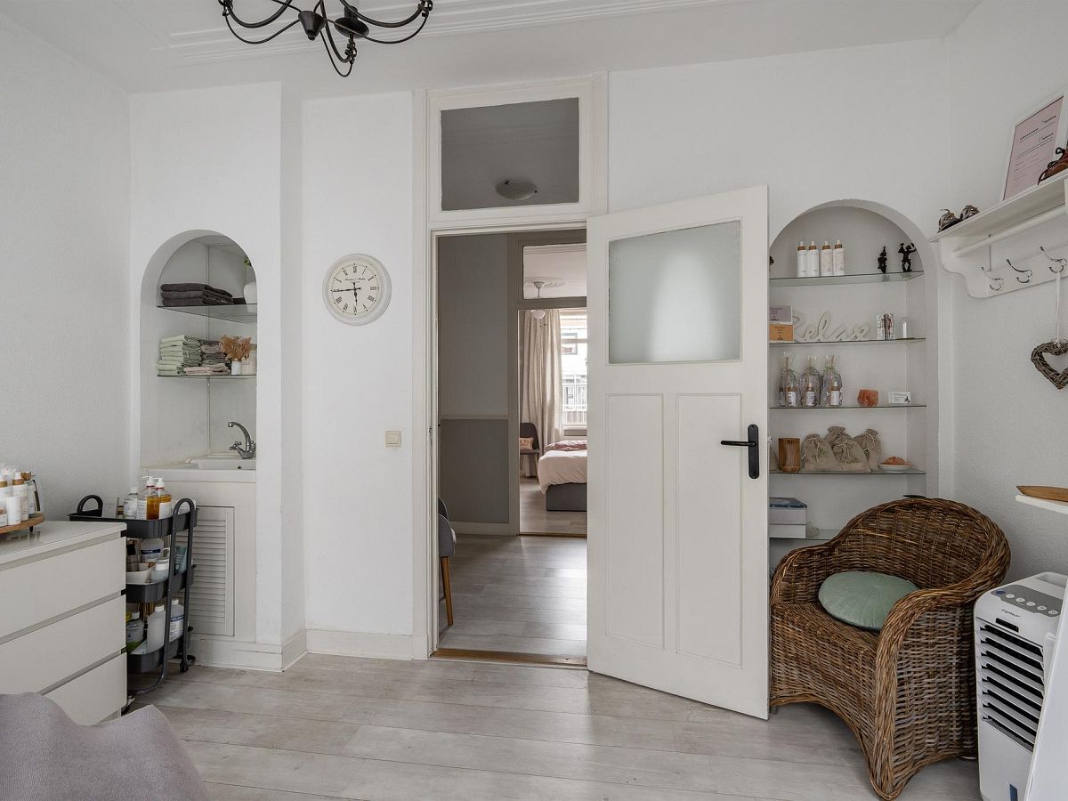 Voorkamer in gebruik als salon, voorzien van erker, kunststof kozijnen en dubbel glas, wastafel, laminaatvloer en vaste kast. Achterslaapkamer met schuifkastenwand met aansluiting voor de wasmachine/droger, laminaatvloer en toegang tot de badkamer. De badkamer is in 2020 vernieuwd en modern ingericht met inloopdouche, wastafelmeubel en toegang tot het balkon.