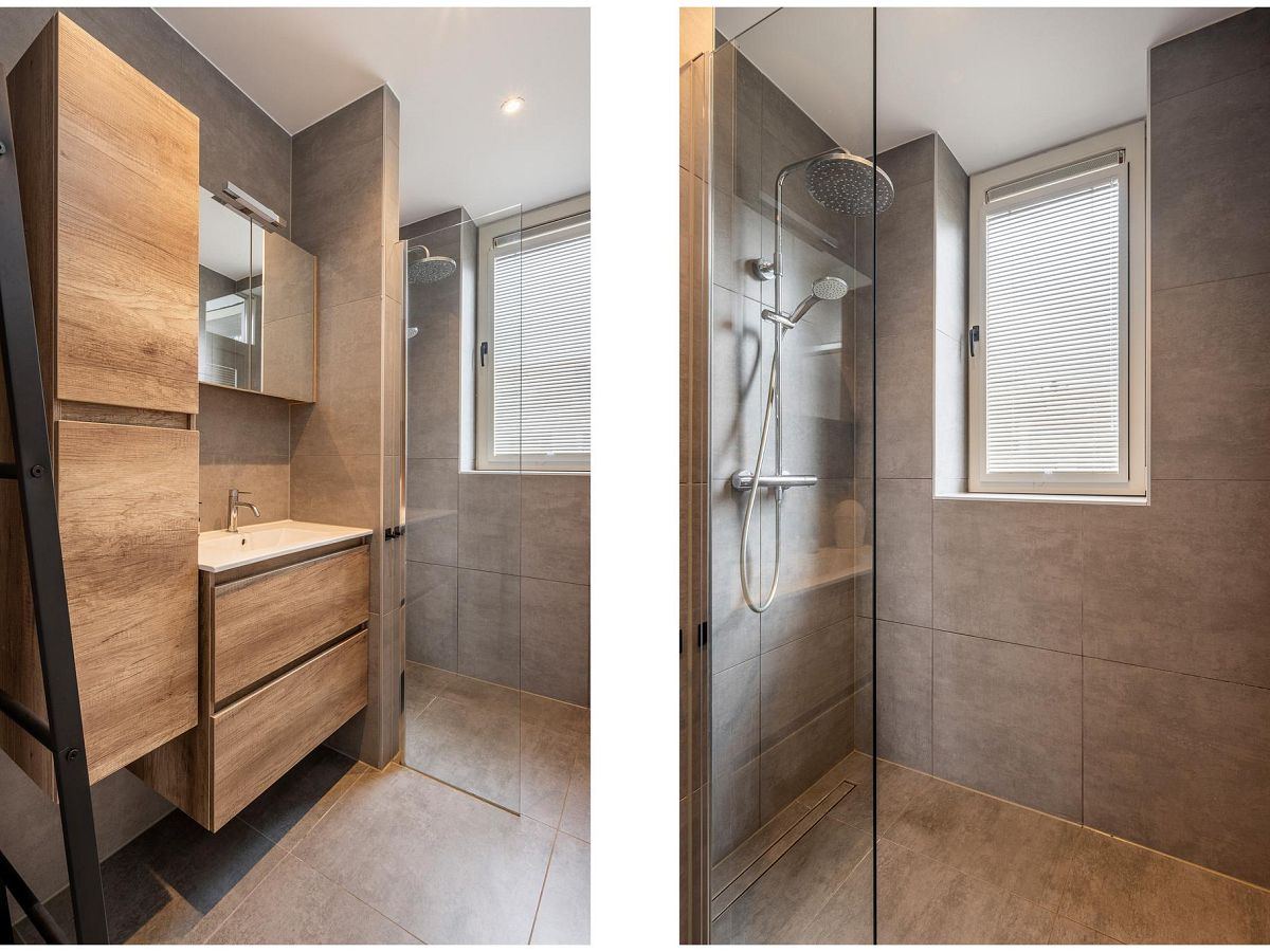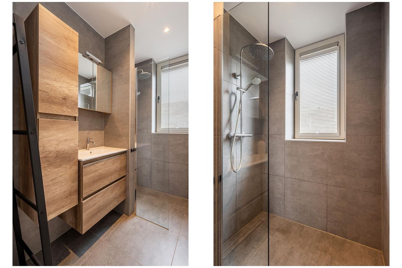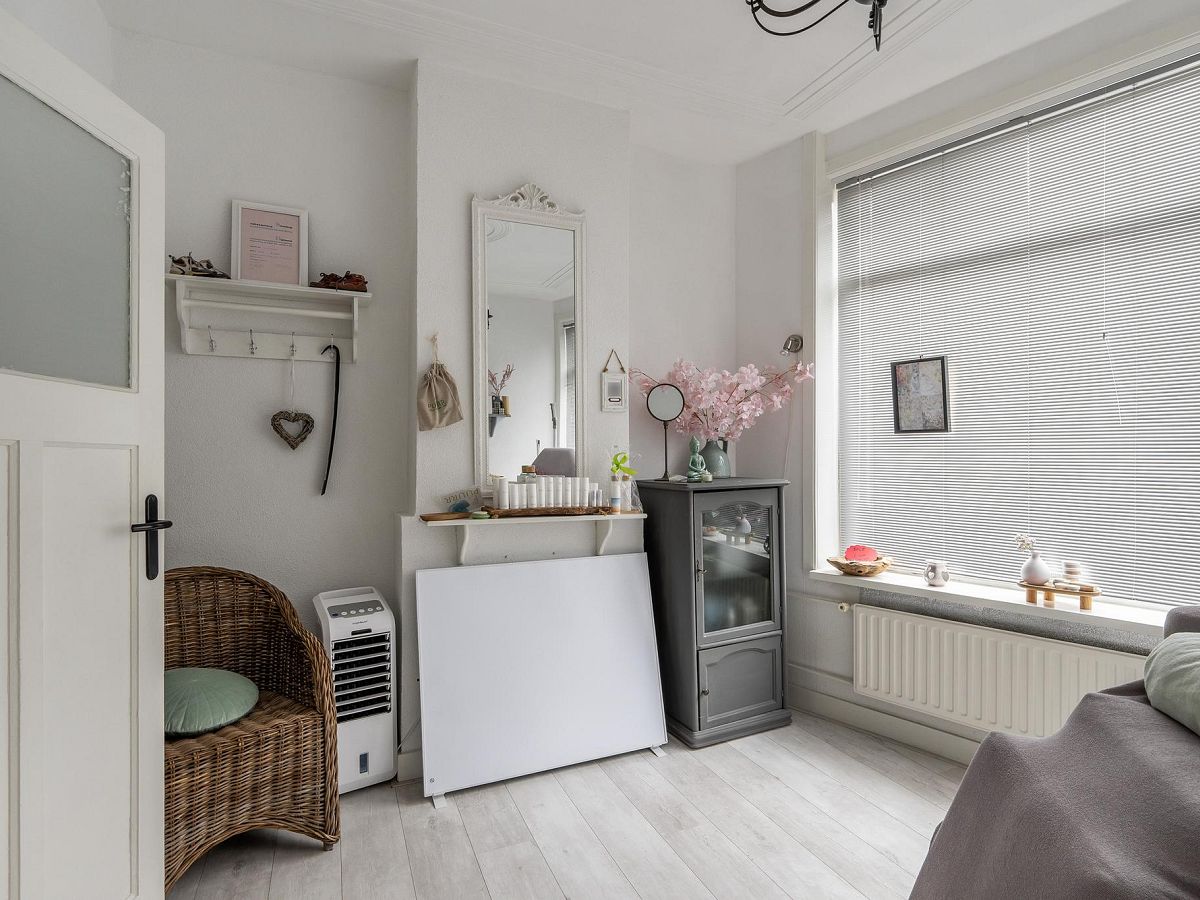 Voorkamer in gebruik als salon, voorzien van erker, kunststof kozijnen en dubbel glas, wastafel, laminaatvloer en vaste kast. Achterslaapkamer met schuifkastenwand met aansluiting voor de wasmachine/droger, laminaatvloer en toegang tot de badkamer. De badkamer is in 2020 vernieuwd en modern ingericht met inloopdouche, wastafelmeubel en toegang tot het balkon.