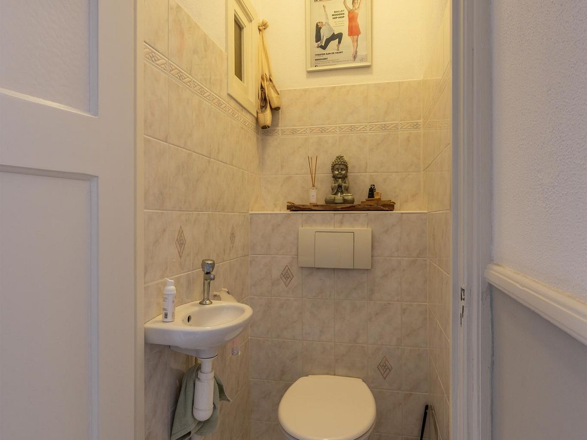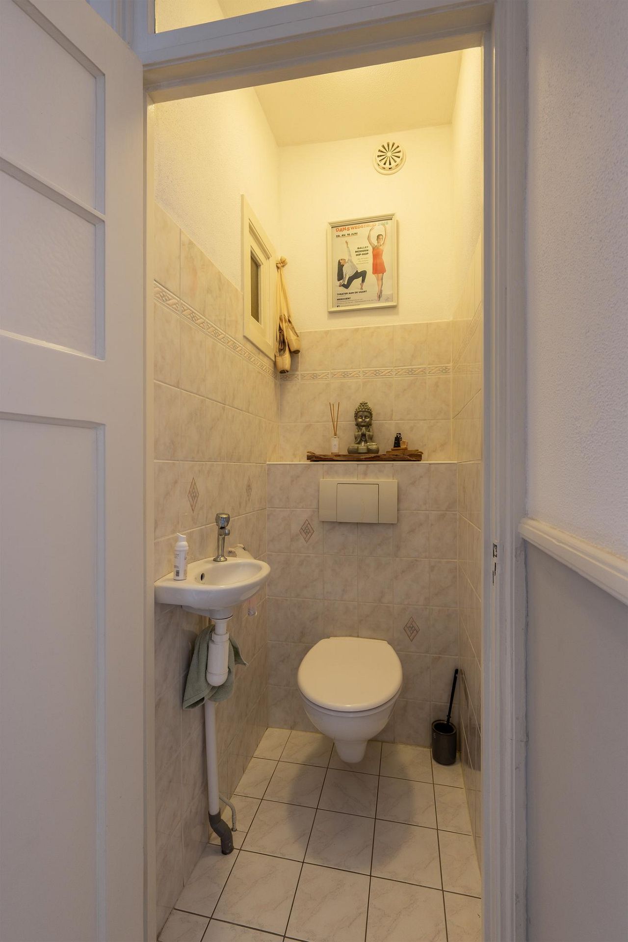 Via eigen buiten portiekopgang is deze verdieping bereikbaar. Tevens via vast trap vanuit de woonkamer. Overloop met laminaatvloer en apart 2e toilet.