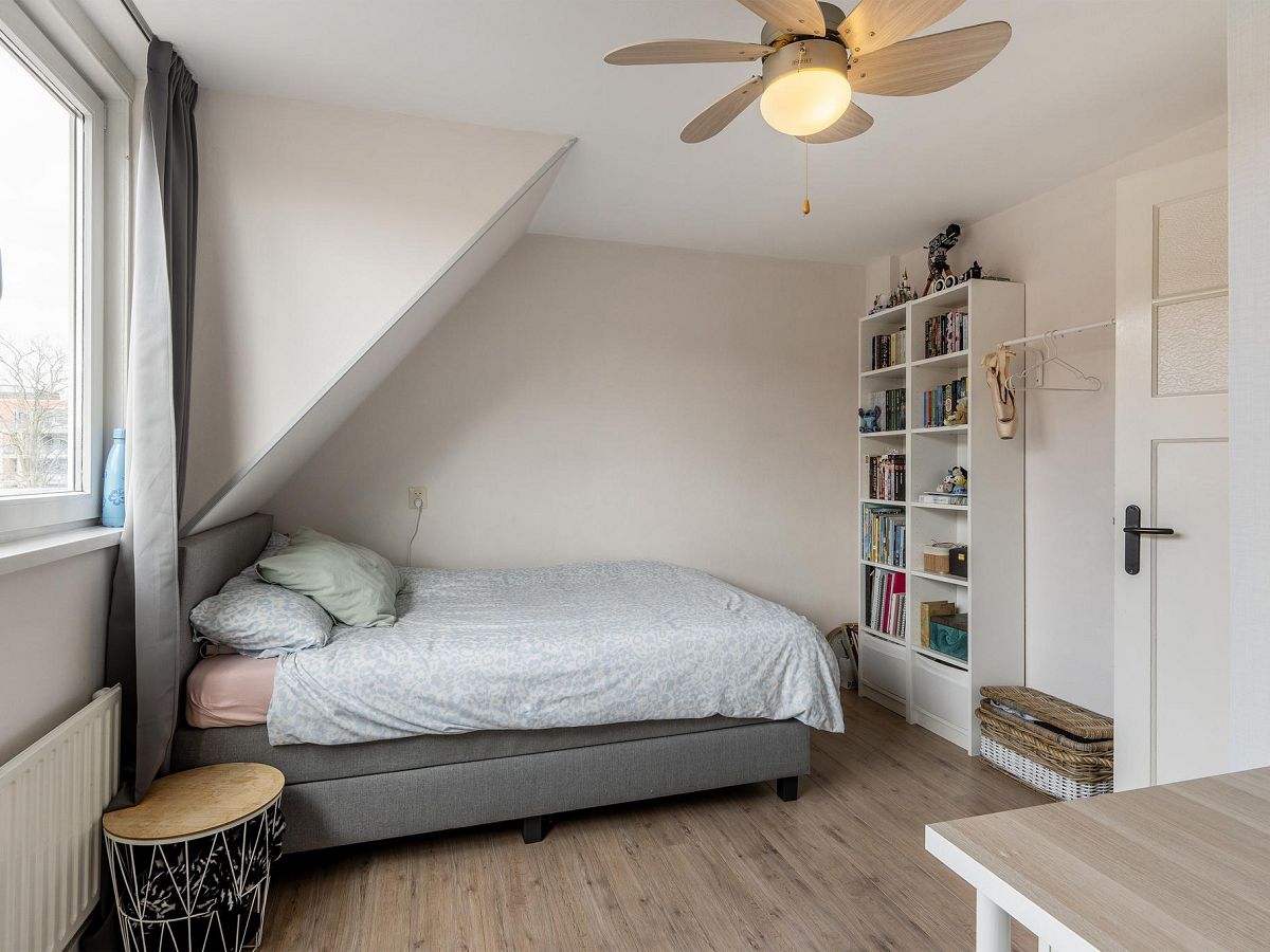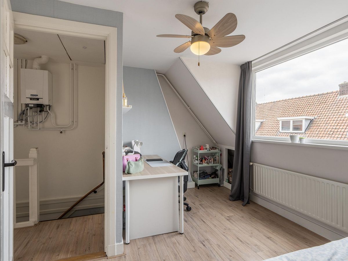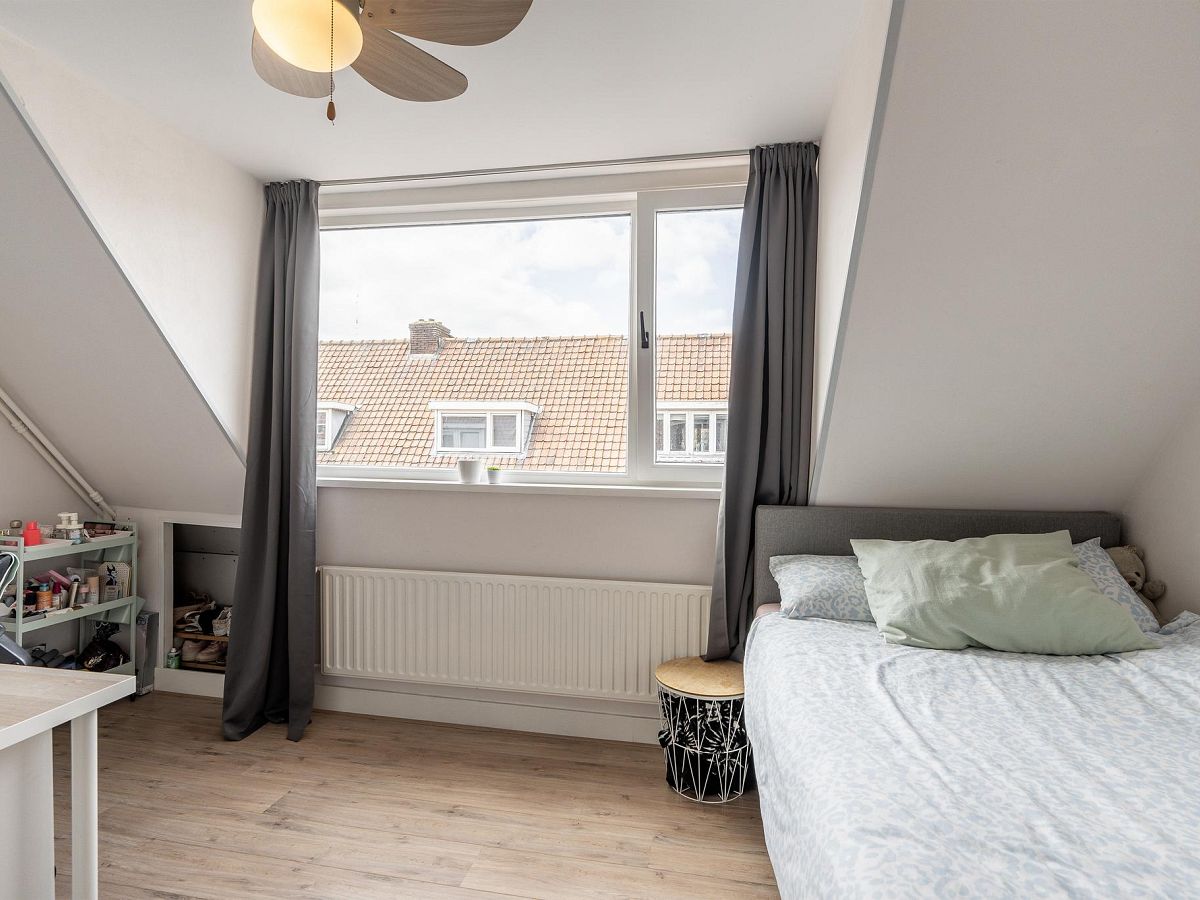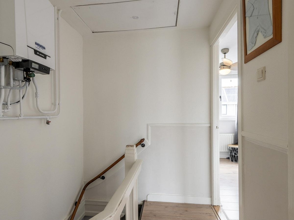 Overloop met de cv combiketel (2021). Voorslaapkamer met laminaatvloer, dakkapel, 1e achterslaapkamer met laminaatvloer. 2e ruime en lichte slaapkamer met openslaande deuren naar het dakterras.