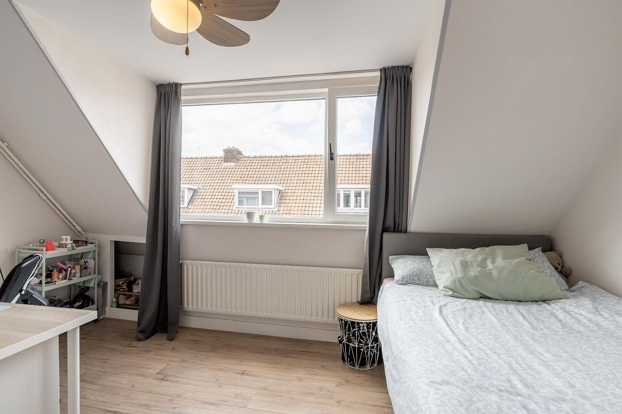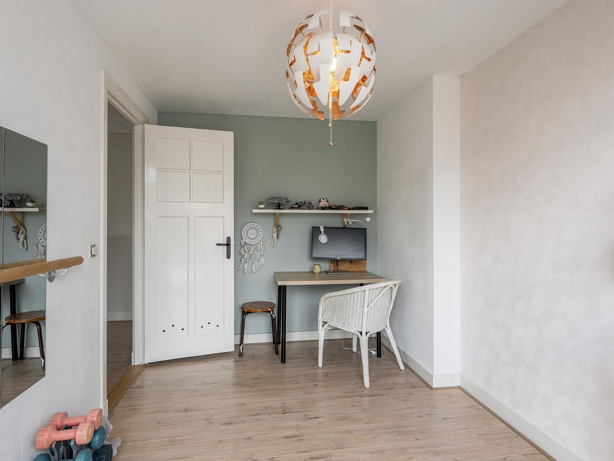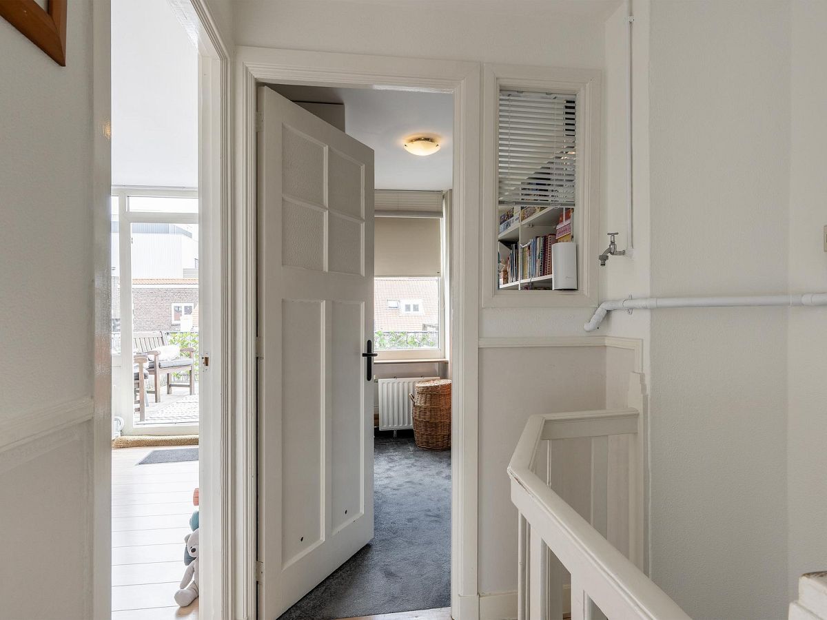 Overloop met de cv combiketel (2021). Voorslaapkamer met laminaatvloer, dakkapel, 1e achterslaapkamer met laminaatvloer. 2e ruime en lichte slaapkamer met openslaande deuren naar het dakterras.