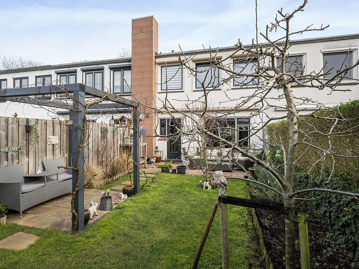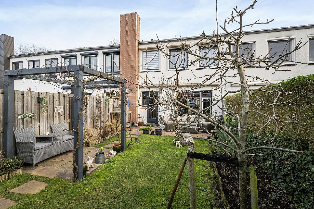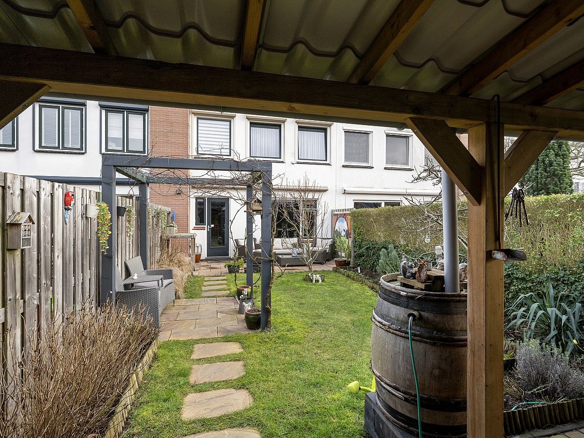 de zonnige achtertuin is ruim en op het zuidwesten gelegen. Voorzien van electrische zonwering; zeer ruime schuur met gezellig overkapping.