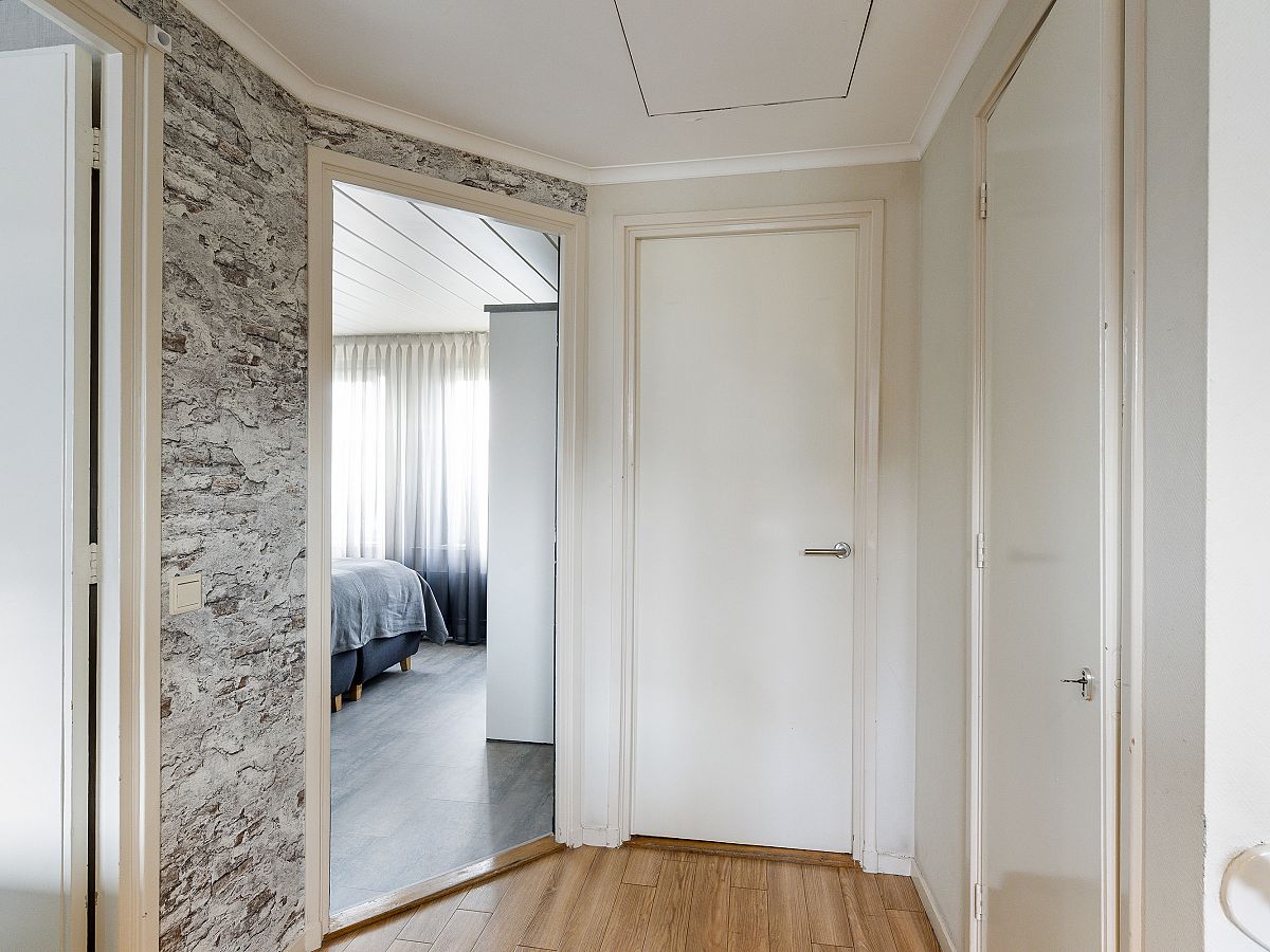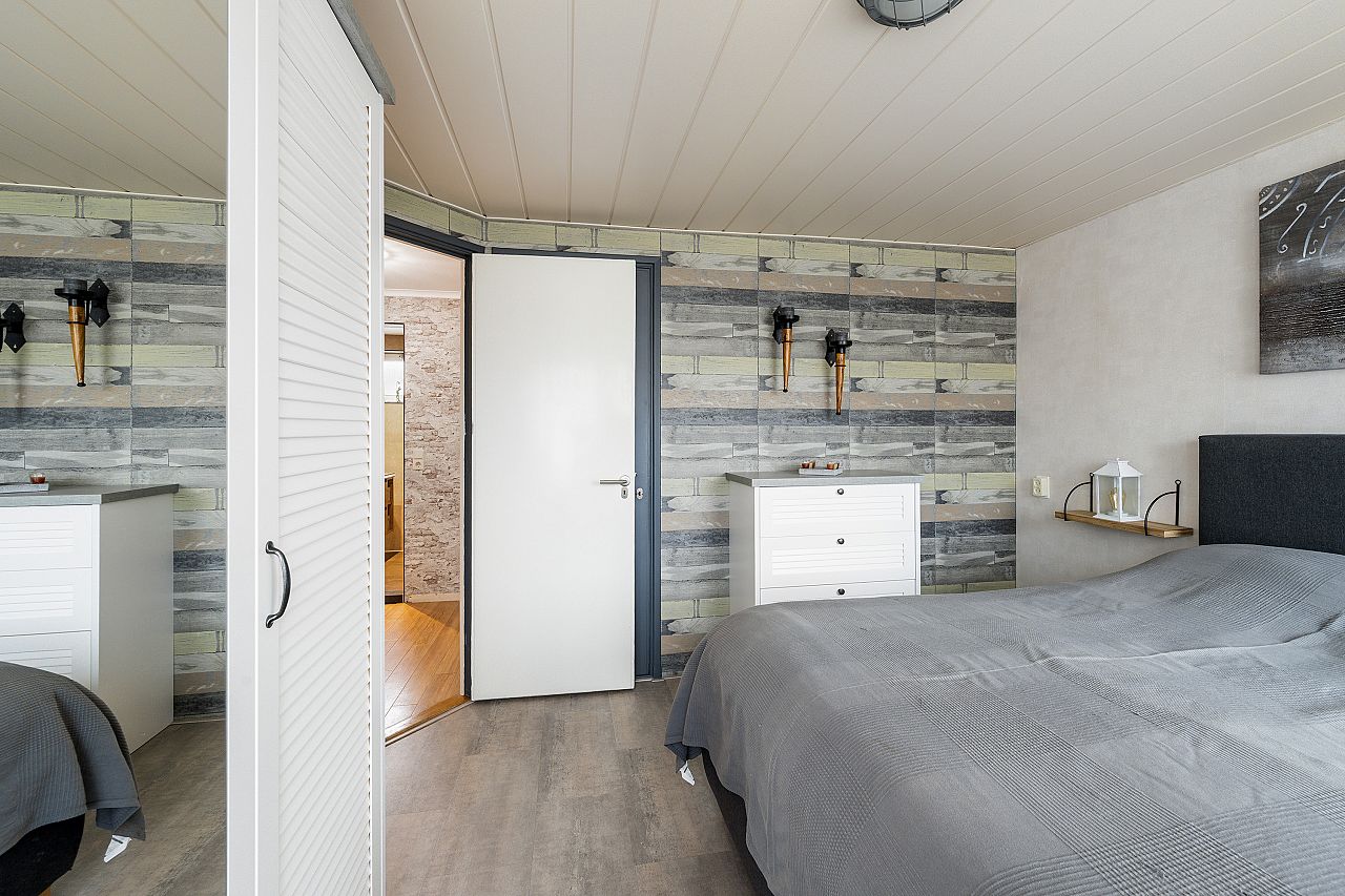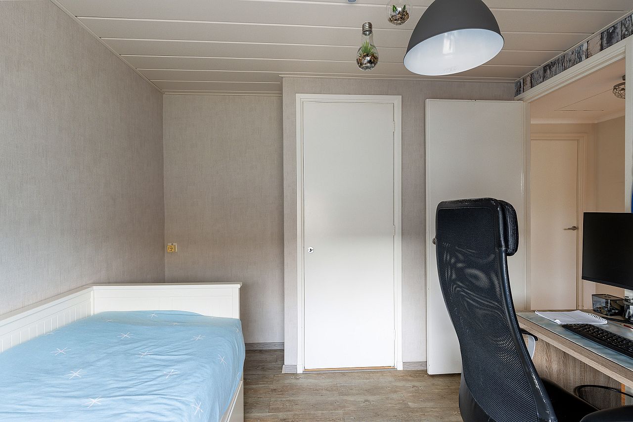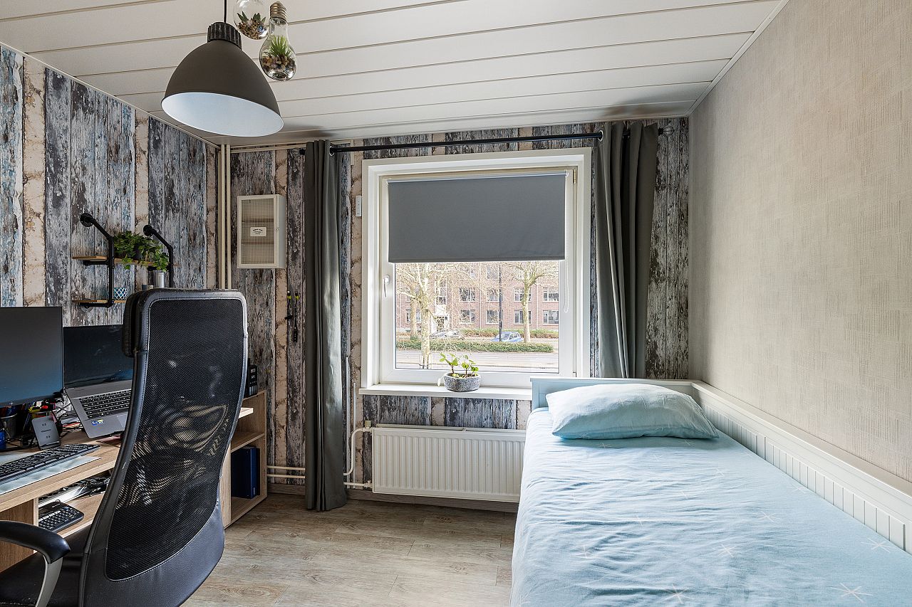 overloop met vaste kast alwaar de wasmachine aansluiting en de cv combiketel (Vaillant 2013); de badkamer is licht met vloerverwarming en voorzien van douchehoek, badkamermeubel, 2e toilet, inbouwspots en in 2025 vernieuwd; voorslaapkamer in gebruik als werkkamer; achter/ouderslaapkamer en 2e achterslaapkamer met vaste kast; deze verdieping is geheel voorzien van pvc laminaatvloeren, kunststof kozijnen met dubbel glas en electrische rolluiken.