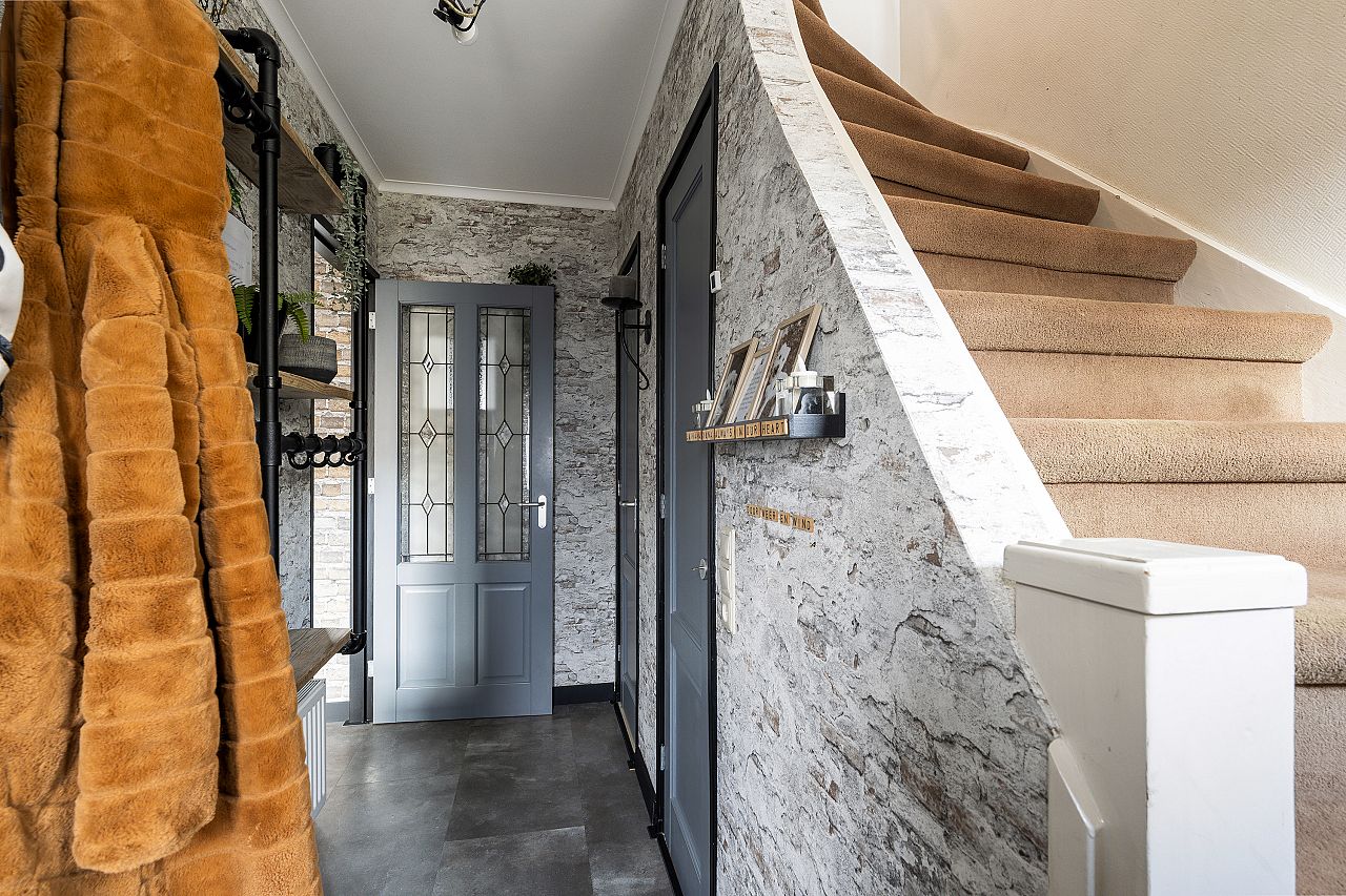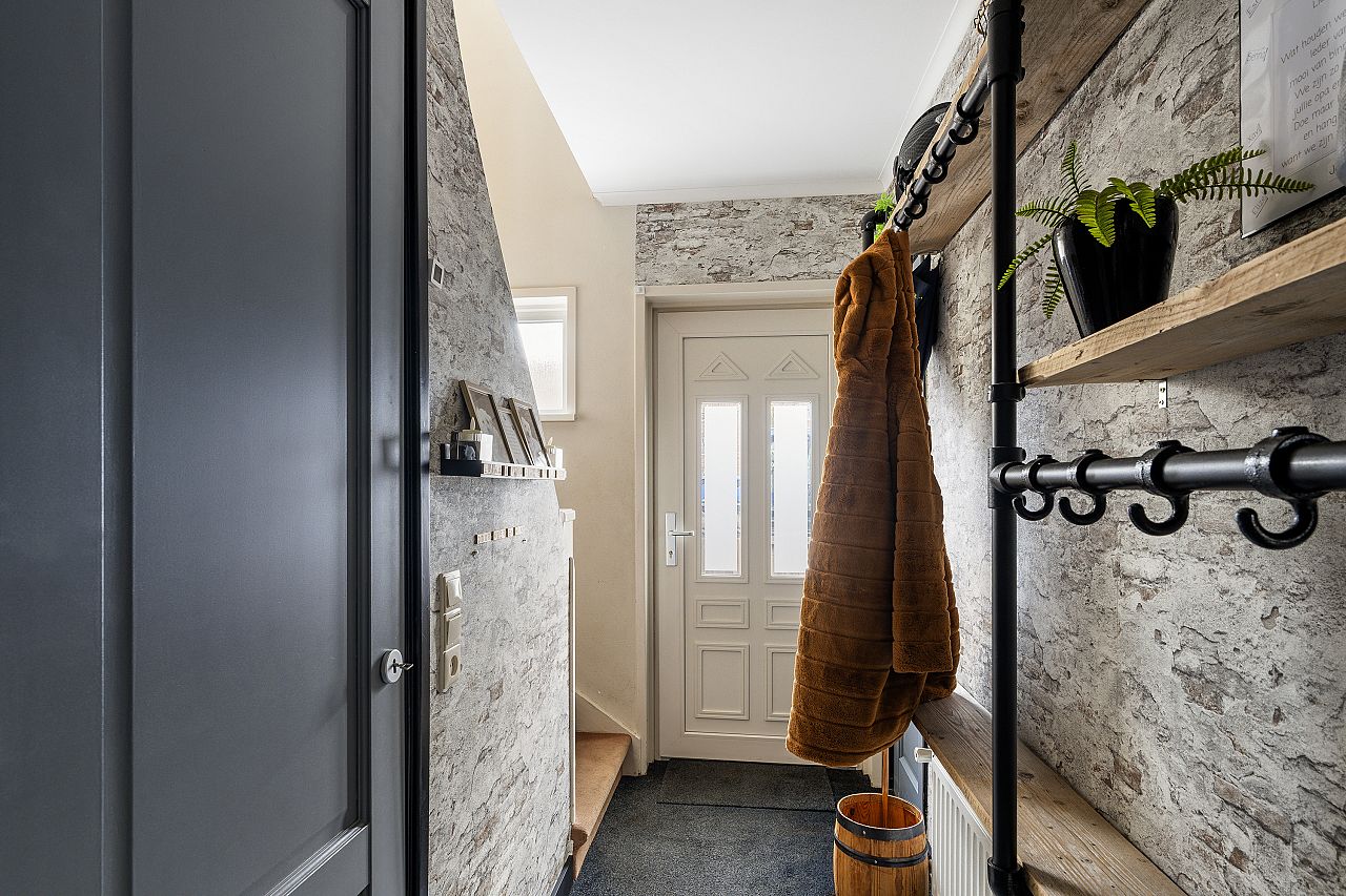 via de voortuin bereik je de entree van de woning; entree; gang; meterkast (vernieuwd en 9 groepen); trapkast; vernieuwde toiletruimte met zwevend toilet; woonkamer voorzien van pvc plavuizenlook; de keuken is het meest bijzondere van deze woning. Met een kookeiland en geintegreerde eettafel eraan vast, maar het speciaal. De keuken is in 2022/2023 geplaatst en voorzien van inductiekookplaat met geintegreerde afzuiging, wijnkoelkast, koelkast, combioven, en vaatwasser; toegang tot de tuin.