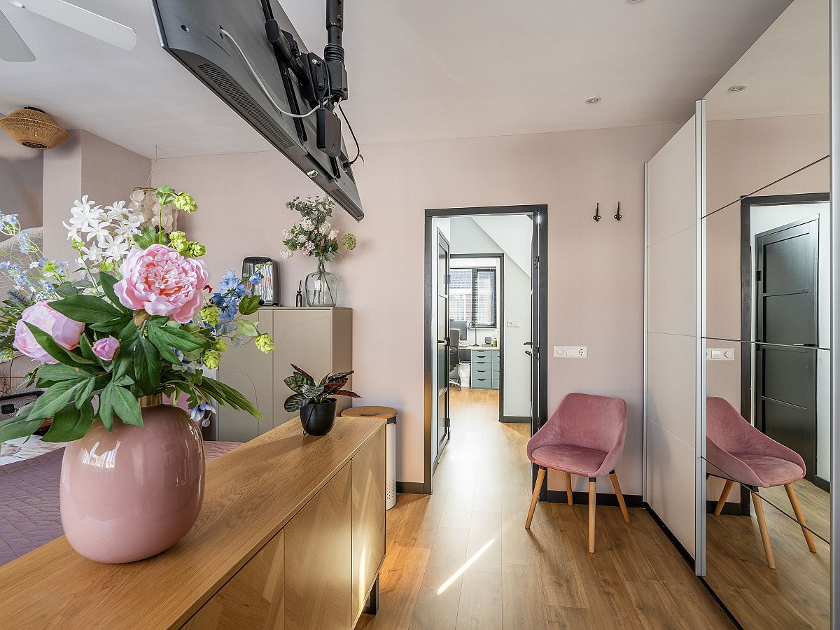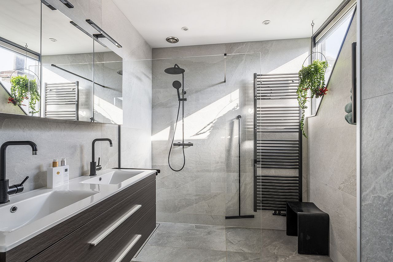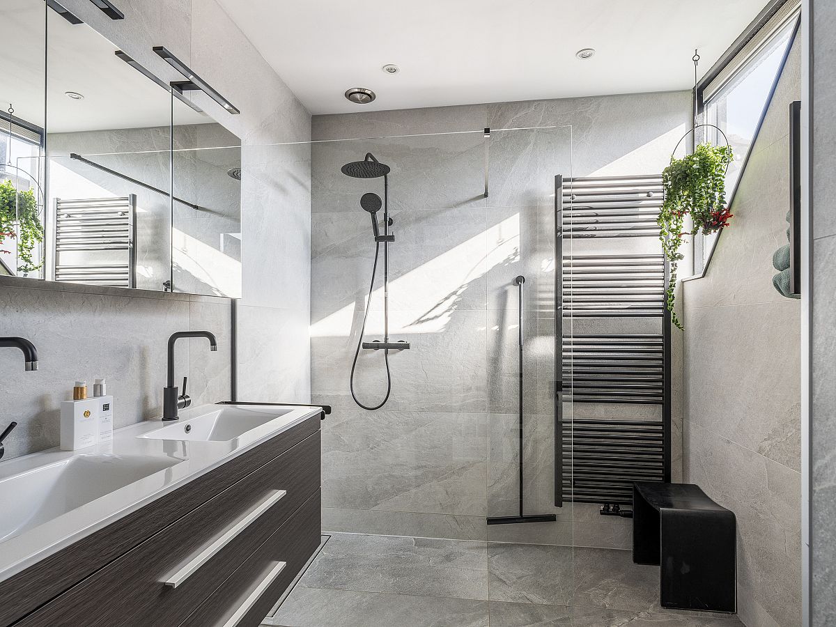 - Alle wanden zijn glad en strak afgewerkt, de begane grond is voorzien van vloerverwarming