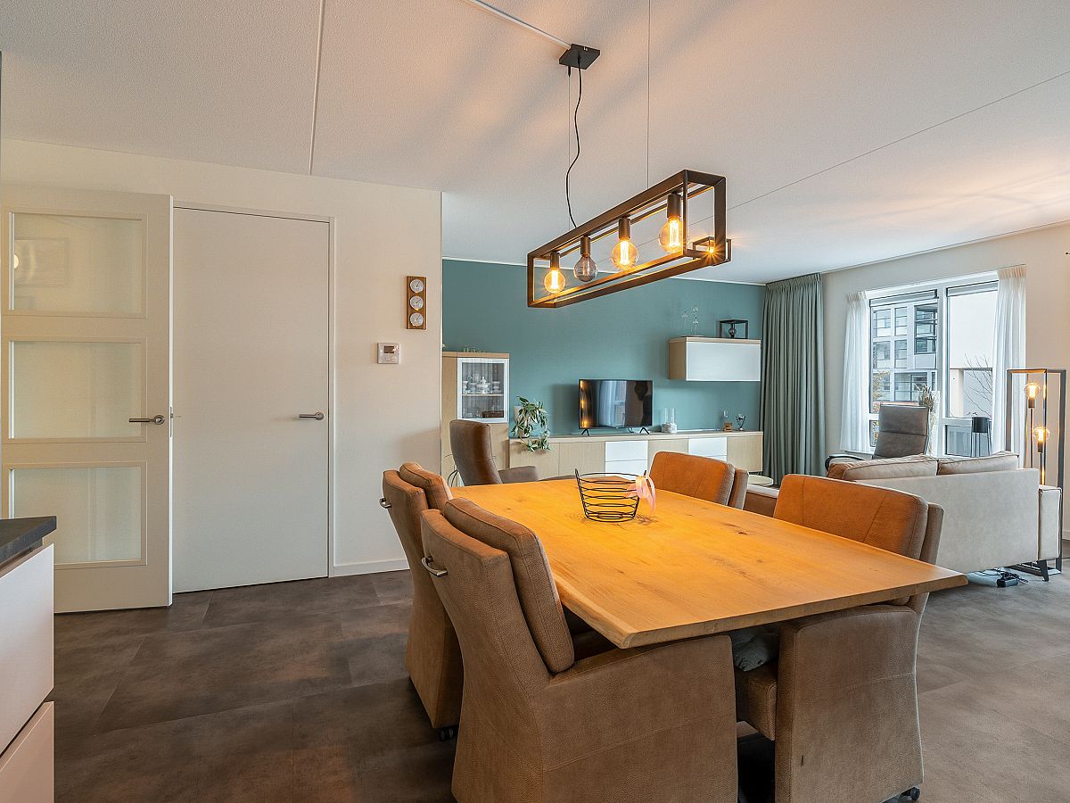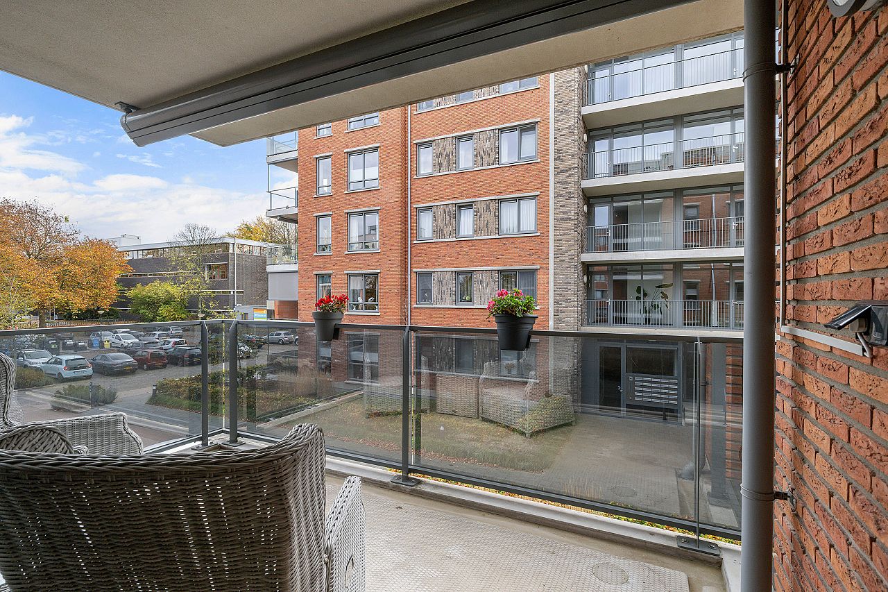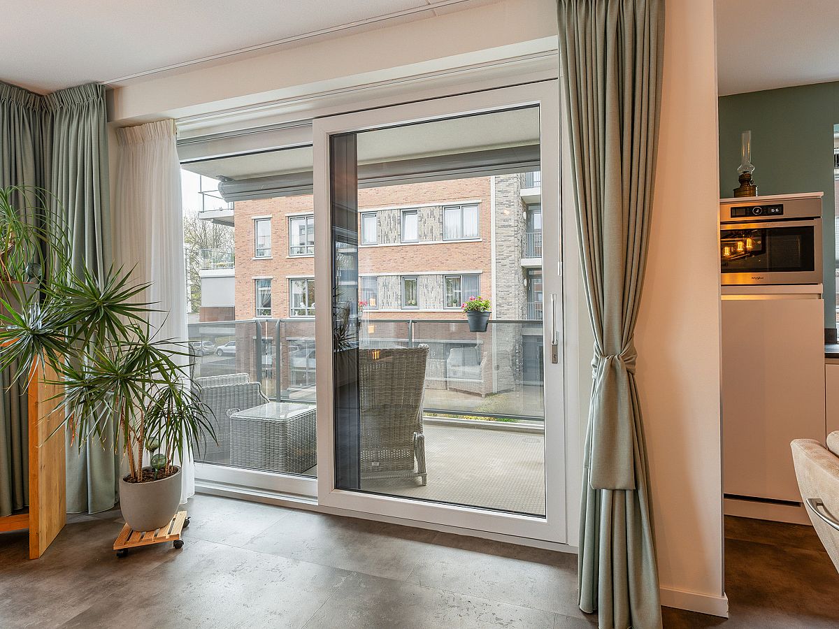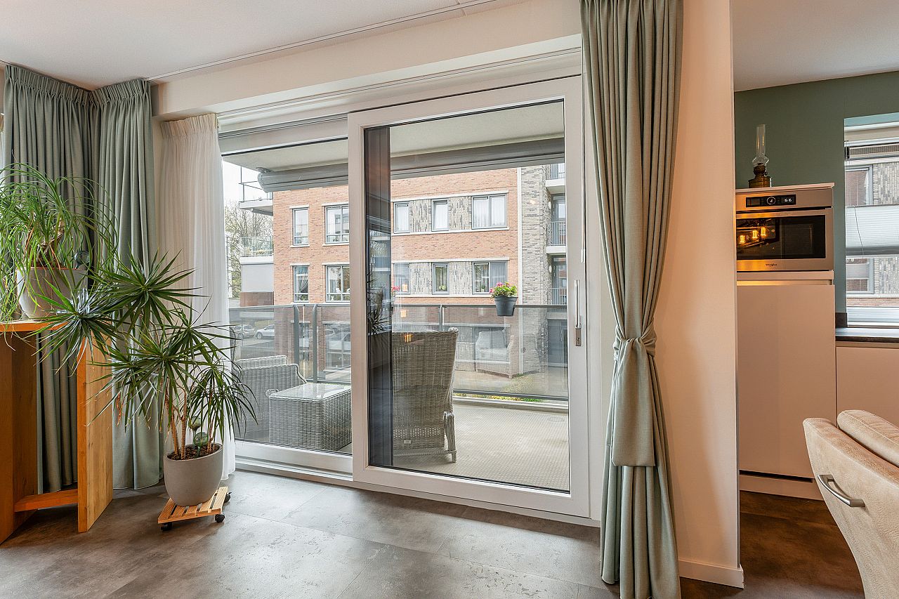 Via een schuifpui vanuit de woonkamer is het balkon van ca. 9 m² bereikbaar. De woonkamer heeft horren, screens en een elektrisch zonnescherm.