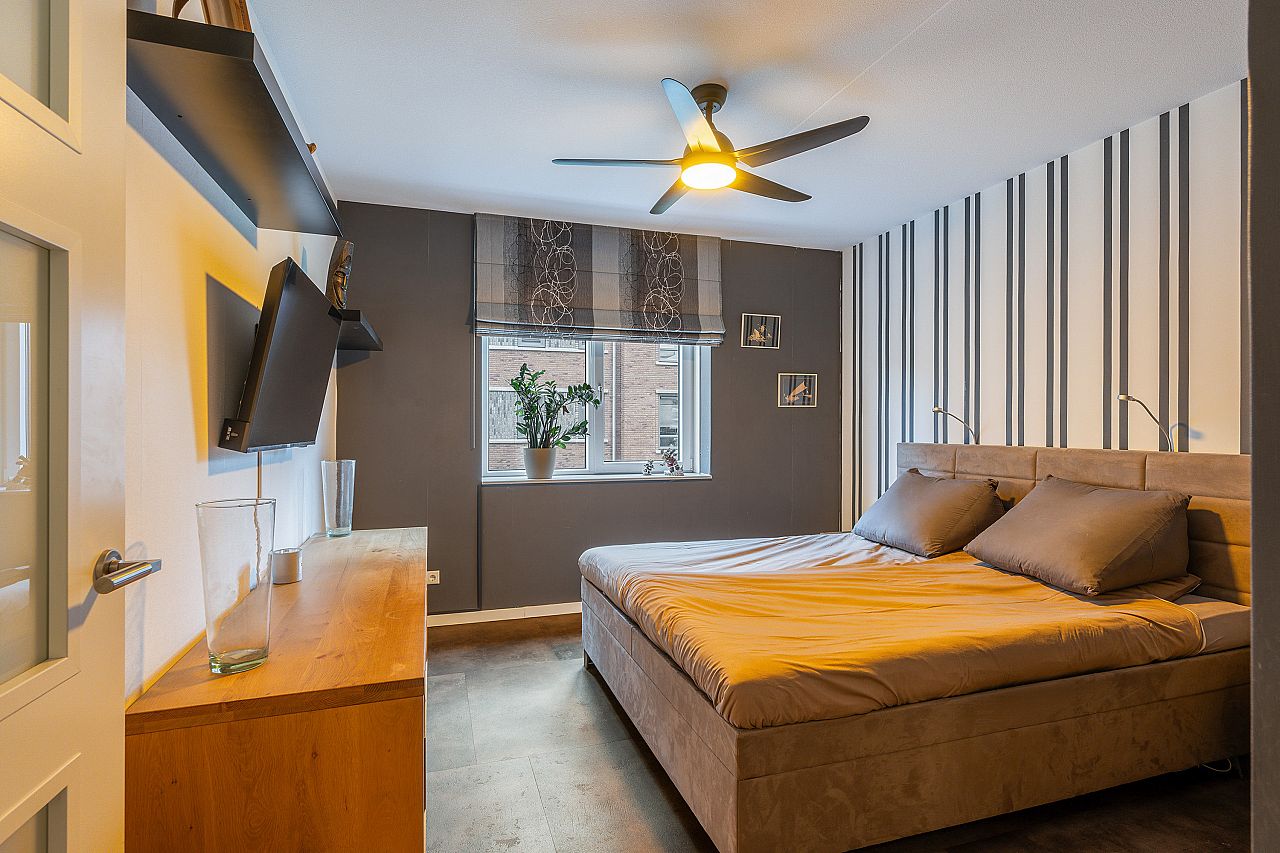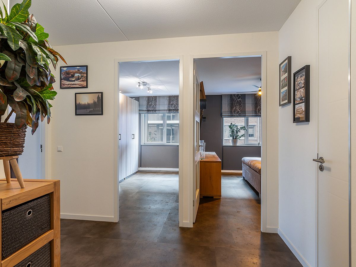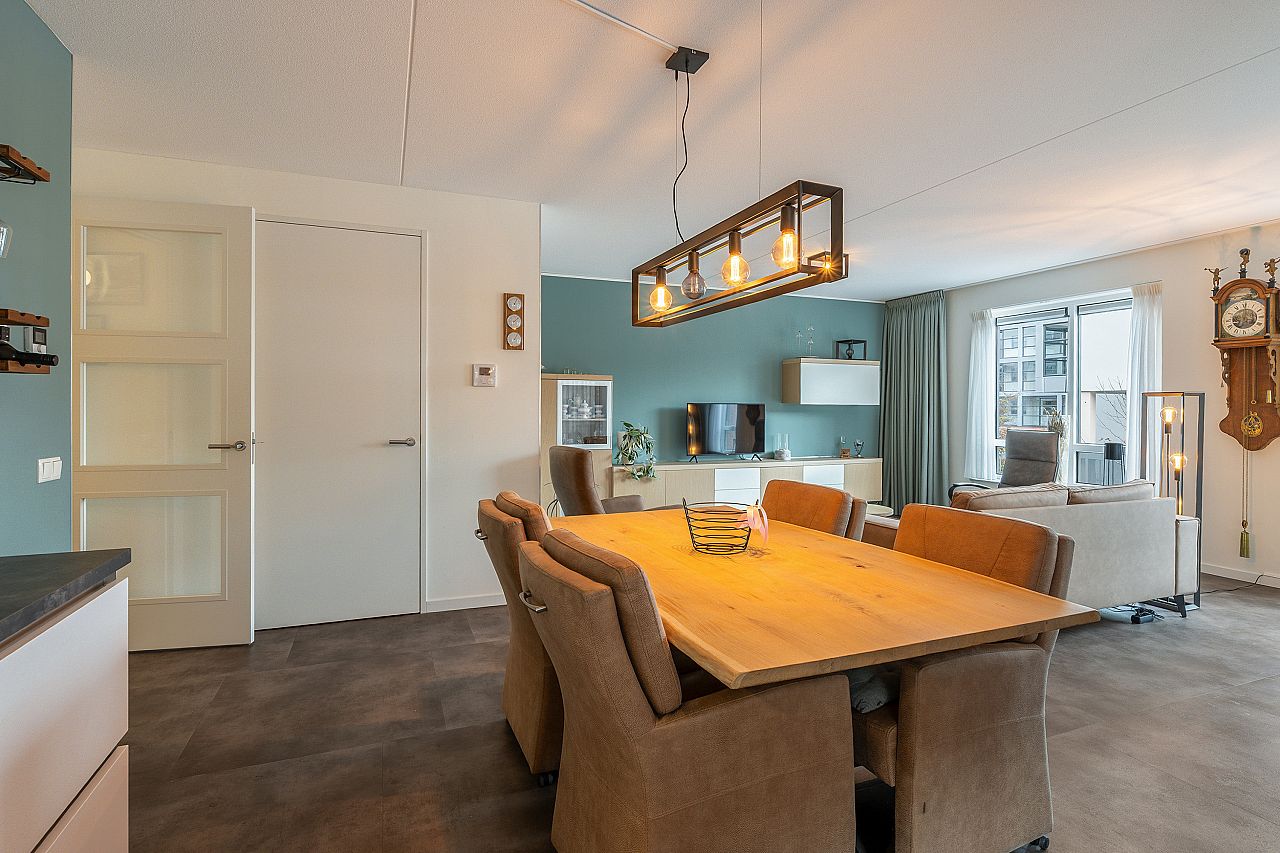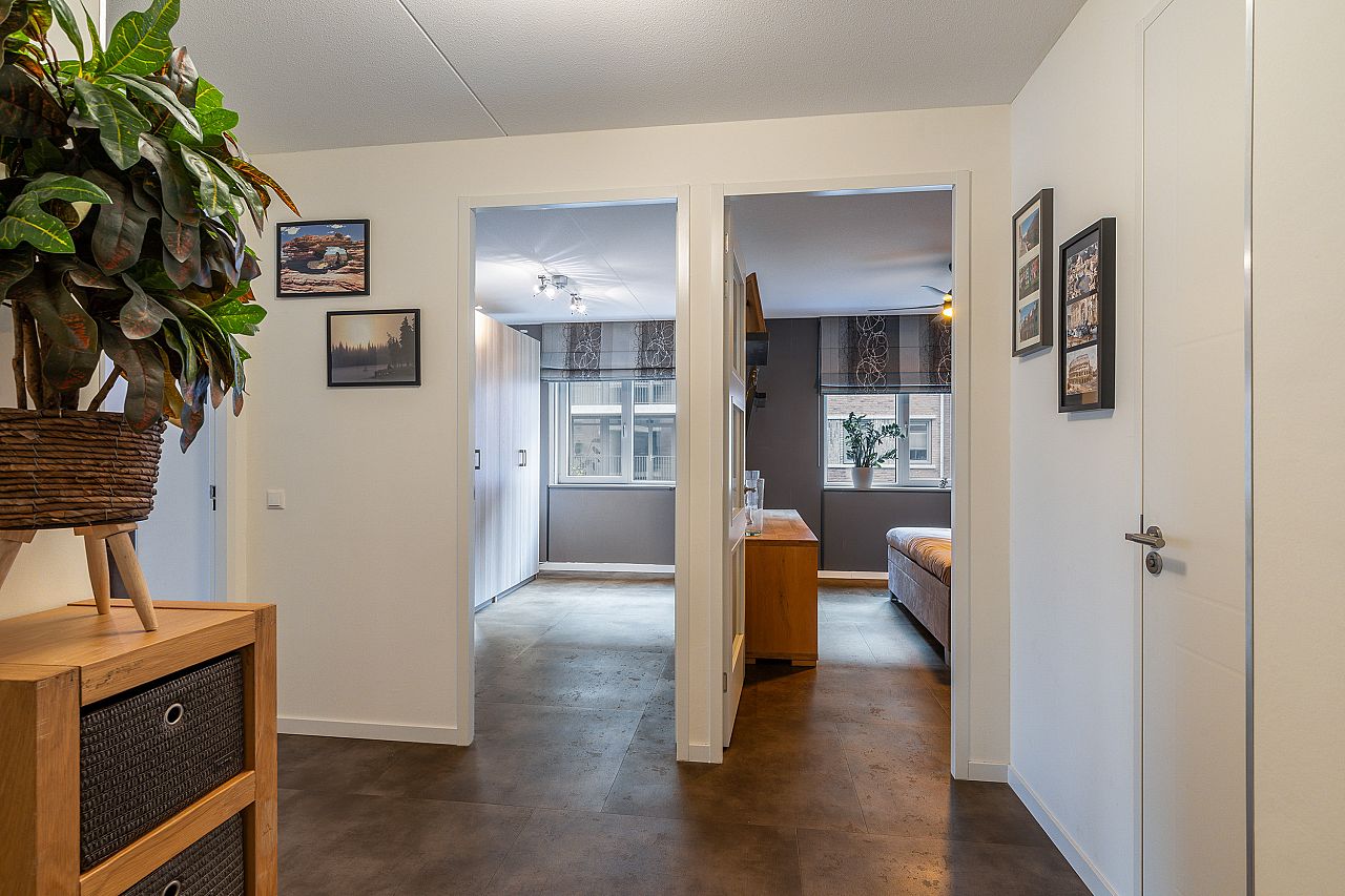 Via een schuifpui vanuit de woonkamer is het balkon van ca. 9 m² bereikbaar. De woonkamer heeft horren, screens en een elektrisch zonnescherm.