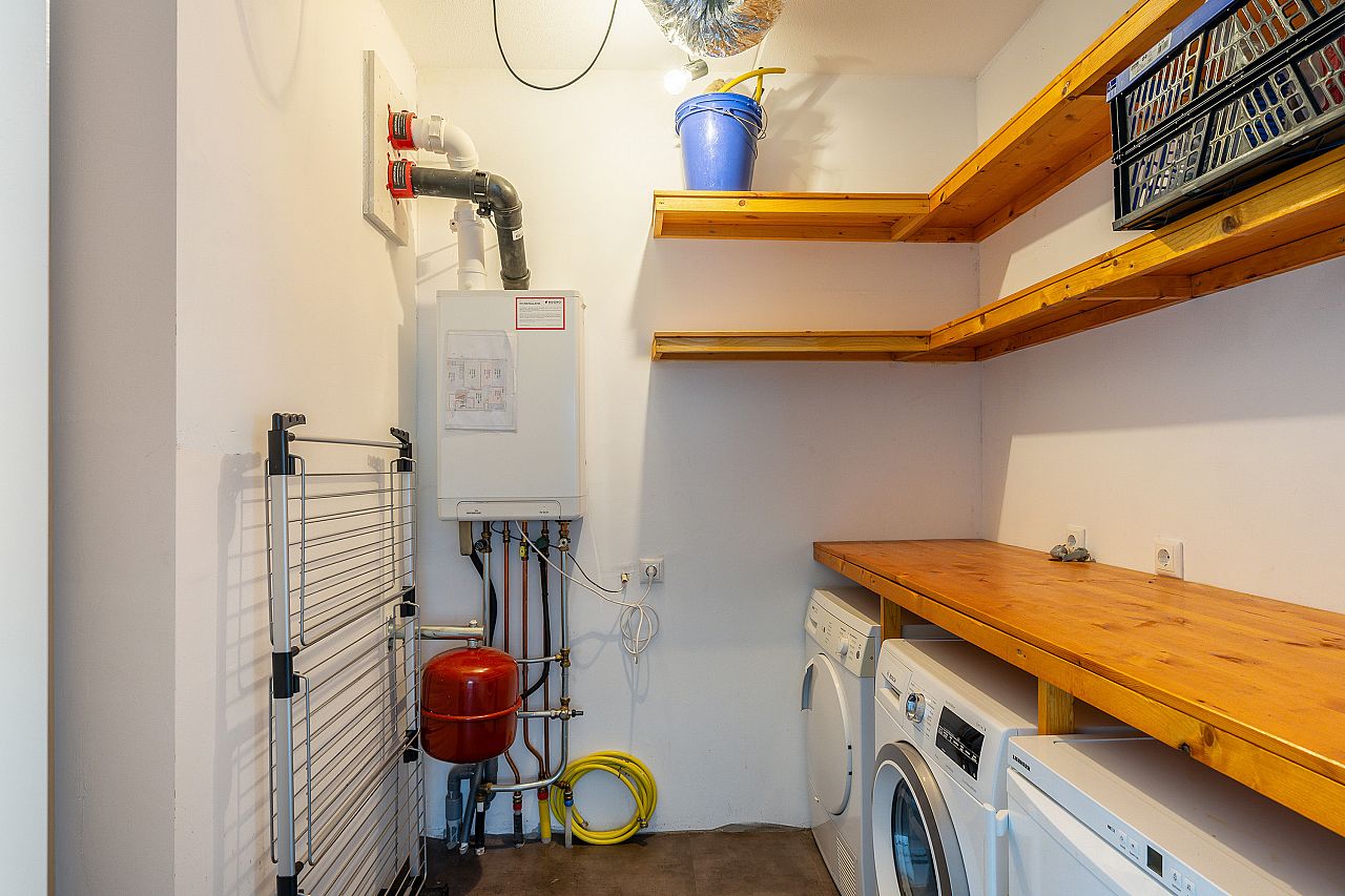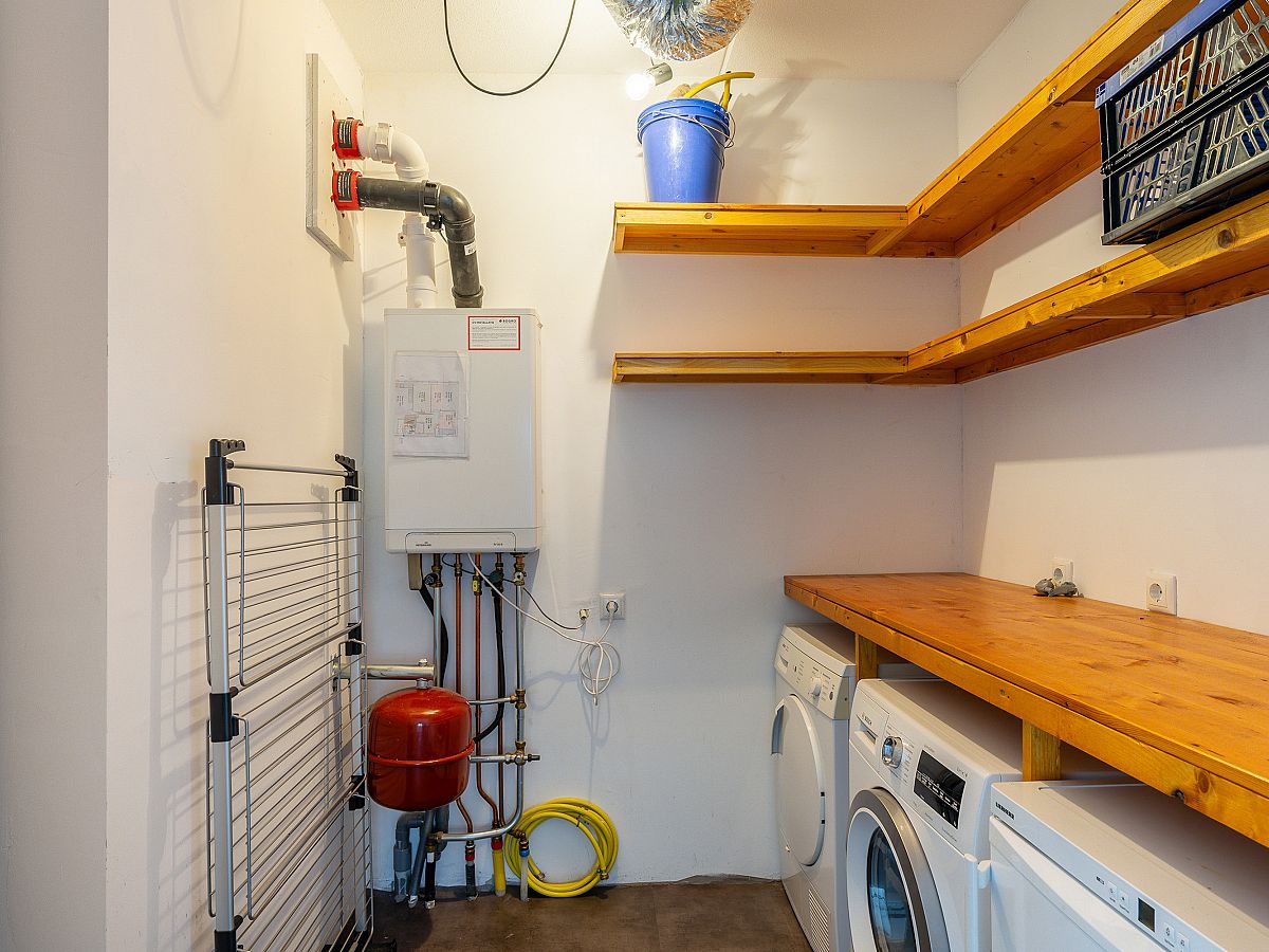 Er is een diepe bergkast waar de aansluiting voor de wasmachine, droger, de Intergas cv ketel (2020), mechanische ventilatie en de verdeler van de vloerverwarming gesitueerd zijn.