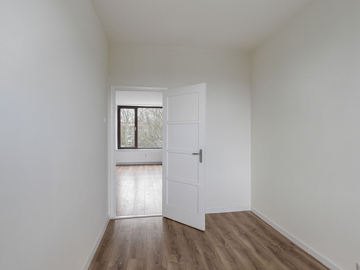 2e Achterslaapkamer met houten kozijnen en dubbel glas.