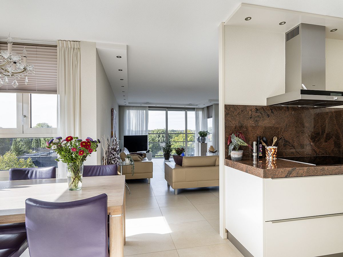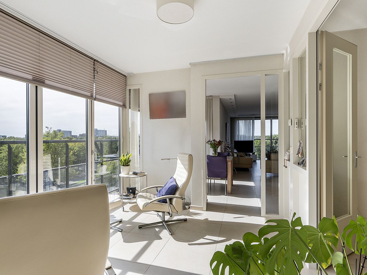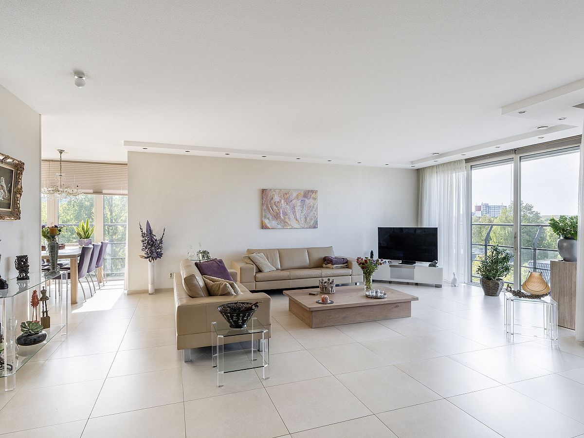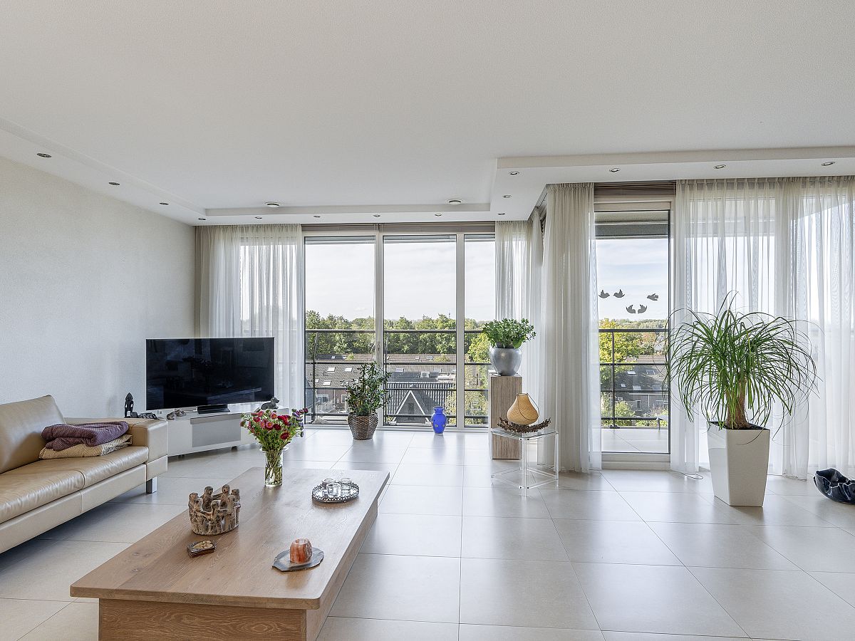 Schitterend gelegen en zeer royaal 4-kamerappartement op de 4e woonlaag met heerlijk balkon en een serrekamer met een fantastisch panorama-uitzicht op de directe omgeving en regio. Dit appartement is van alle gemakken voorzien, heeft een moderne Siematic keuken en luxe en ruime badkamer en is volledig voorzien van een mooie plavuizenvloer met vloerverwarming- en vloerkoeling. Er is een eigen parkeerplaats in de ondergelegen parkeergarage en een gezamenlijke fietsenstalling.