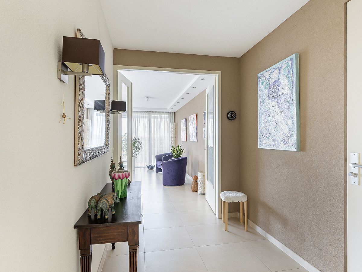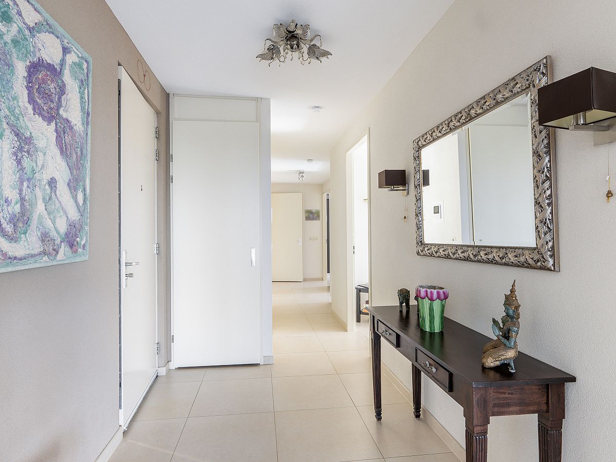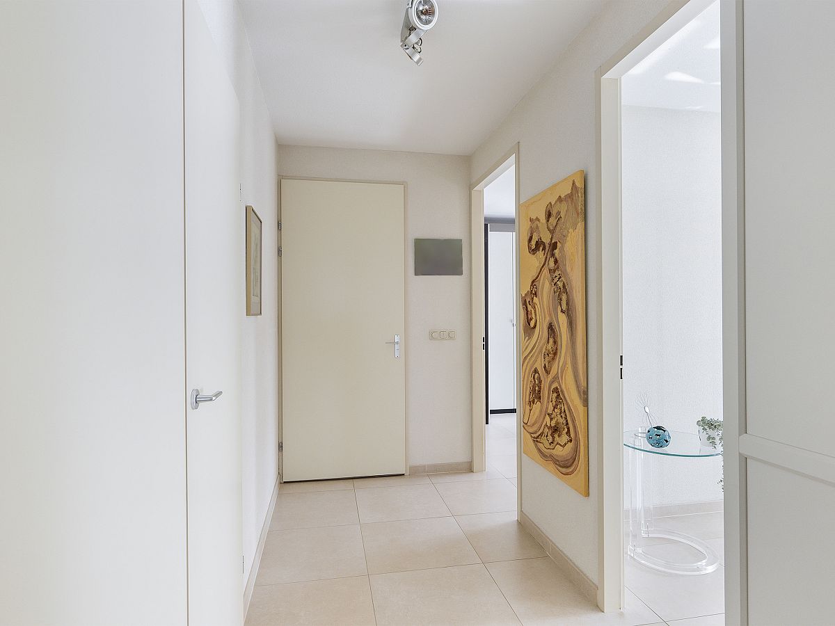 Entree woning; royale hal met meterkast (8 groepen); stookruimte met opstelling WTW en aansluiting voor de wasmachine en droger.