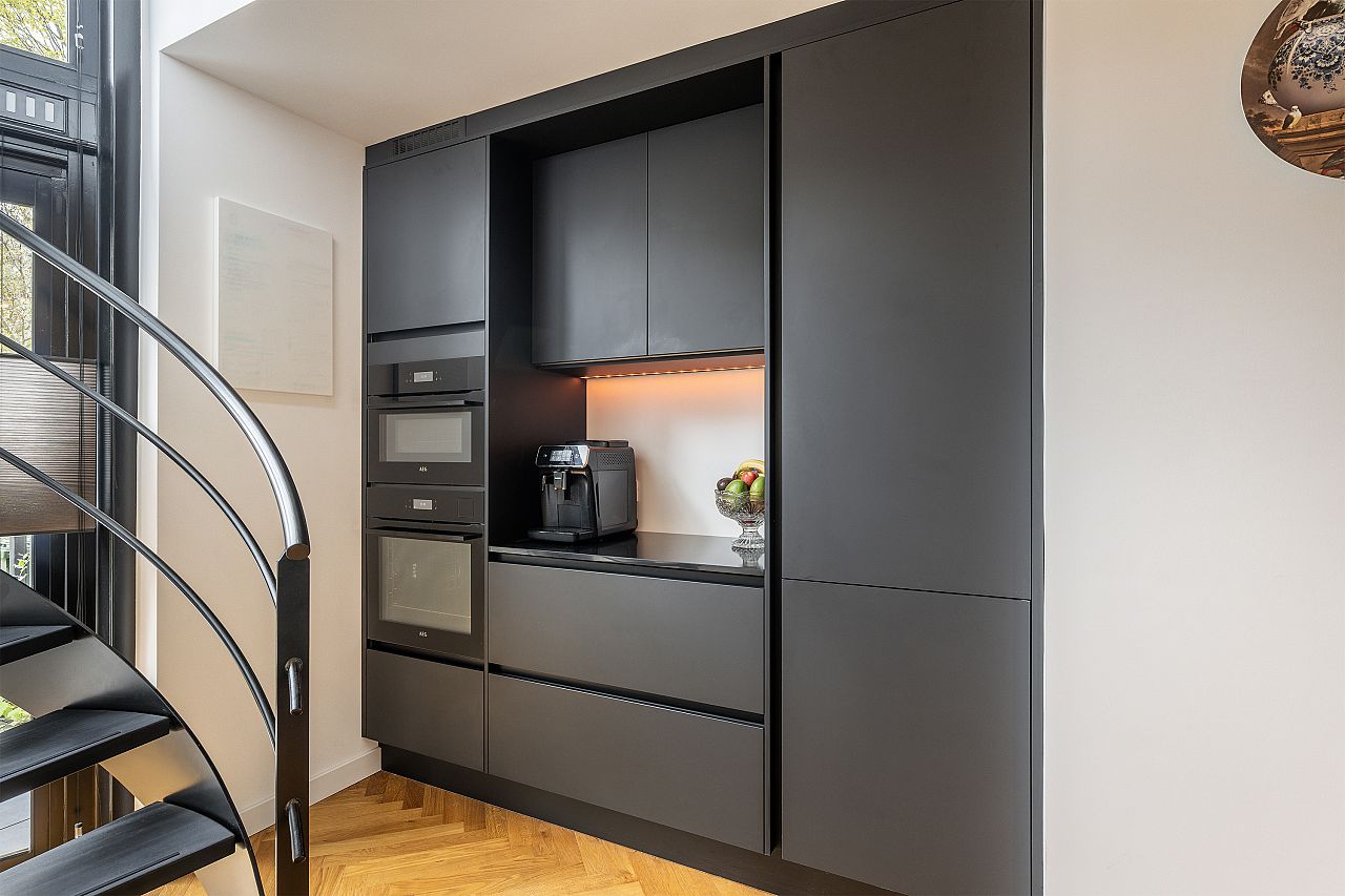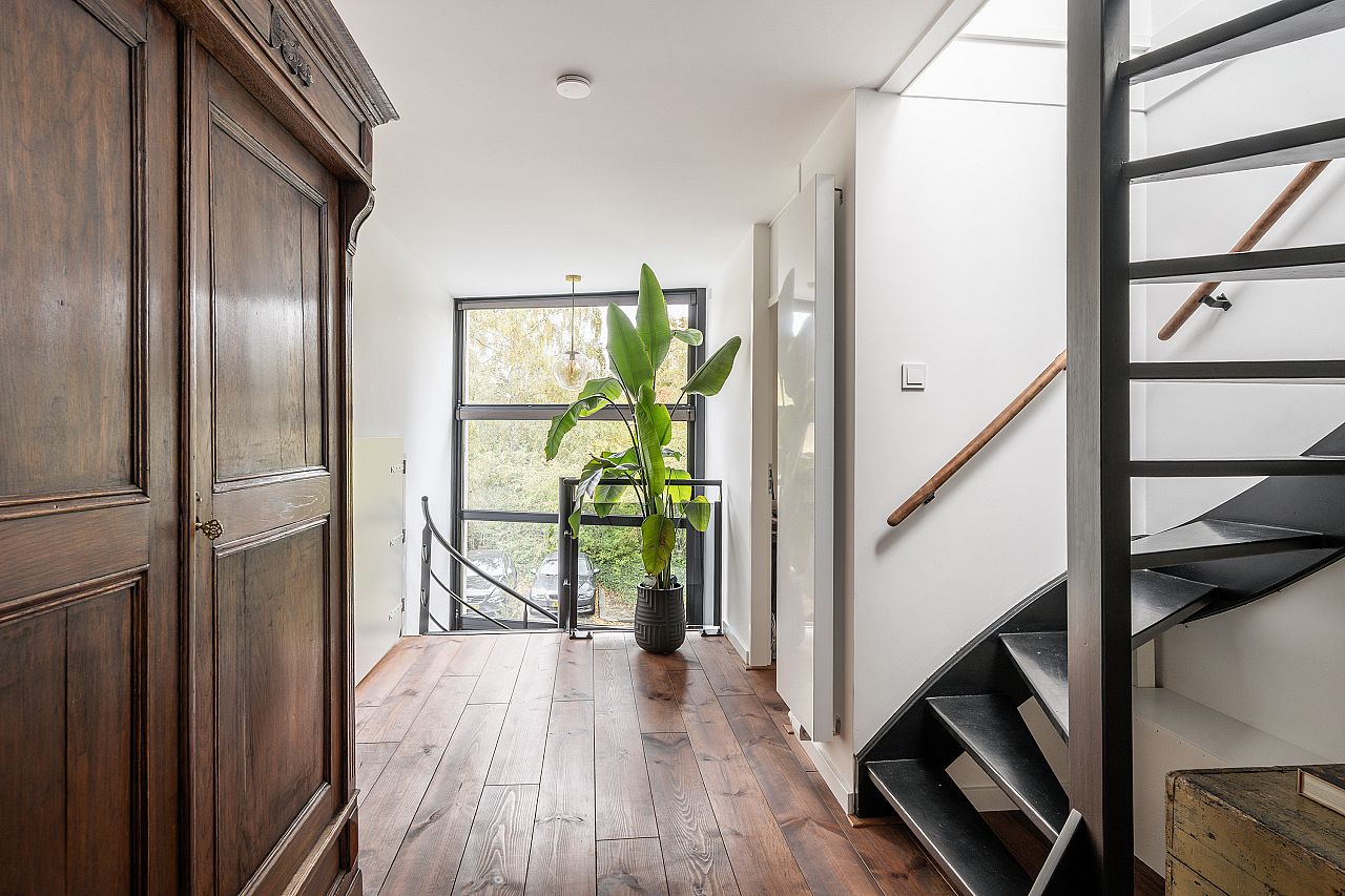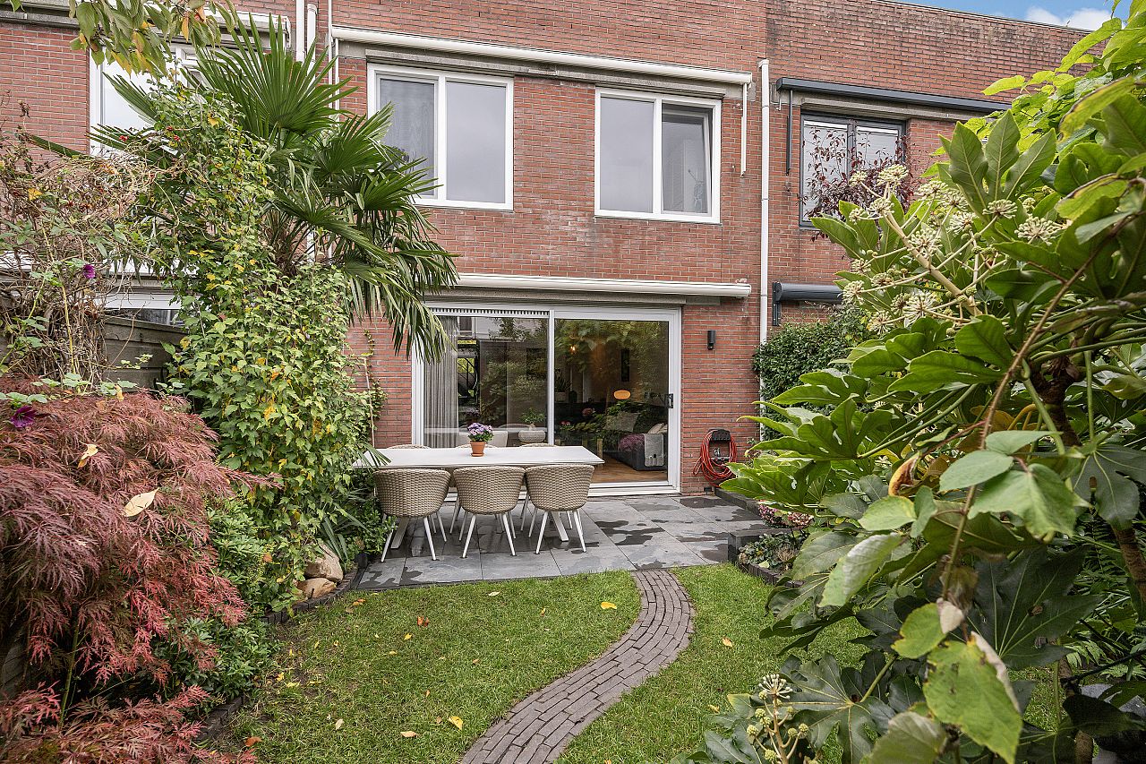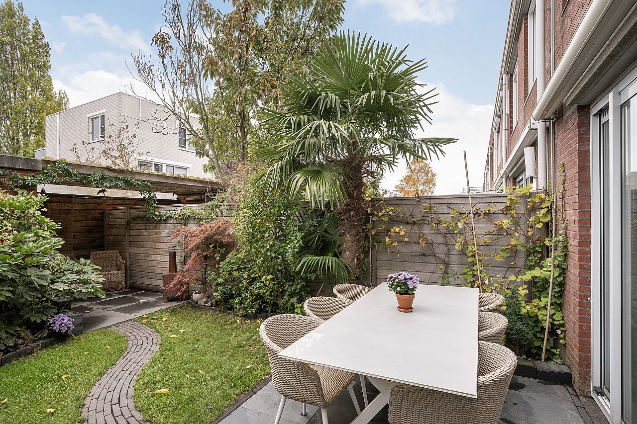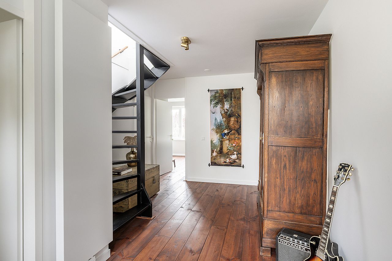 Ruime entree met maatwerk garderobekast, meterkast (volledig vernieuwd) en moderne toiletruimte. De begane grond is volledig voorzien van een eiken parketvloer met vloerverwarming. De woonkamer is strak afgewerkt. Aan de voorzijde van de woning ligt de royale open keuken, uitgevoerd met mat zwarte frontinrichting en aanrechtblad. De keuken bevat kwalitatief hoge inbouwapparatuur, te weten: inductiekookplaat, kokendwaterkraan, stoomoven, combi-oven met magnetronfunctie, vaatwasser, koel-/vriescombinatie en een koffiecorner. De schuifpui geeft toegang tot de zonnige en sfeervolle tuin op het westen, met volwassen beplanting en modern terras. Voorzien van elektrische zonwering, een ruime stenen schuur en achterom. Aan de voorzijde van de woning is tevens een fraai aangelegde, groene voortuin met praktische overkapping, ideaal voor het stallen van bijvoorbeeld fietsen.