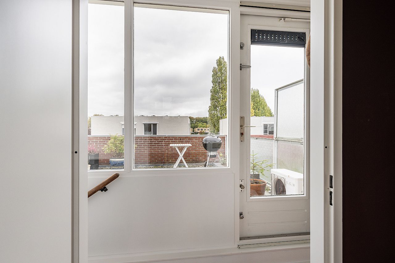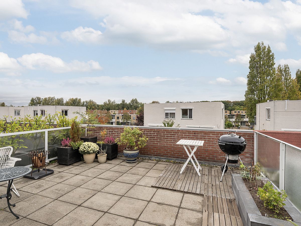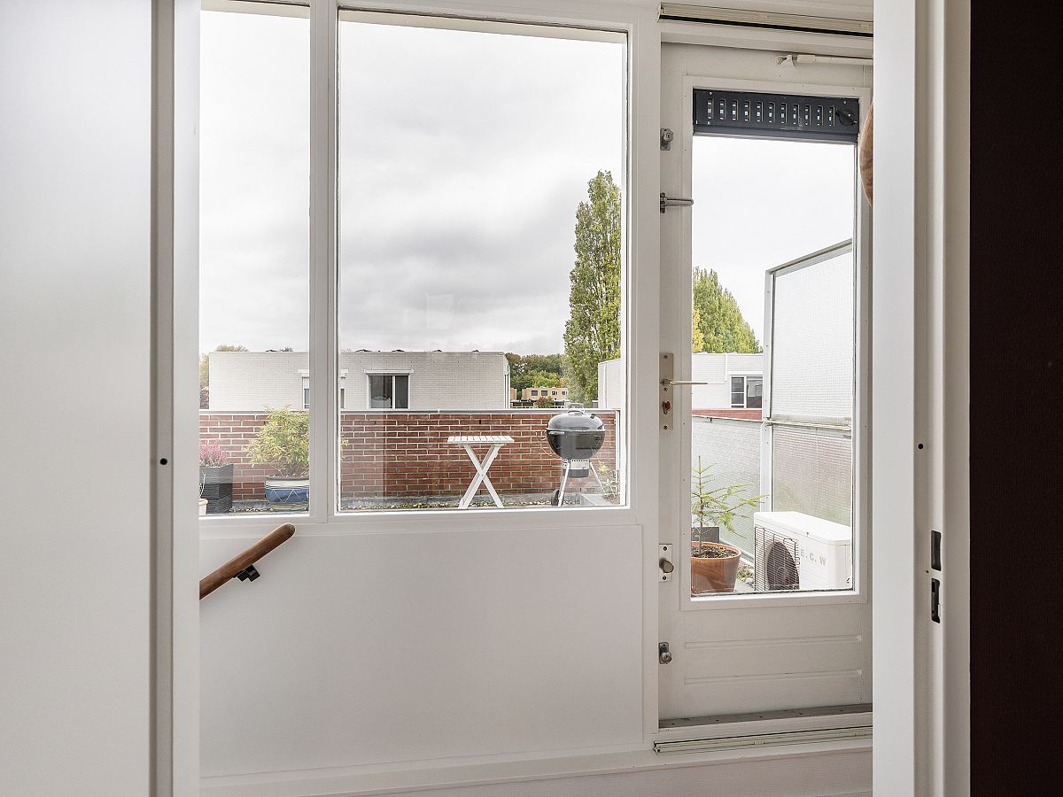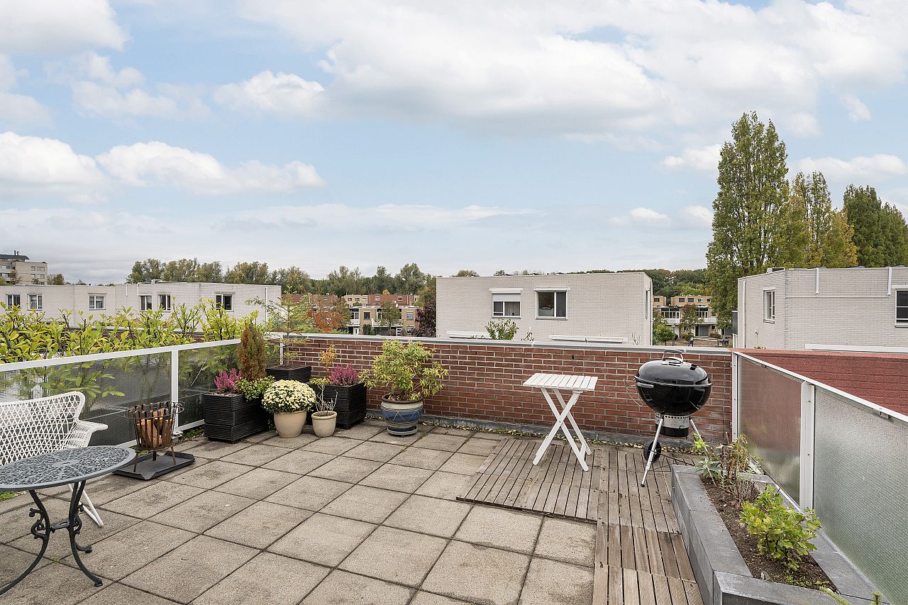 De tweede verdieping is voorzien van een mooie parketvloer. De overloop geeft toegang tot een ruime slaapkamer met veel lichtinval, welke momenteel ook als werkkamer in gebruik is. Op deze verdieping bevindt zich een wasruimte met CV combiketel (Remeha 2022), tevens geschikt als ruimte om een tweede badkamer te creëren. Via de overloop bereik je het dakterras. Zeer ruim, zonnig tot in de late avonduren en biedt mogelijkheden om de woning uit te bouwen.