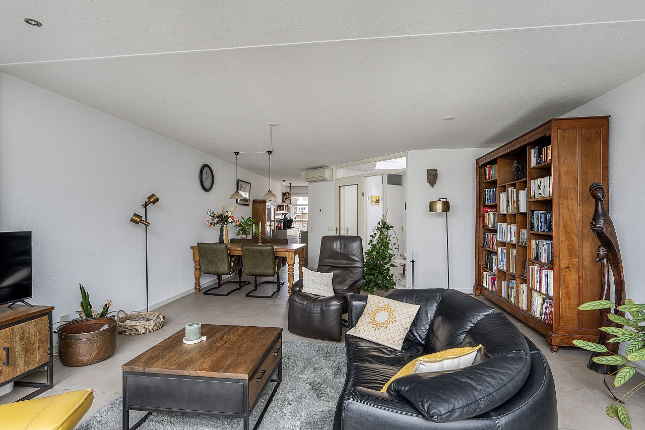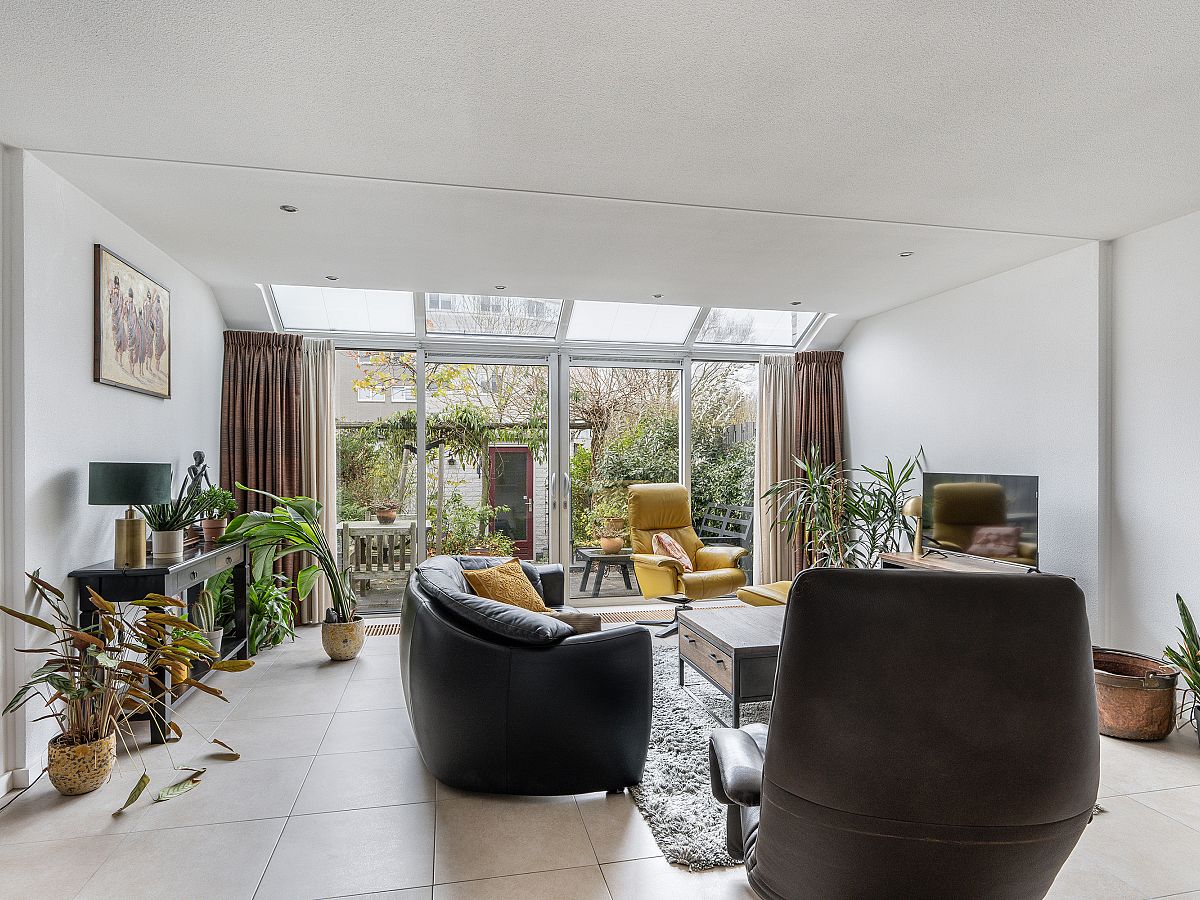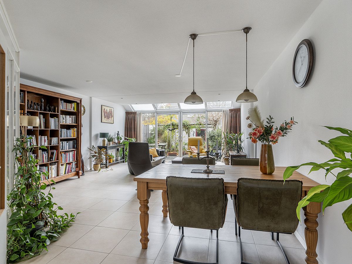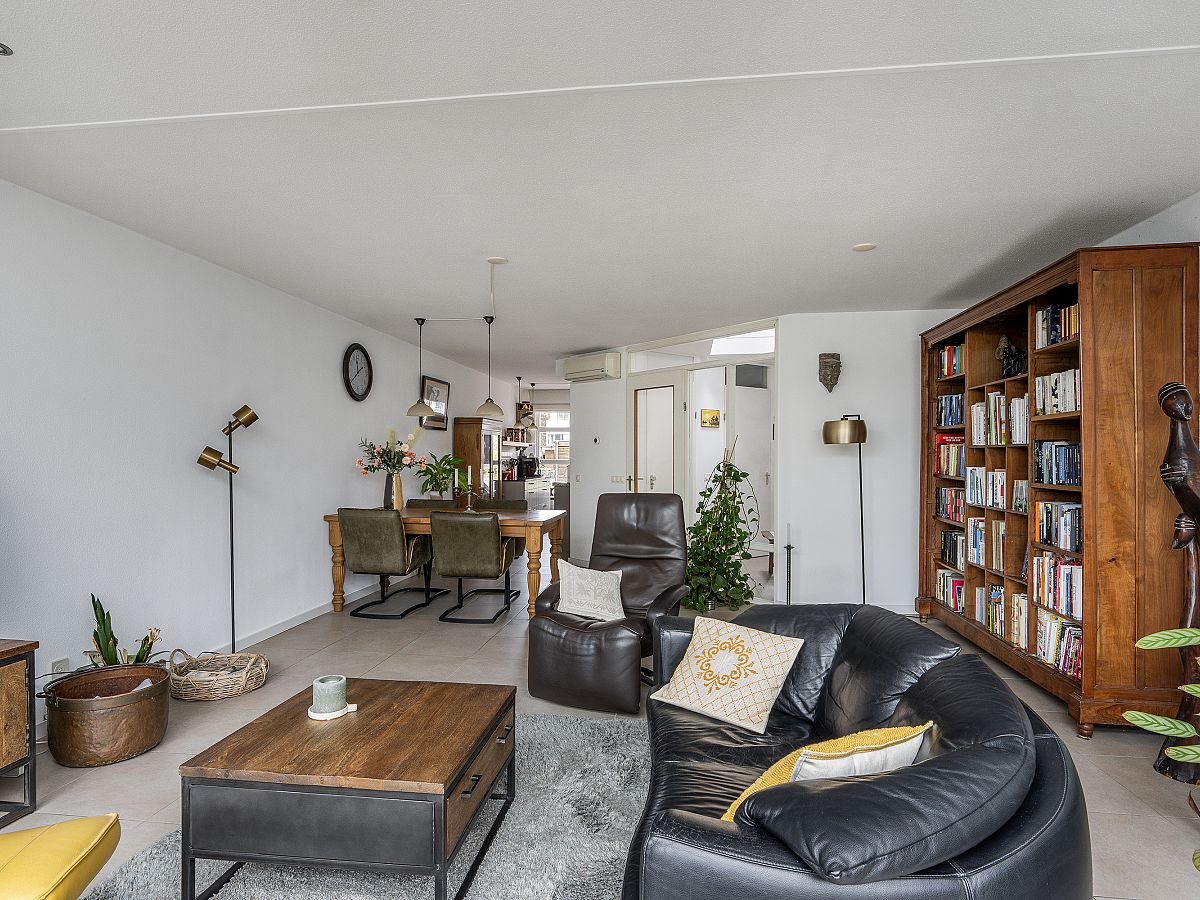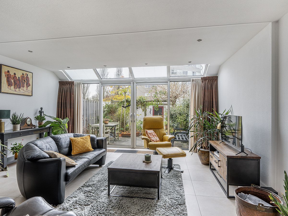 De woonkamer heeft airco, een uitbouw met extra lichtinval, elektrisch zonnescherm dat ook over de lichtstraat valt en een schuifpui naar de achtertuin.