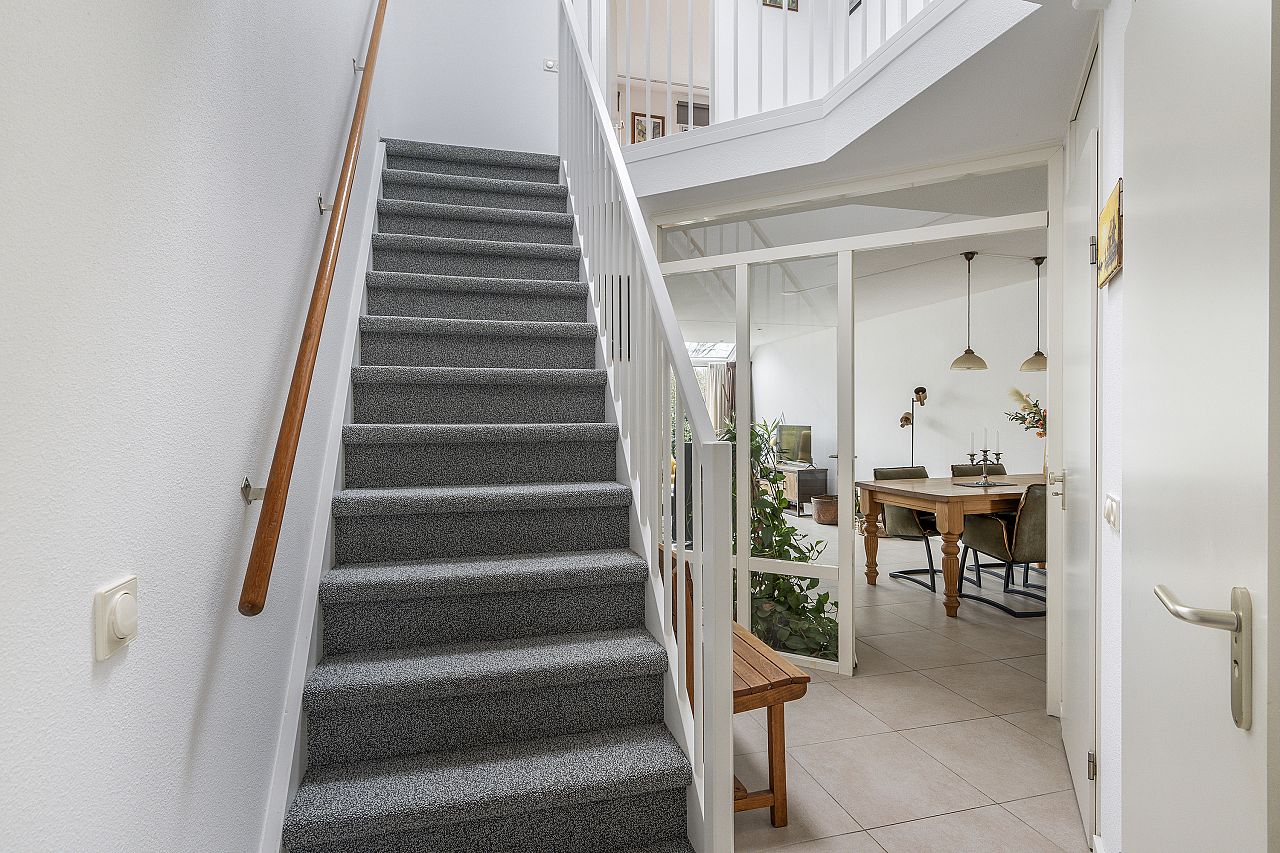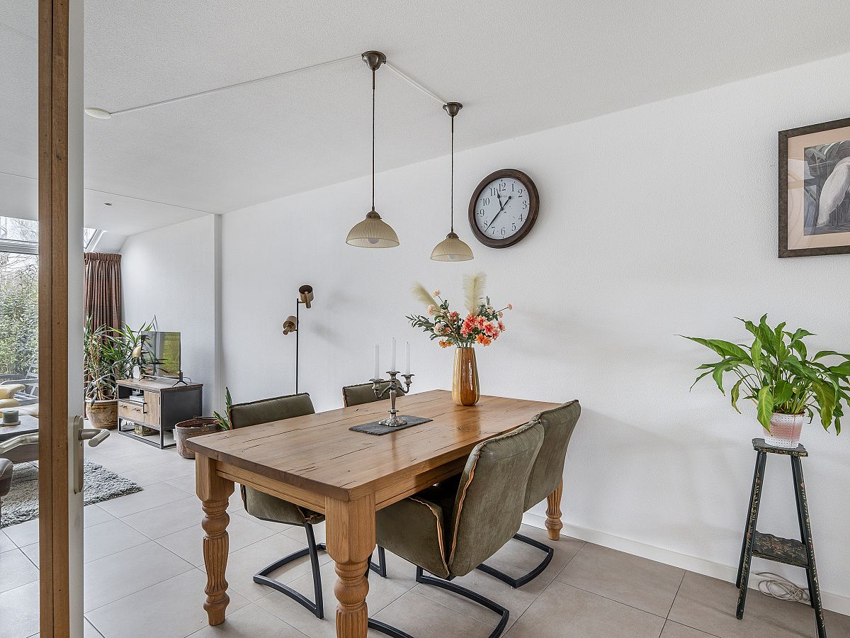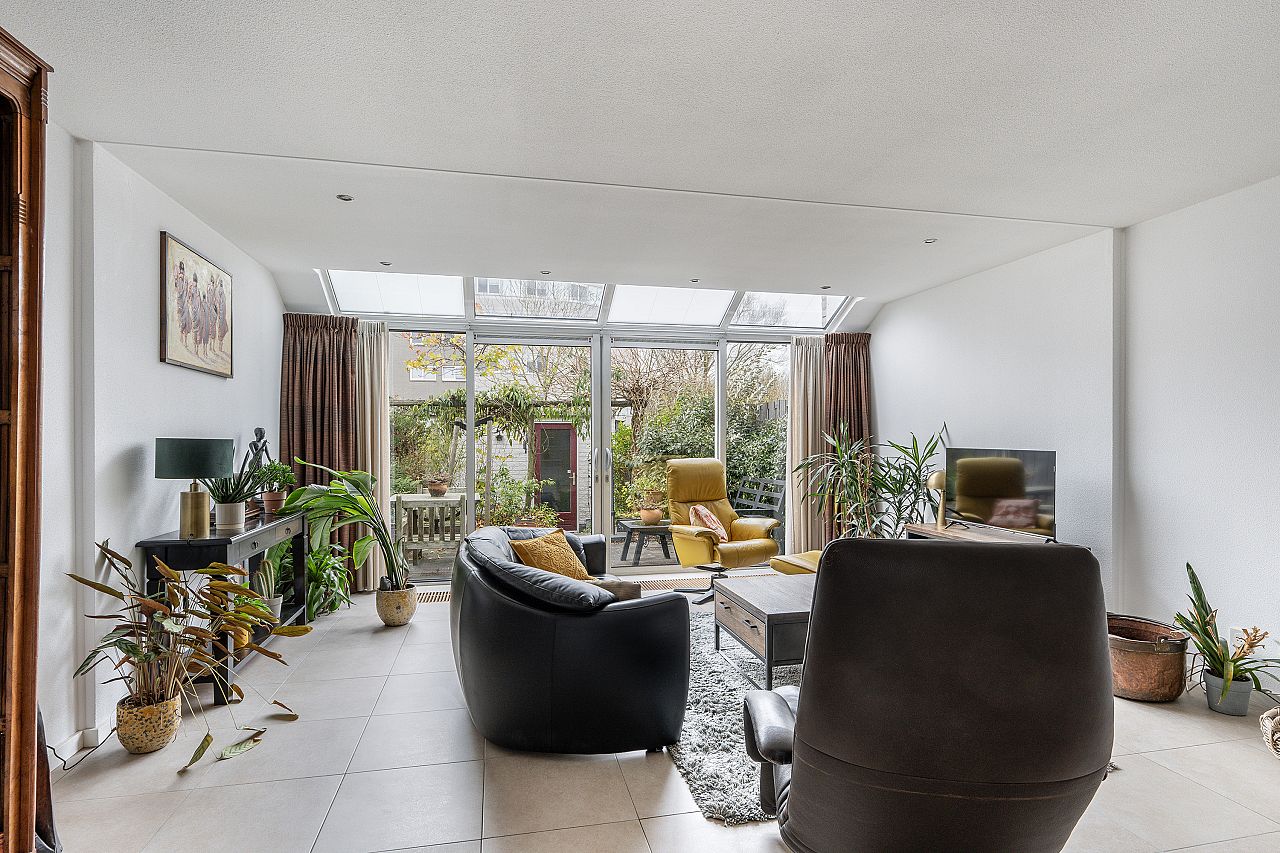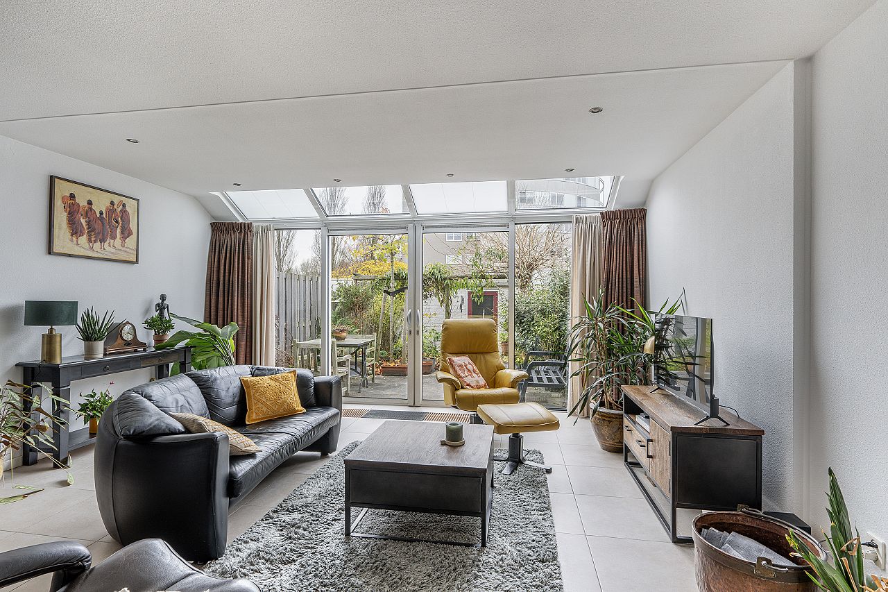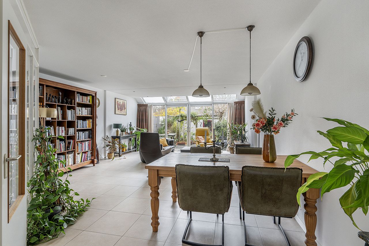 De woonkamer heeft airco, een uitbouw met extra lichtinval, elektrisch zonnescherm dat ook over de lichtstraat valt en een schuifpui naar de achtertuin.