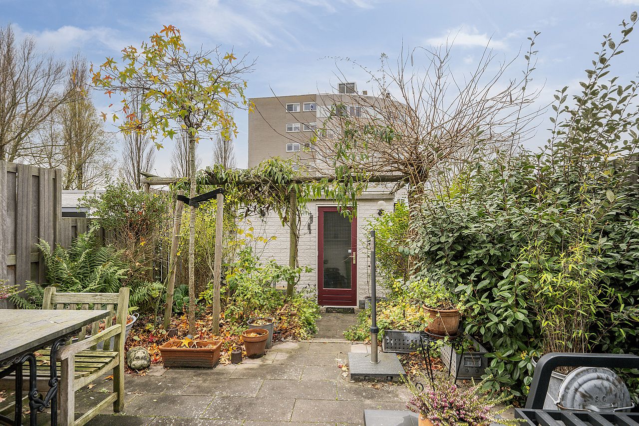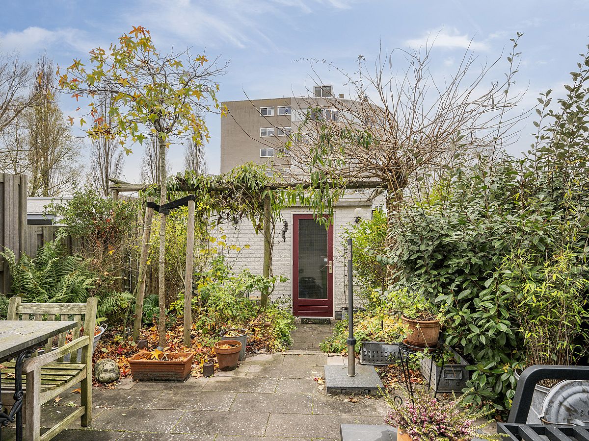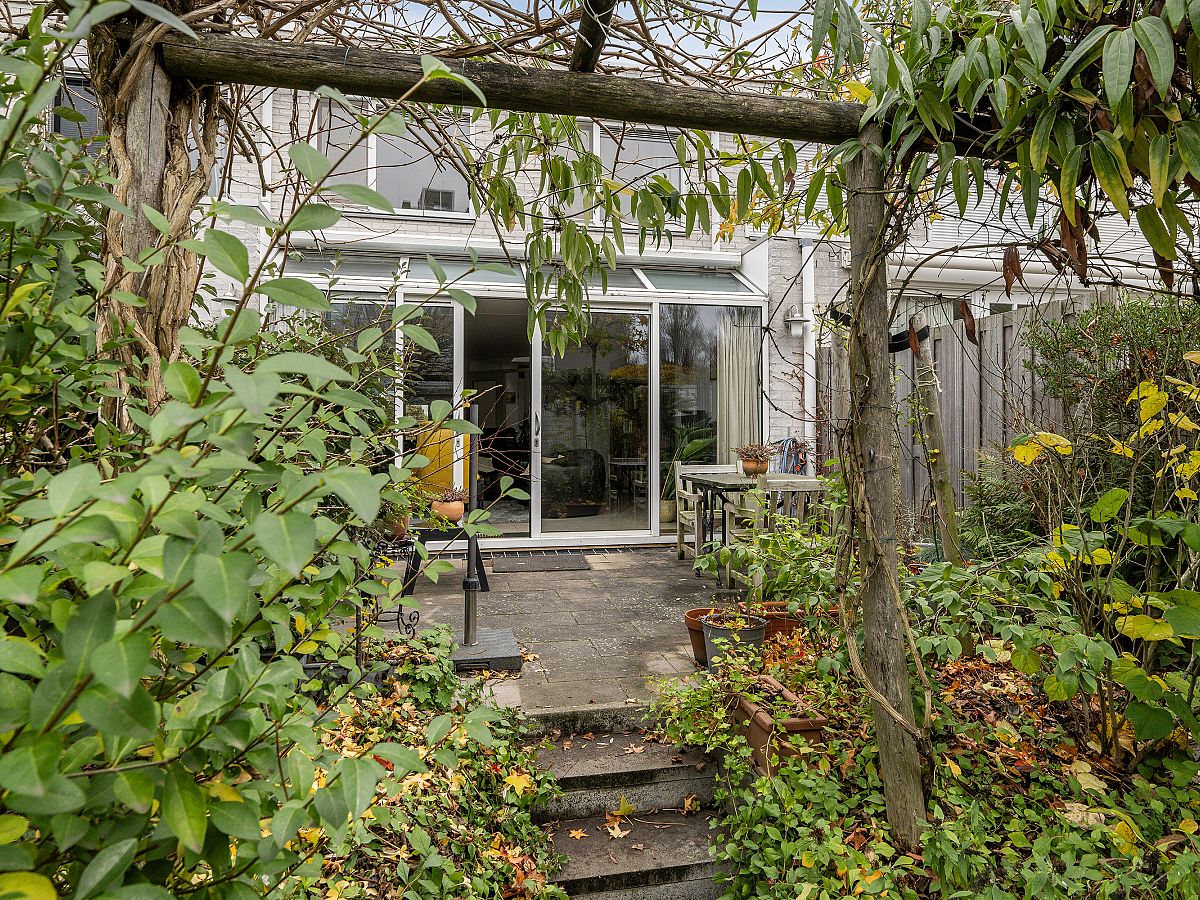 In de achtertuin vind je een stenen berging met elektra en er is een achterom.