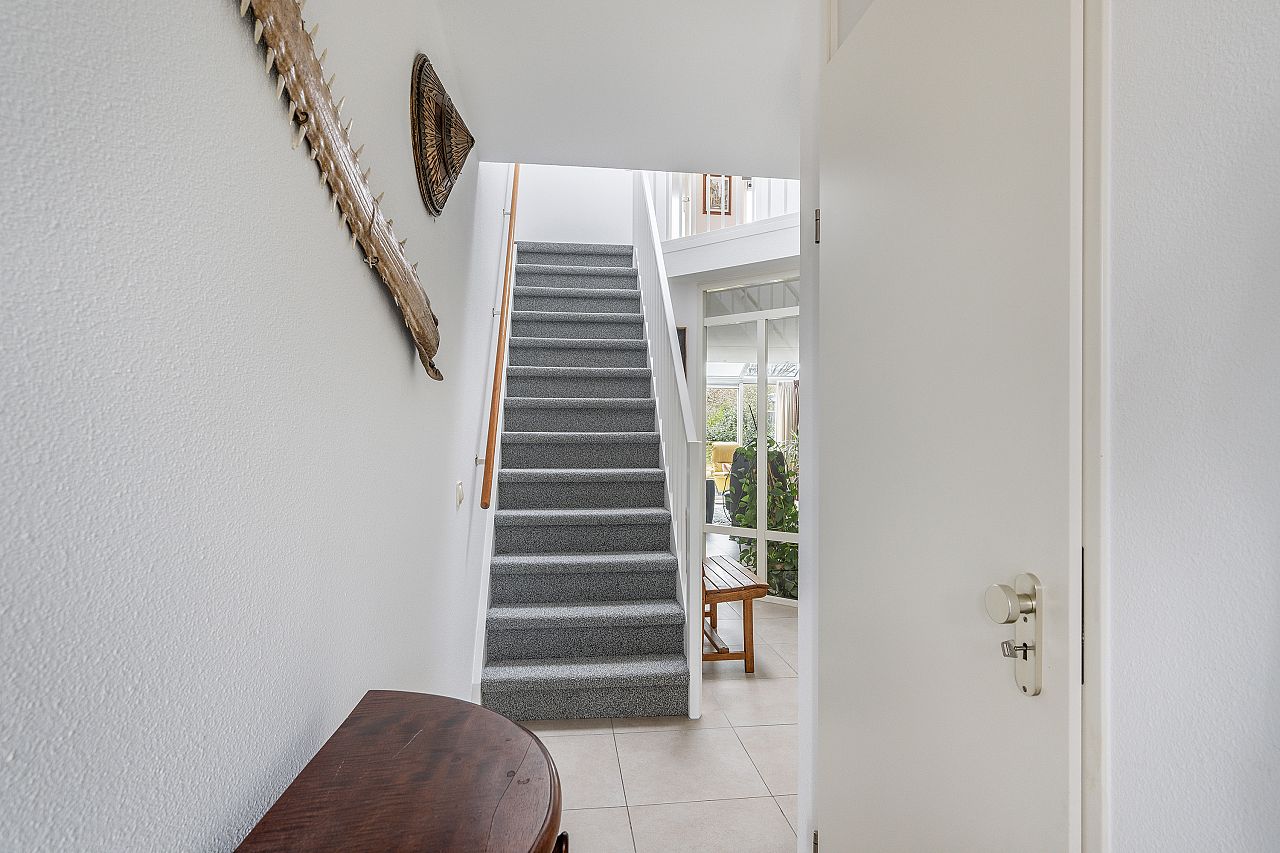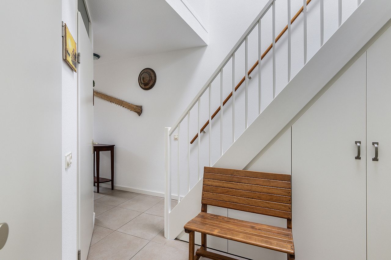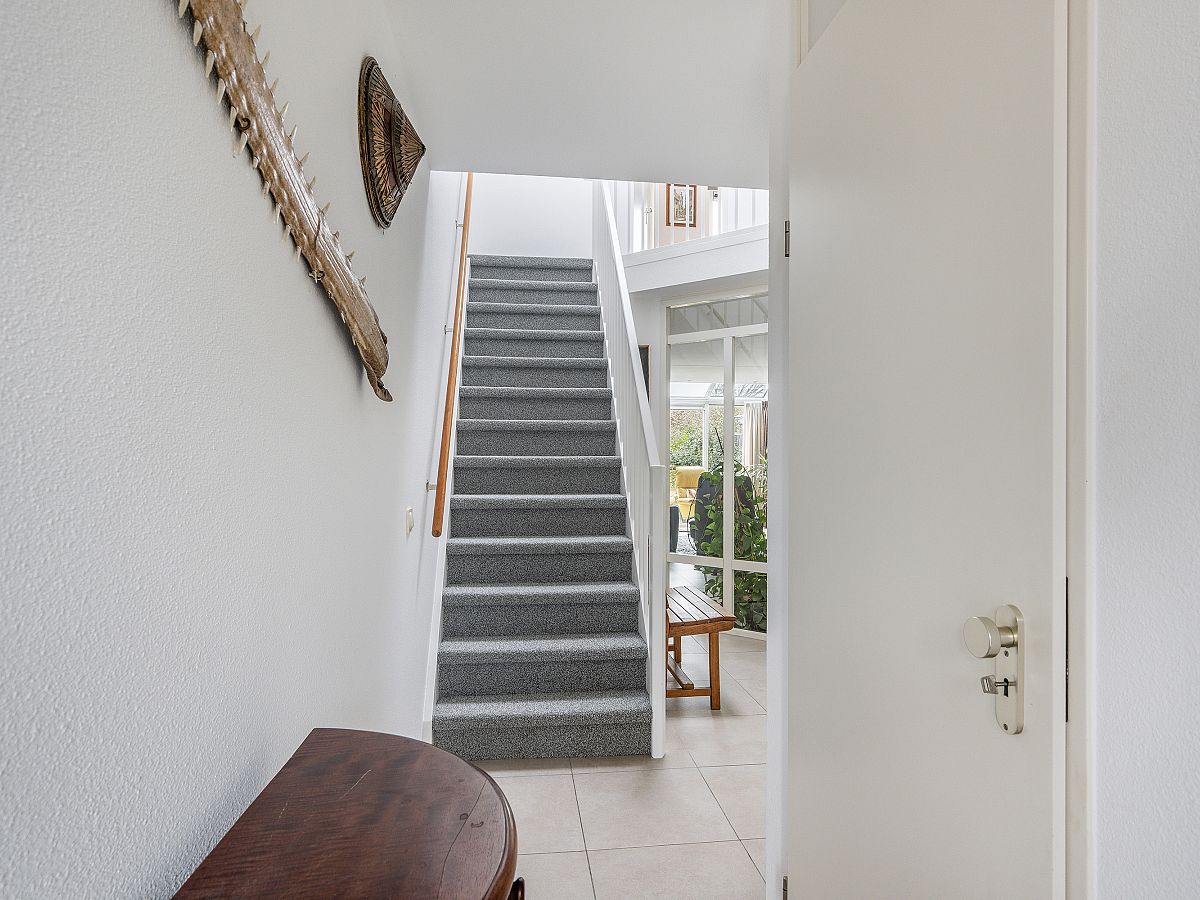 Entree met meterkast en trapkast, ruime voorraadkast, trapopgang en toiletruimte.