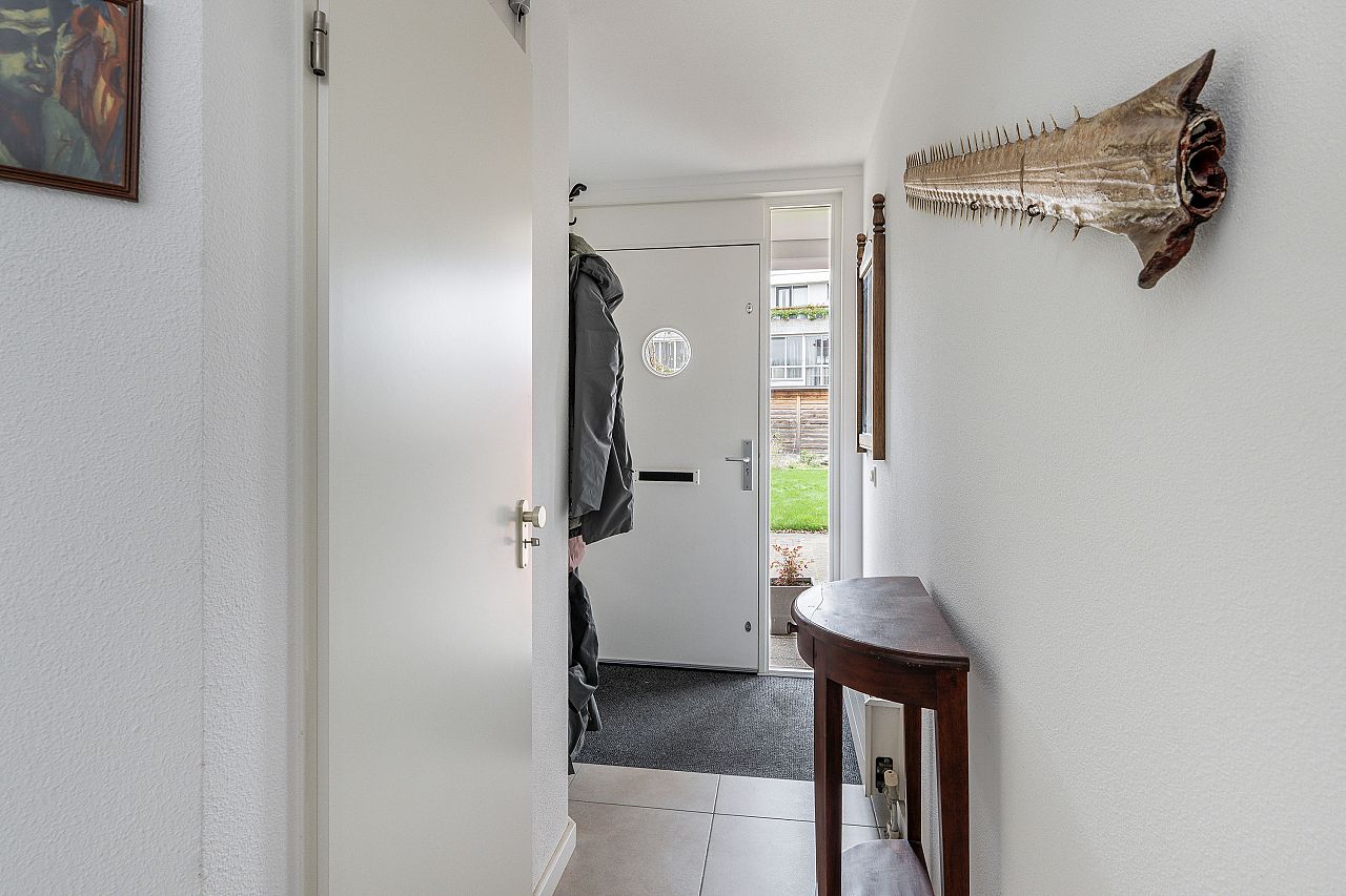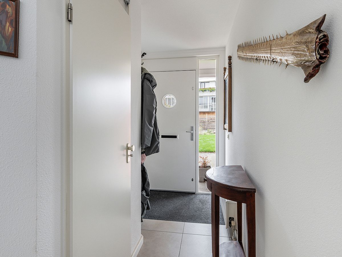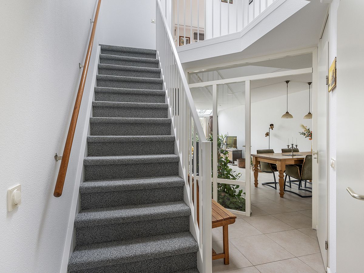 Entree met meterkast en trapkast, ruime voorraadkast, trapopgang en toiletruimte.