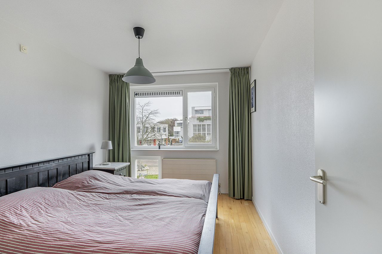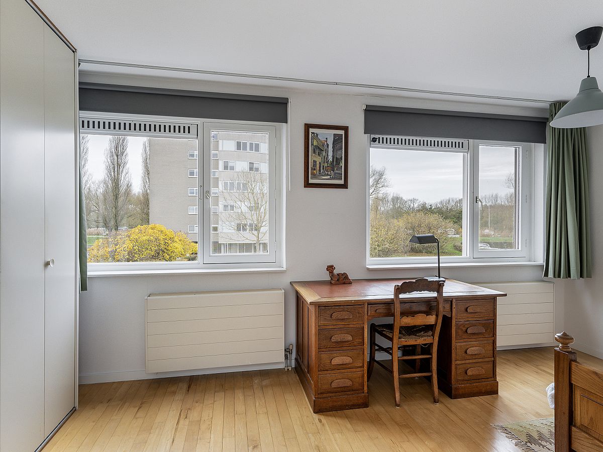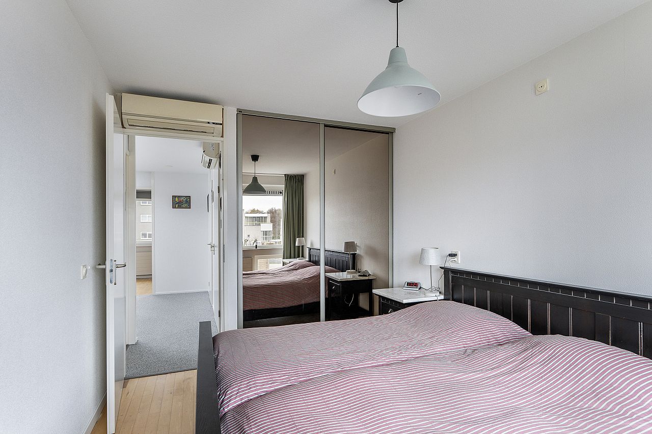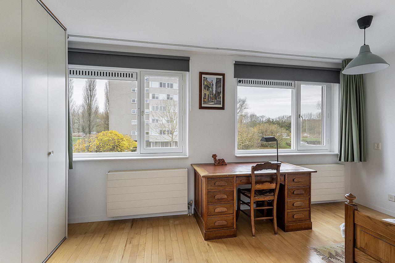 Vanuit de slaapkamer aan de achterzijde kijk je zo op de Vaart. Deze slaapkamer heeft ook een vaste kast en airco.