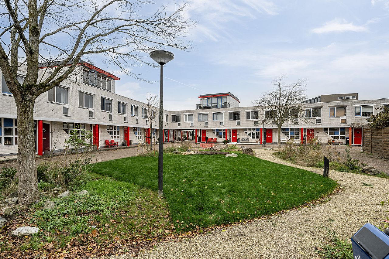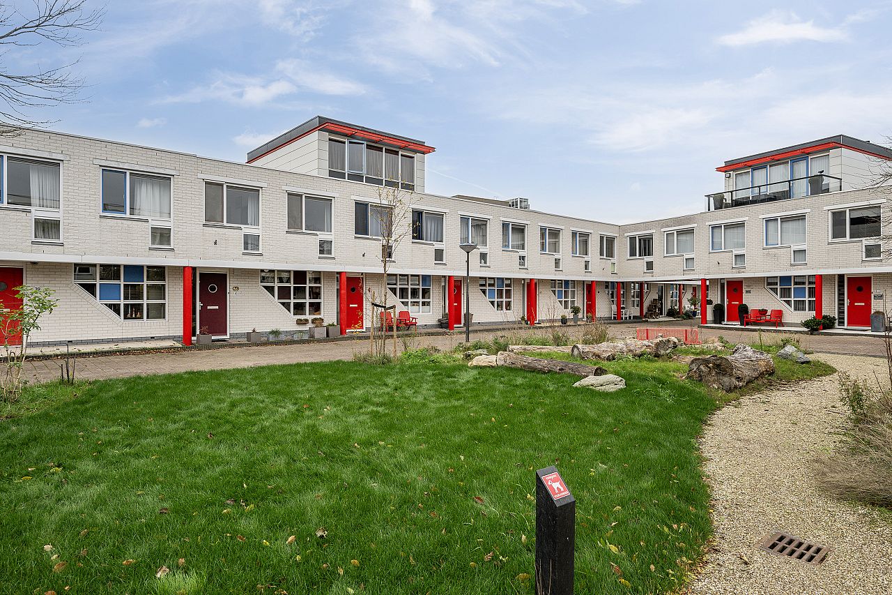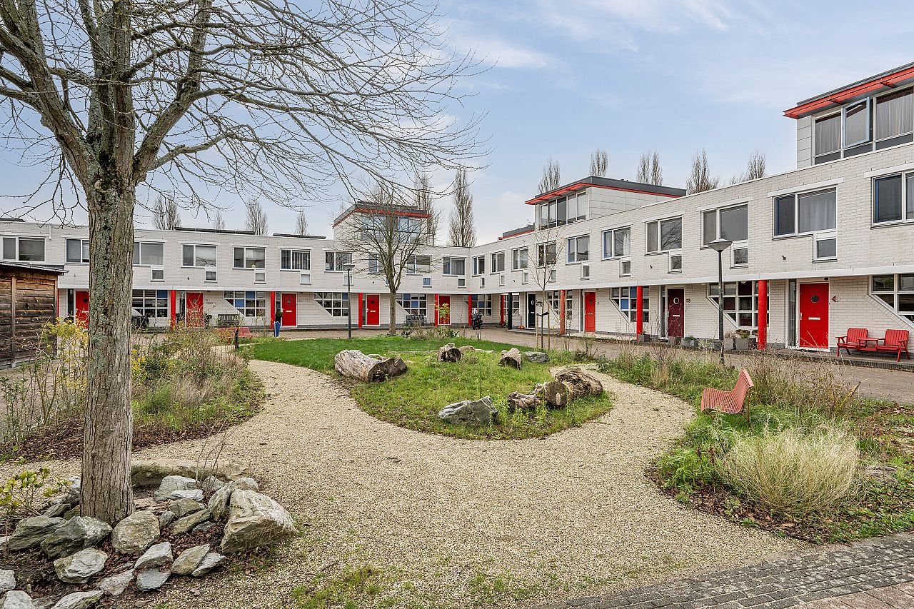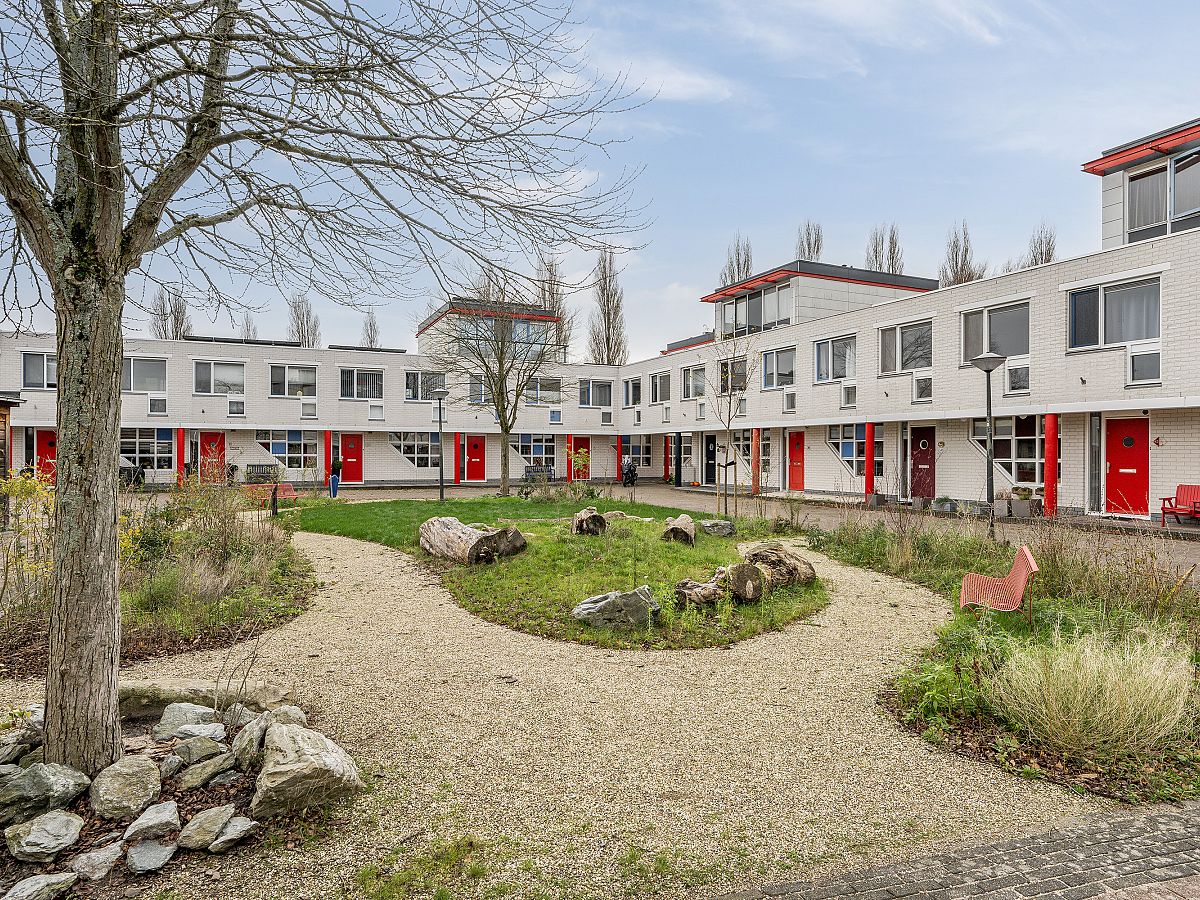 Wanneer je de voordeur uitstapt, sta je op een kindvriendelijk, autovrij plein met groen speeltuintje.