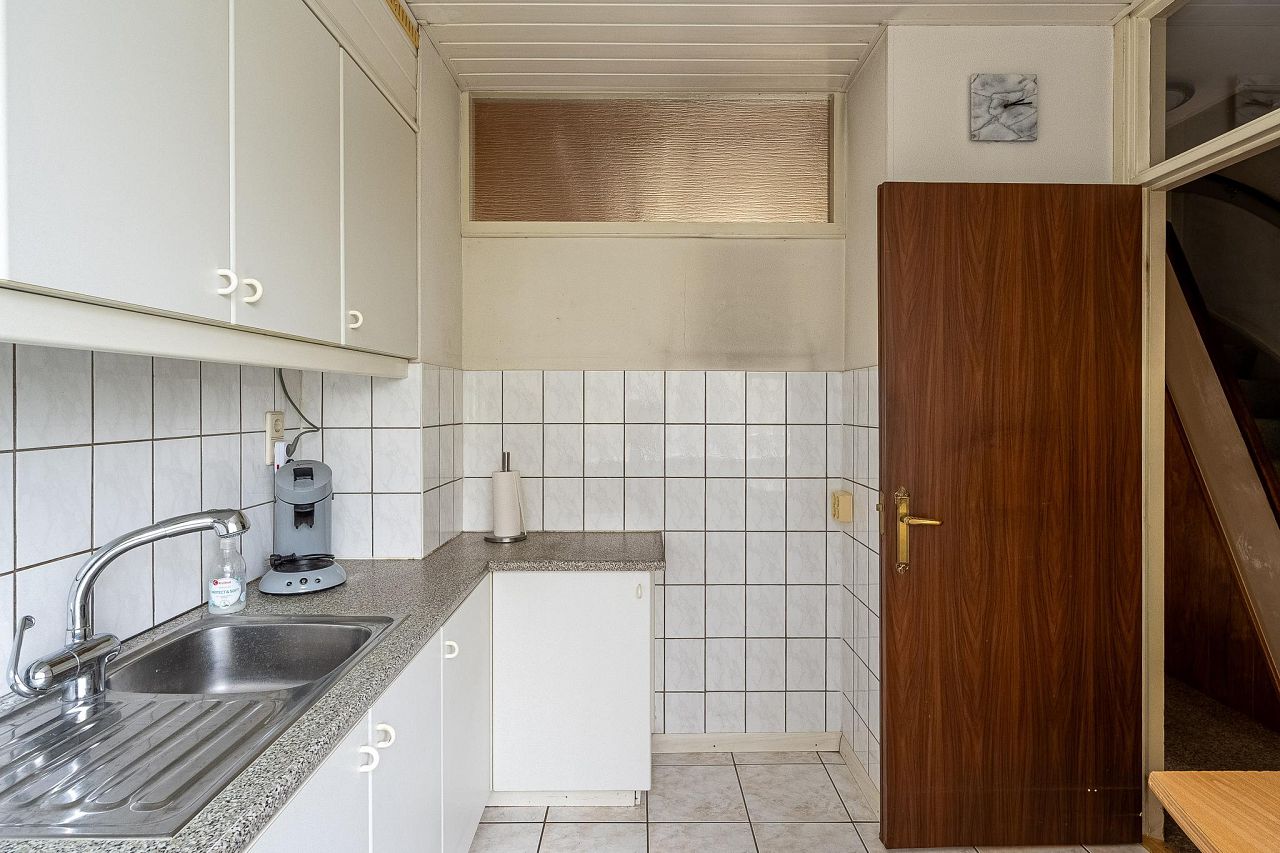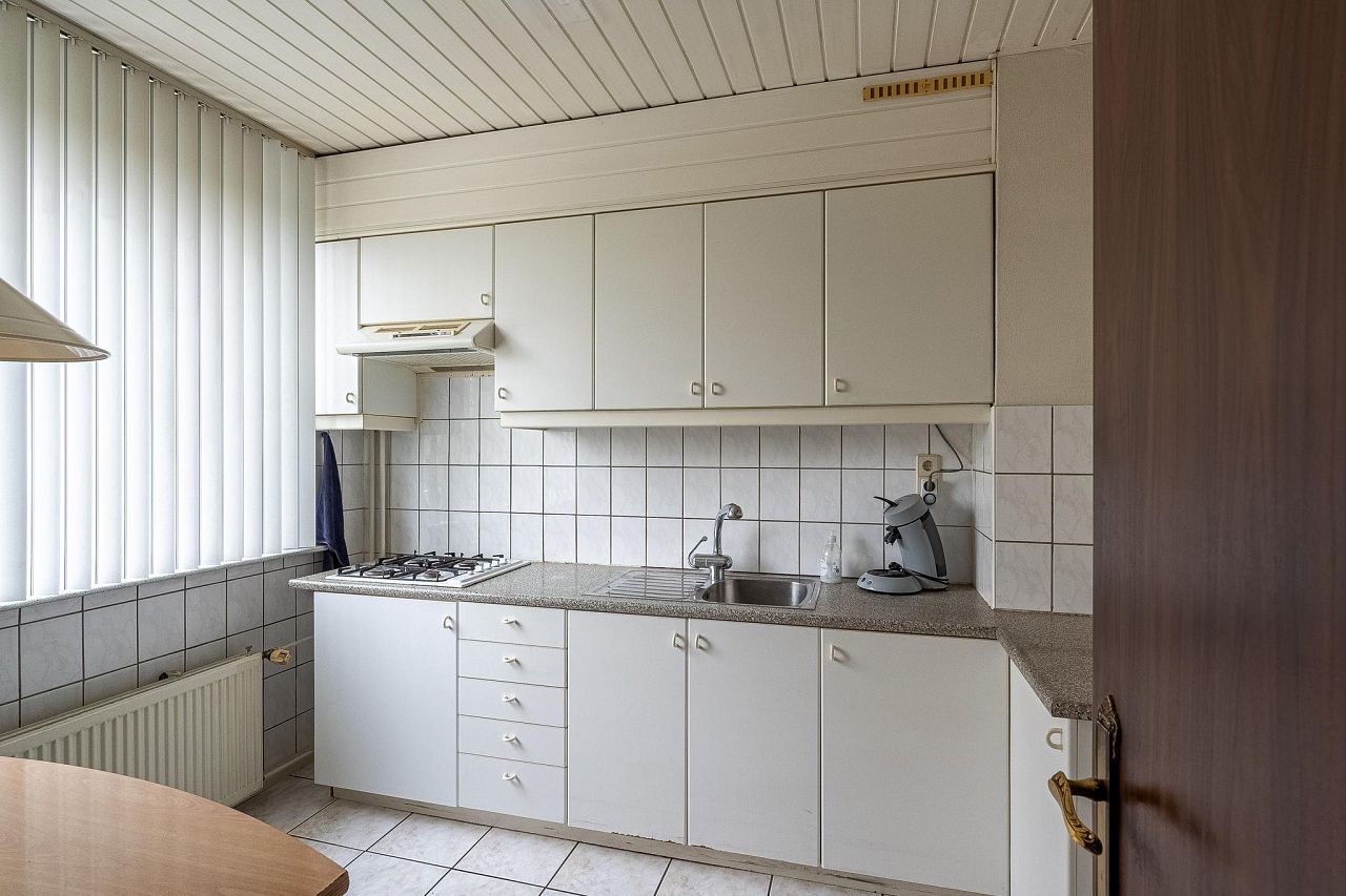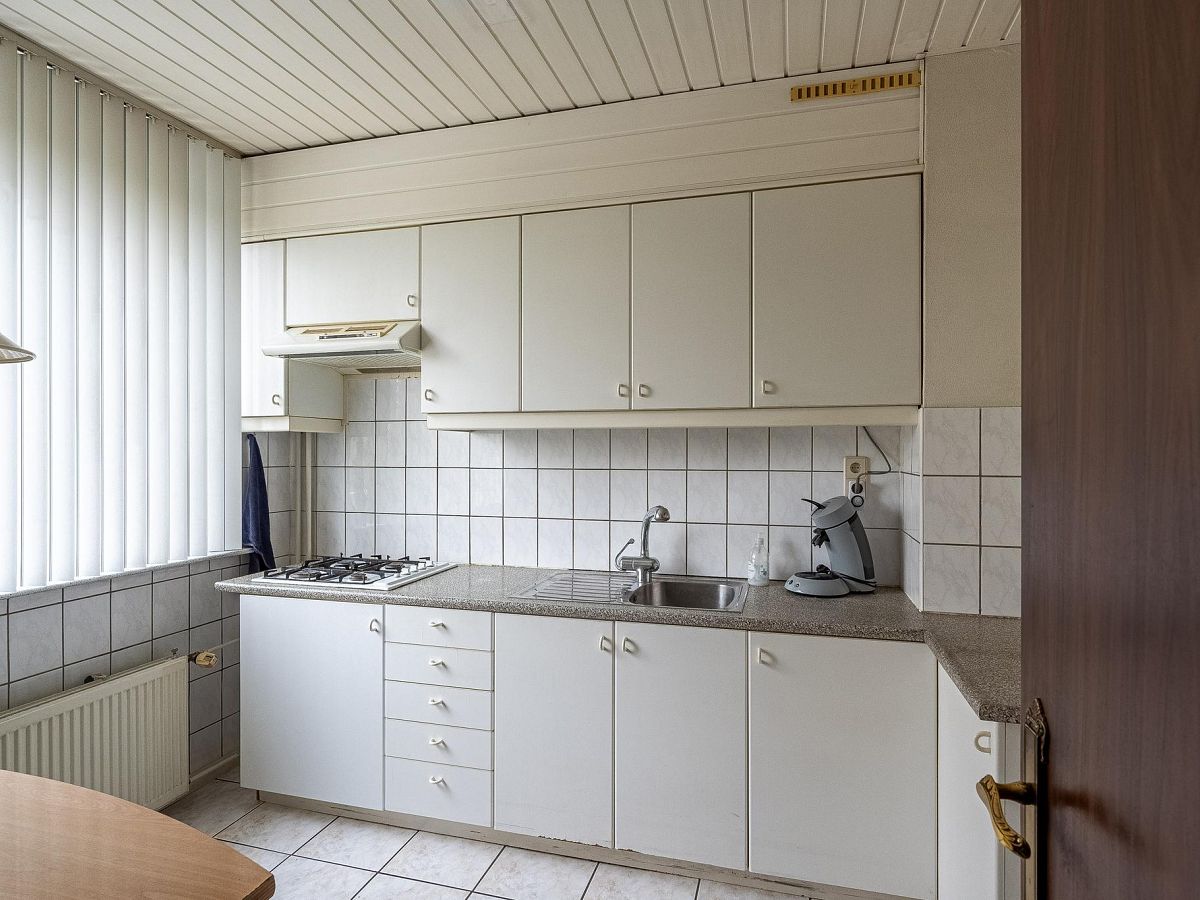 Dichte keuken met witte frontinrichting, gaskookplaat, close-in-boiler en afzuigkap. De keuken is voorzien van kunststof kozijnen en dubbel glas; meterkast omvat 4 groepen en aardlekschakelaar.