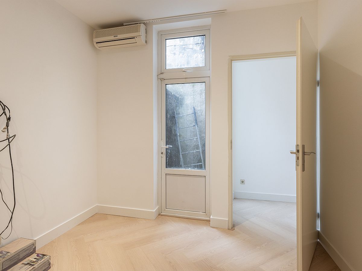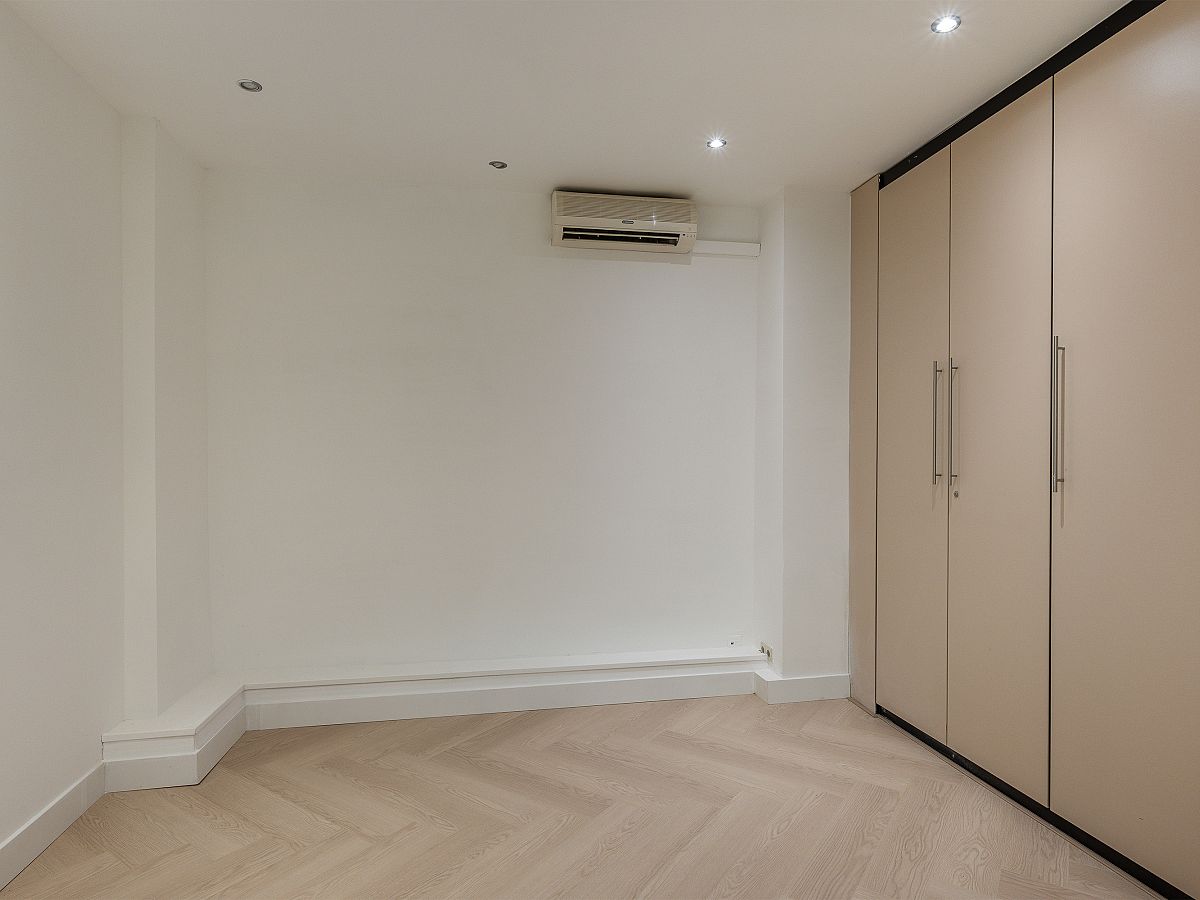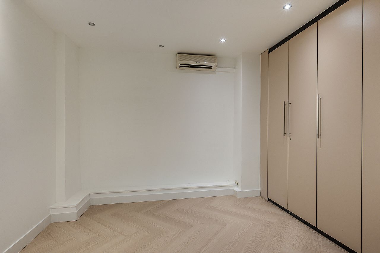 Via de gang achterin kom je bij een kamer met airco en vaste kastenwand.